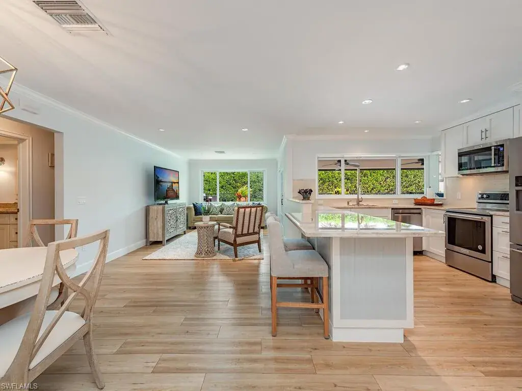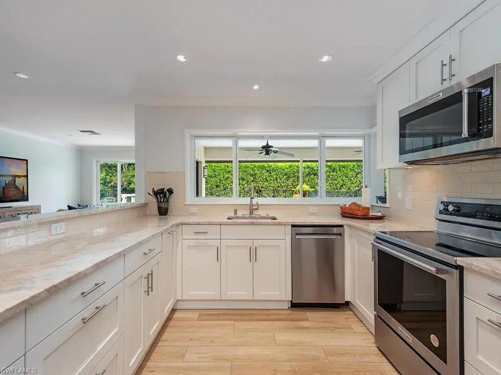 Discover the perfect blend of coastal charm and modern convenience in this beautifully updated residence. Thoughtfully designed with a breezy coastal aesthetic, the inviting living space offers a functional split floor plan, fresh interior and exterior paint, and is move-in-ready. The home features two spacious living areas, a formal dining space adjacent to the living room, and a casual dining area in the family room. The kitchen boasts expansive white quartzite countertops, attractive white cabinetry, stainless steel appliances, a pass-through to the lanai bar, and ample storage. Bedroom upgrades include new closet doors and closet systems. The bathrooms have been tastefully updated with new showers, raised granite countertops, modern fixtures, and cabinetry. Plantation shutters provide a stylish touch allowing natural light to flood in. Outdoor living is elevated with a heated saltwater pool and spa, large paver patio, outdoor kitchen, and generous side yard. Other upgrades including a new water heater, updated electrical panel, and impact windows and sliders add peace of mind. This exceptional home is ideally located just minutes from Park Shore’s private beach and Venetian Village.