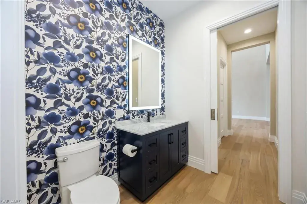 Brand-New Construction Lakefront Luxury in Parrott Cay at Naples Reserve: This stunning new-build on a premium corner lot offers panoramic lake views and exceptional craftsmanship throughout. From the moment you enter through custom double doors, you’re greeted by soaring ceilings, solid wood floors, and a dramatic glass-railed staircase. Every detail has been thoughtfully curated—from the fluted tile fireplace and LED-lit ceiling accents to the climate-controlled wine display and designer lighting.