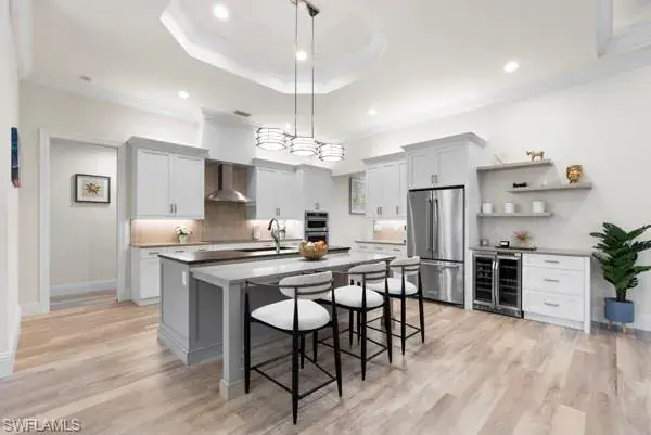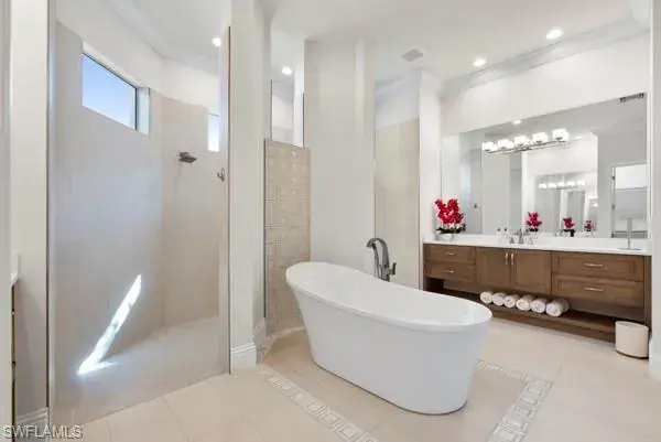 For limited time only SELLER is offering $10k towards BUYERS closing costs, as well as, complimentary FURNITURE AND DECORATIONS are being offered with a sale of the this exceptional, newly custom built in 2021 property, that is situated in a heart of South Naples Florida area. An exquisite and one of the kind luxurious home could be yours, as it is priced to sell quick! Beautiful open floor plan home invites you to experience 4 bedroom (one bedroom could be easily converted into the office / den), 3 full bathrooms and 1 half bath, heated swimming pool and jacuzzi, surrounded with lush landscaping. Screened in lanai area has a built out BBQ kitchen, with plenty of room to lounge around, relax, gather or entertain. 3 car garage give you plenty of space to park your cars as well as the golf cart, if need, or additional space could be utilize for storage. Endless custom options and upgrades throughout, interior and exterior of the property. It’s a must see home, you will fall in love with! Property is located in five start luxurious community surrounded by 22 lakes, miles of bike/walking trails and 1 mile rowing lane. Naples Reserve has a security guarded gate, The Island Club, The Outrigger for parties, fitness center, resort style pool with lap lanes, cafe, tiki bar, beach with volleyball, pickle-ball courts, tennis courts, bocce ball, two dog parks, playground for kids, basketball court.