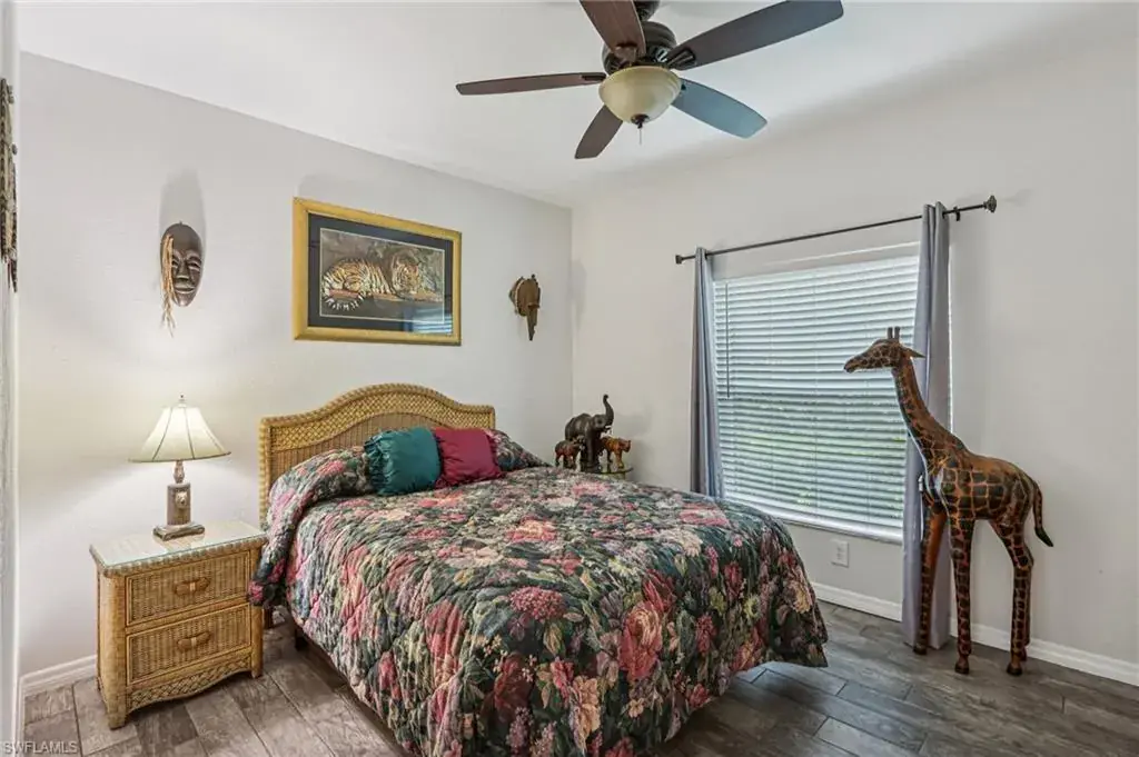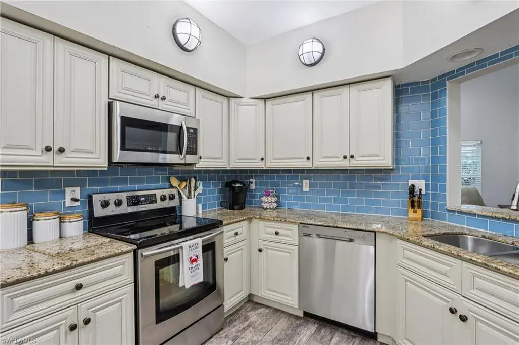 1115 Partridge Cir Unit 101 is a ground-floor, end-unit condominium in the Partridge Pointe section of the Berkshire Lakes community in Naples, Florida, built in 2000. The unit comprises approximately 1,191 square feet and features 2 bedrooms and 2 full bathrooms. Its interior has been substantially remodeled, with upgrades such as granite countertops, custom cabinetry, new fixtures, and wood-pattern tile flooring, and it is offered fully furnished. The property includes a one-car attached garage and a private lanai overlooking landscaped surroundings. Located within the Berkshire Lakes master-planned community, it offers access to amenities like walking trails, a community pool, and proximity to shopping, schools, and downtown Naples. NO animal statues convey with the sale.