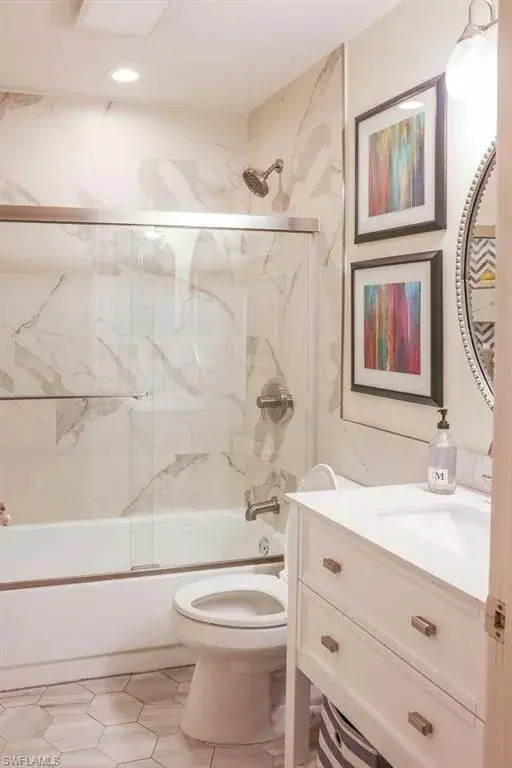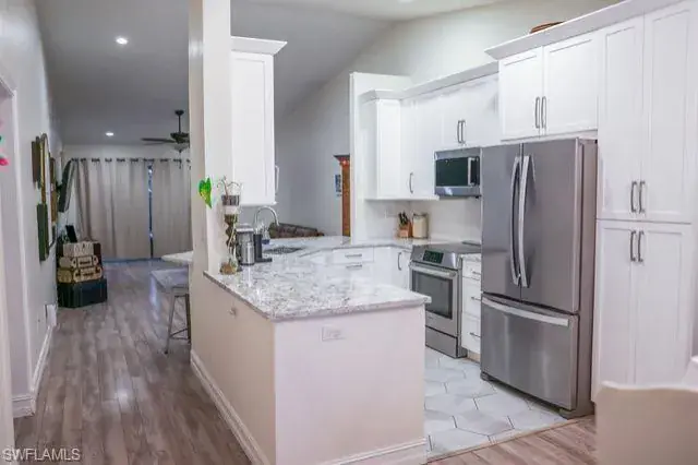 Located in one of the most desirable areas of North Naples, this beautifully updated two-bedroom condo is just one mile from Vanderbilt Beach and the Ritz-Carlton. A short five-minute walk brings you to Mercato, Pelican Bay Community Park, Paragon Movie Theater, LA Fitness, Whole Foods, Publix, and a wide selection of shops, restaurants, and amenities. The condo features a spacious master bedroom with an ensuite bathroom, while the remodeled guest bathroom adds modern elegance. The sleek, contemporary kitchen boasts white cabinetry, quartz countertops, newer stainless steel appliances, and a breakfast bar. With an open-concept layout, vaulted ceilings, and abundant natural light, the living space is both inviting and airy. Additional highlights include wood-look flooring throughout, all-new plumbing (completed in 2024), a brand-new A/C system, recessed LED lighting, built-in storage cabinets, in-unit laundry, and assigned covered parking. The Pavilion Club community has recently been refreshed with new paint, awnings, carports, a privacy perimeter wall, a secure front gate, community grills, and a newly paved parking lot with landscaped islands. With its prime location and excellent rental potential, this is a rare opportunity to own in North Naples. Your slice of paradise awaits!