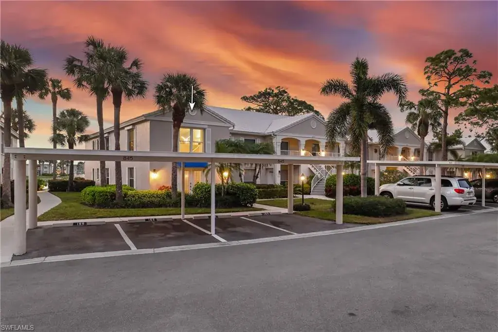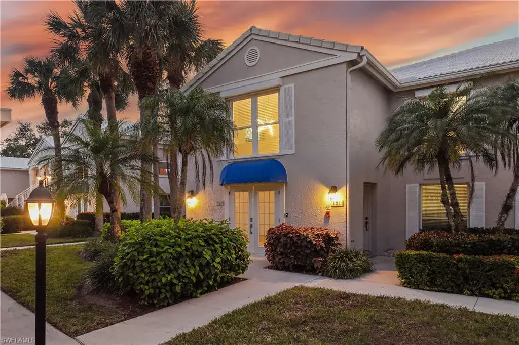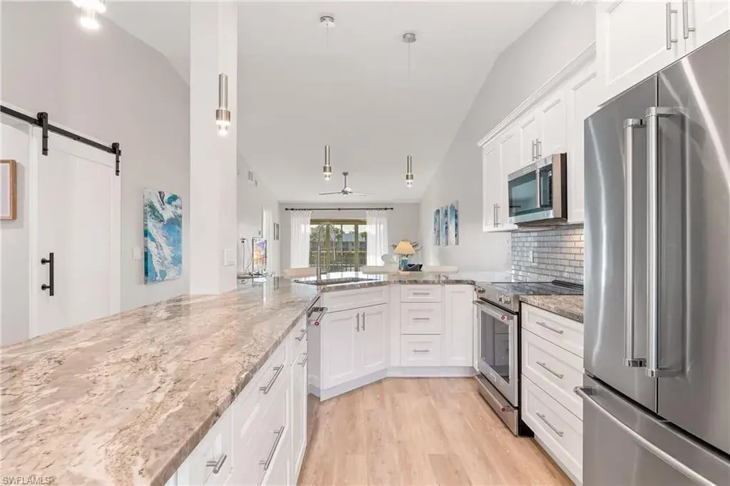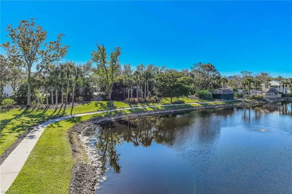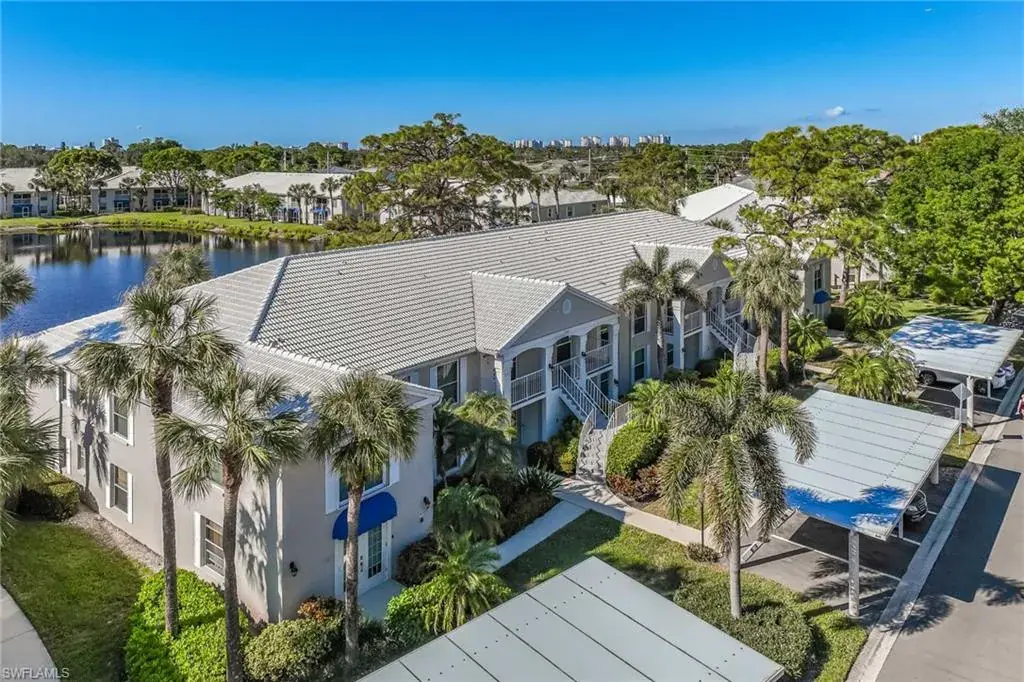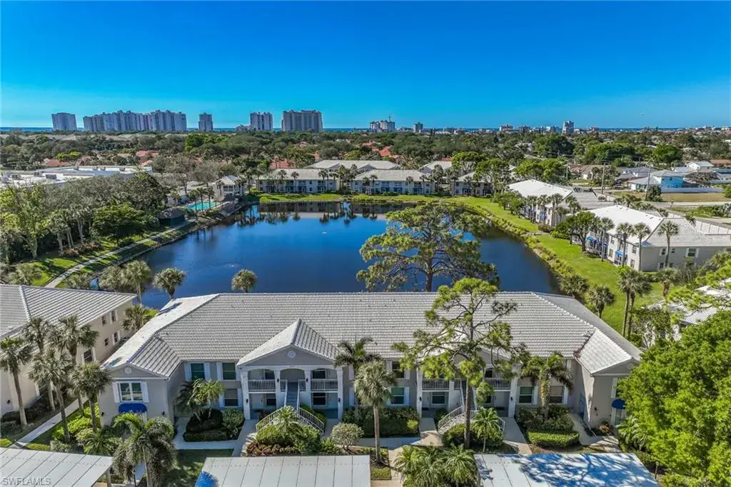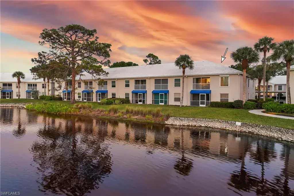 RECENT PRICE IMPROVEMENT!! CHECK OUT THIS AMAZING CONDO IN AN IDEAL LOCATION!! ONE MILE WALK OR BIKE TO THE BEACH!! Freshly remodeled, this waterfront property is perfect for your personal use or investment and seasonal rentals! Very popular and rarely available 2 bedroom plus den, second floor/end unit condo with spectacular sunset views from the west facing rear lanai. This property is located in one of the best locations in North Naples! Easy walk/bike to Vanderbilt Beach, Ritz-Carlton, Mercato, Pelican Bay Community Park, Paragon Movie Theater, LA Fitness, Whole Foods, Publix, and many other stores, restaurants, and amenities. This great condo features two bedrooms plus a den, two full baths, a recently updated eat-in kitchen, vaulted ceilings, and an open-concept living room area. The den area can be used as an office/den or potential 3rd bedroom/sleeping area. Features include new flooring throughout, a recent kitchen update with modern white cabinets/beautiful granite counters/stylish backsplash/stainless steel appliances, IMPACT RESISTANT DOORS AND WINDOWS THROUGHOUT, a fully enclosed lanai with exterior impact sliders for additional living space, in-unit laundry, and covered parking. The buildings and community at Pavilion Club have recently been updated with newer paint, awnings, carports, a new perimeter privacy wall, a new front security gate, community grills, and a freshly paved parking lot and streets with updated landscaped islands. This location also offers excellent rental potential. Come and relax by the community lakeside pool and tiki hut while knowing that the charms of Naples and all it has to offer are just outside your front door!
