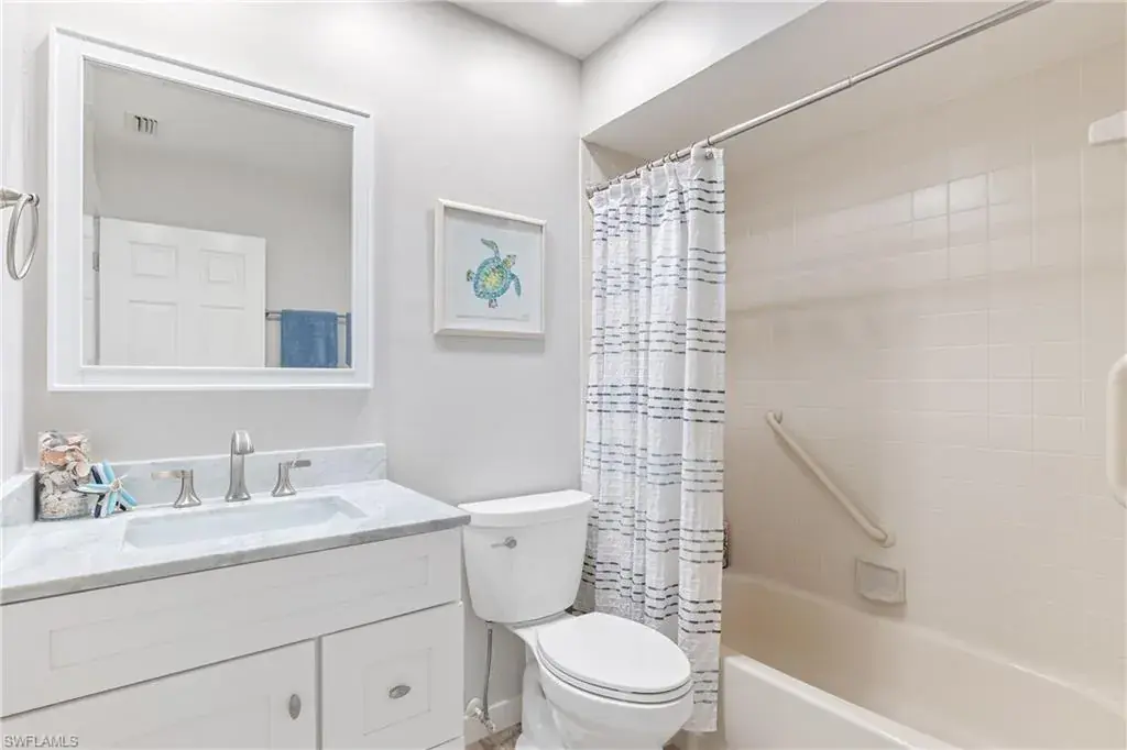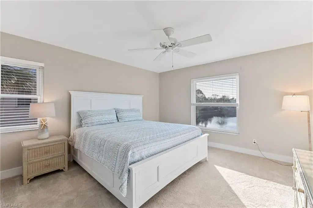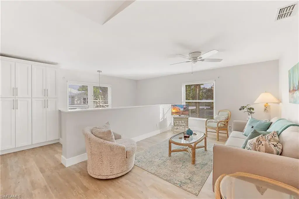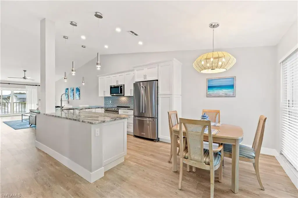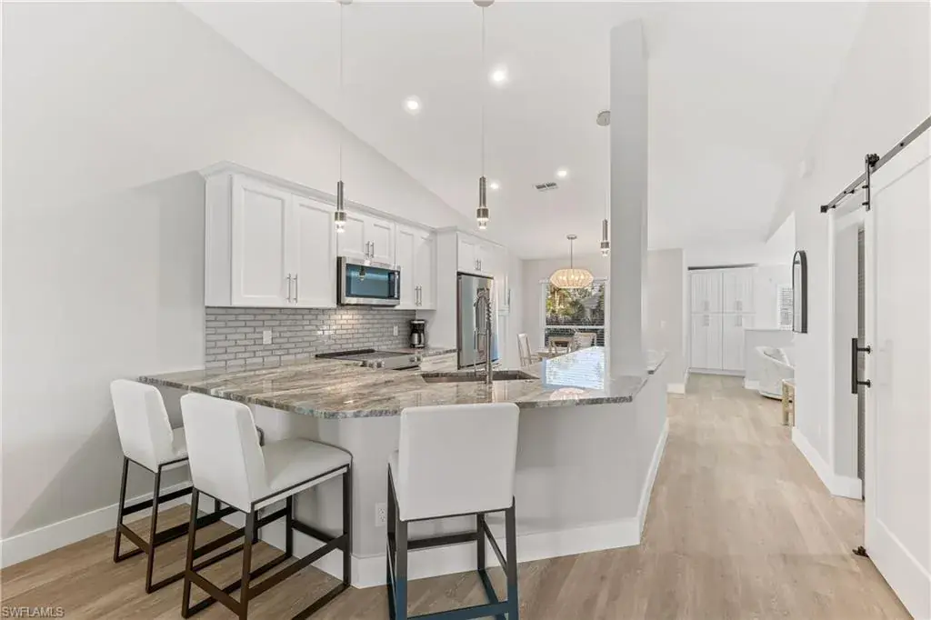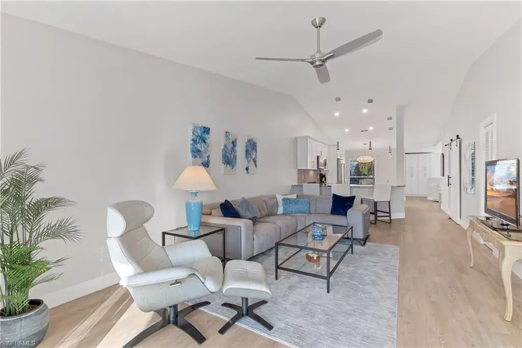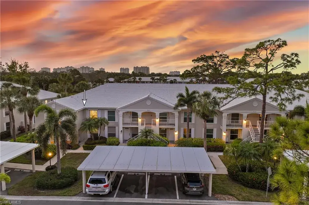 RECENT PRICE IMPROVEMENT!! CHECK OUT THIS AMAZING CONDO IN AN IDEAL LOCATION!! ONE MILE WALK OR BIKE TO THE BEACH!! Freshly remodeled, this waterfront property is perfect for your personal use or investment and seasonal rentals! Very popular and rarely available 2 bedroom plus den, second floor/end unit condo with spectacular sunset views from the west facing rear lanai. This property is located in one of the best locations in North Naples! Easy walk/bike to Vanderbilt Beach, Ritz-Carlton, Mercato, Pelican Bay Community Park, Paragon Movie Theater, LA Fitness, Whole Foods, Publix, and many other stores, restaurants, and amenities. This great condo features two bedrooms plus a den, two full baths, a recently updated eat-in kitchen, vaulted ceilings, and an open-concept living room area. The den area can be used as an office/den or potential 3rd bedroom/sleeping area. Features include new flooring throughout, a recent kitchen update with modern white cabinets/beautiful granite counters/stylish backsplash/stainless steel appliances, IMPACT RESISTANT DOORS AND WINDOWS THROUGHOUT, a fully enclosed lanai with exterior impact sliders for additional living space, in-unit laundry, and covered parking. The buildings and community at Pavilion Club have recently been updated with newer paint, awnings, carports, a new perimeter privacy wall, a new front security gate, community grills, and a freshly paved parking lot and streets with updated landscaped islands. This location also offers excellent rental potential. Come and relax by the community lakeside pool and tiki hut while knowing that the charms of Naples and all it has to offer are just outside your front door!