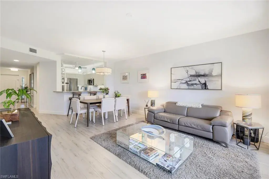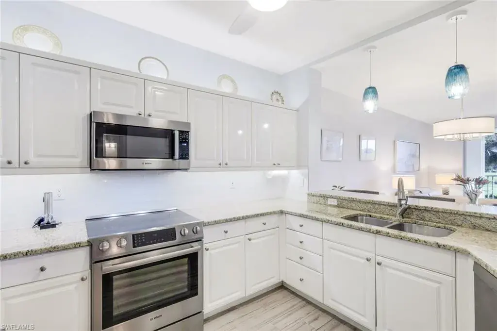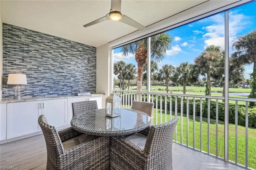 C12664 Just in time for season! This unit encompasses over 1,500 sq ft of living space which includes 3 bedrooms, 2 baths, and a screen enclosed lanai. This unit overlooks the pristinely manicured grounds of the renowned Club Pelican Bay golf course and proudly showcases the best views that Pebble Creek has to offer! Move-in ready with wood look tile, granite counter tops, Bosch appliances, custom built-in closets, plantation shutters, and a built in electric grill on the lanai! Additional features include an open floor plan, 9 ft ceilings, detached garage, tiled feature wall on the lanai, updated lighting package, and an electric roll down screen on the lanai. Known for its miles of immaculate beach, coastal mangrove forests and breathtaking nature paths, Pelican Bay is Naples premier beachfront community, offering its members a preeminent lifestyle that cannot be found elsewhere Florida. Pelican Bay sets the bar when it comes to its luxury living with exclusive amenities including private beachfront restaurants, beach attendants, tennis courts and pro shops, full service fitness center, community center, canoes and kayaks, sailing, wellness studio and nutrition and health services!