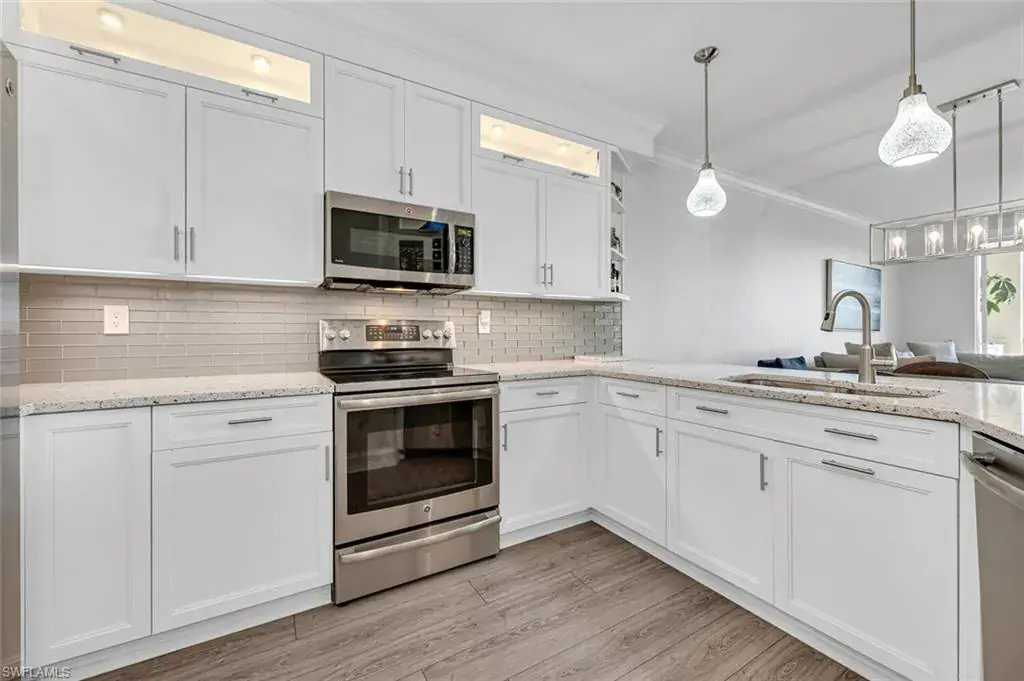 Welcome to Pebble Creek at Pelican Bay, where coastal elegance meets resort-style living. This light, bright, completely renovated 3-bedroom, 2-bathroom residence offers a sophisticated blend of modern design and breathtaking lake and golf course views. Thoughtfully reimagined, this home features an open-concept floor plan, allowing natural light to flood the living spaces, highlighting designer finishes, sleek flooring, and high-end fixtures. The gourmet kitchen is a chef’s dream, with premium stainless steel appliances, custom cabinetry, and quartz countertops. The spacious primary suite offers a spa-like retreat with a luxurious en-suite bath and a private balcony overlooking serene water and lush greens. The additional guest rooms provide ample space for family and visitors. Pelican Bay is more than a community—it’s a lifestyle. As a resident, you’ll enjoy exclusive beach club access with beachfront dining, private Gulf-front pavilions, and beach concierge services. Take advantage of the world-class fitness center, miles of scenic nature trails, top-tier tennis facilities, and access to kayaking through the protected mangroves. Plus, you’re just moments from Waterside Shops, Artis—Naples, and the finest dining and entertainment Naples offers. Whether you are seeking a full-time residence or a seasonal retreat, this Pebble Creek condo offers the best luxury, convenience, and unparalleled Pelican Bay experience.