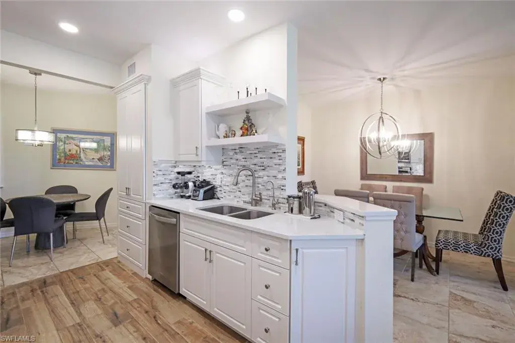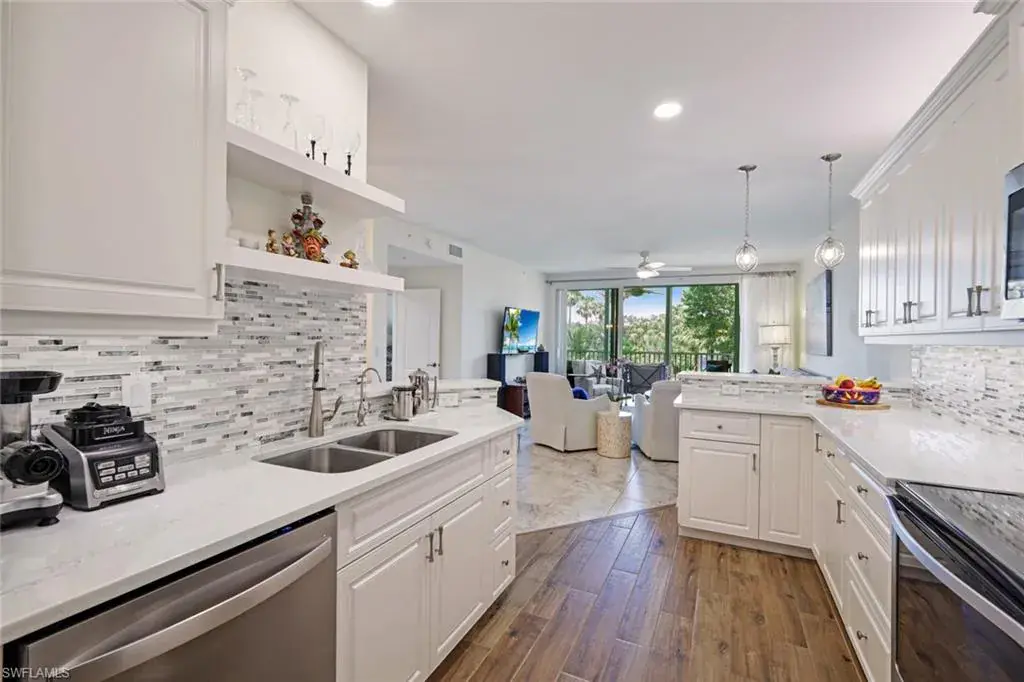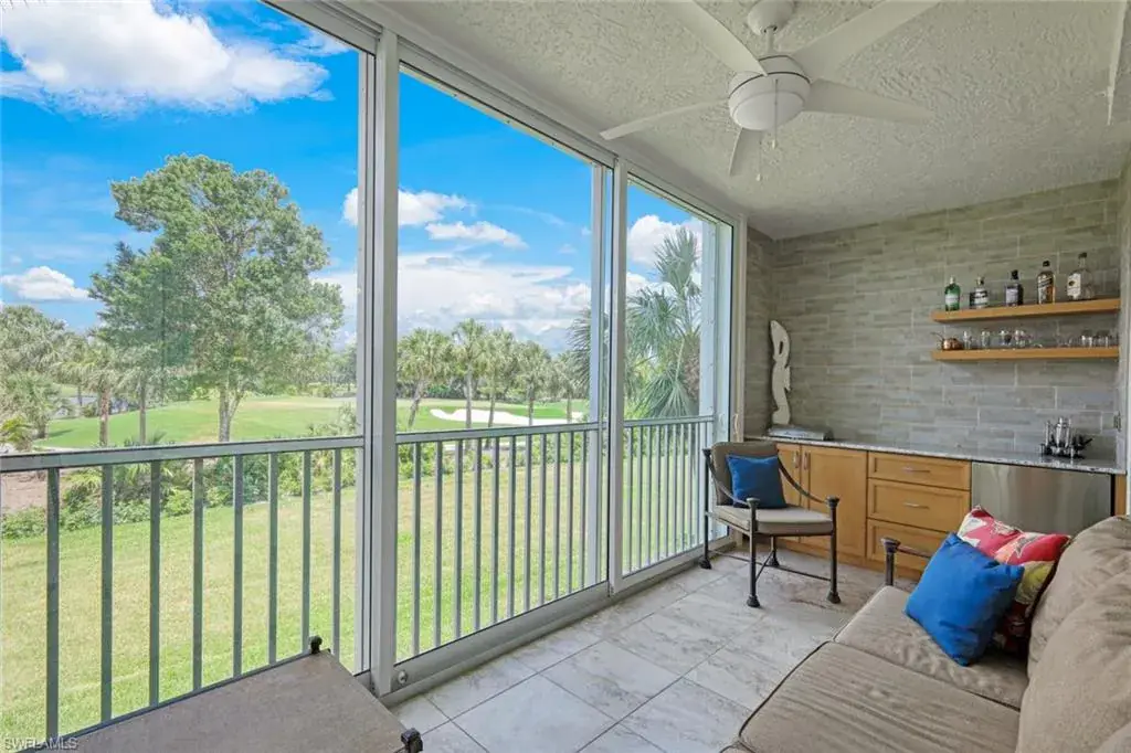 C10357 – Gulf and Golf meet to offer a warm home. Thoughtfully planned designs and coastal soft contemporary renovations make this home easy to entertain in, beautiful to look at and comfortable to live in. Hurricane protected lanai that can be enjoyed year round offers not only really pretty golf course views, but total privacy, quiet nature, peace, serenity, and welcoming morning sun. Outdoor kitchen makes it even more fun with bar, grill, and food & beverage cooler. Owner’s suite has French doors that open to the lanai to welcome in the morning sunlight. Perfectly situated across from Pelican Bays North tram this community has everything needed for easy beach access, fitness, socially active pool & spa amenity center, shopping & dining. Gated, pet friendly and very well maintained neighborhood with on site manager and maintenance. First floor residences in Pebble Creek are elevated above ground. Private under the building 1 car garage a plus for security and easy elevator access.
