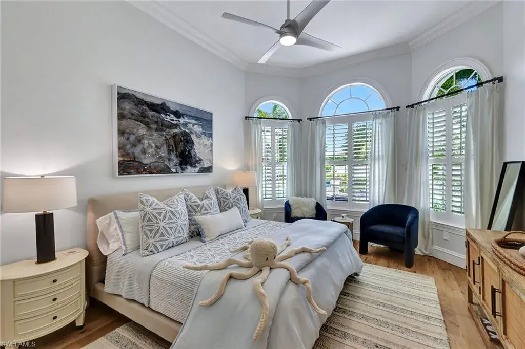Every exquisite detail of this Pelican Bay Woods residence showcases refined craftsmanship and modern luxury. Ideally on a spacious corner lot, offering a secluded oasis featuring an inground heated pool and spa, expansive fenced yard and lush landscaping. A new roof and main house HVAC system, both installed in 2025, provide peace of mind and enhanced energy efficiency. The thoughtfully reimagined interior boasts a chef’s kitchen equipped with a large center island with quartz countertops, professional-grade appliances including a 48-inch gas cooktop, a coffee bar and bespoke cabinetry. The primary suite is a sanctuary, featuring two generous walk-in closets with built-in cabinetry, a custom shiplap feature wall, designer bedside lighting and a spa-inspired en-suite bath with a walk-in shower, multiple shower heads, an oversized soaking tub and dual vanities. Top-of-the-line Legno Bastone European oak flooring throughout. Additional highlights include a private-entry casita for guests, impact-resistant windows and doors, an electric fireplace in the living room, soaring 14-foot ceilings and a spacious three-car garage. You’re a short distance or bike ride to Artis-Naples, Baker Museum and Waterside Shops. Pelican Bay offers an unparalleled lifestyle with three miles of pristine private beach access, two beachfront restaurants, a community center featuring a fitness center, spa, two tennis facilities, kayaking and sailing opportunities. Embrace the opulent lifestyle Pelican Bay offers. Club Pelican Bay offers 27 holes of golf and separate membership is required.
