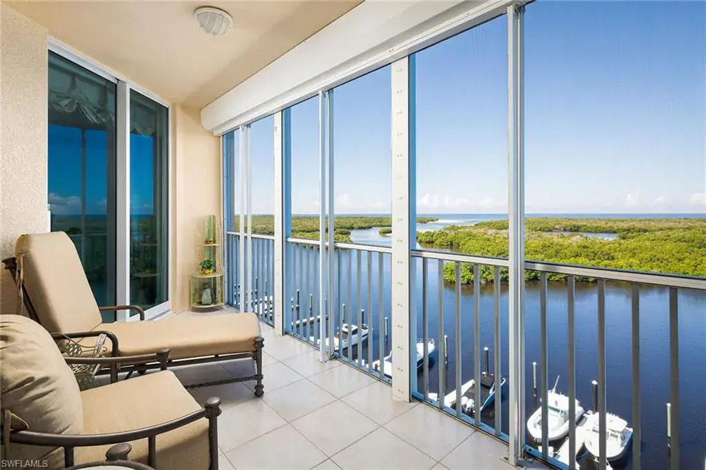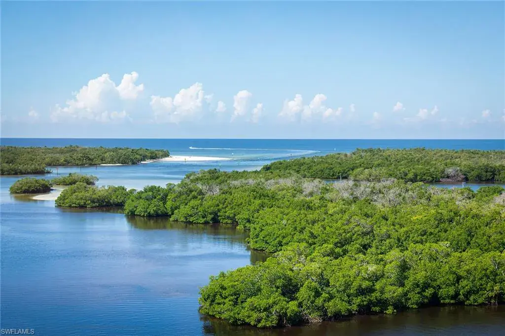 A luxury corner waterfront home providing amazing forever western vistas. Not only do you see views of the Gulf of Mexico, but you can also see to Sanibel on a clear day. At night the lights of Aqua and Kalea Bay to the southeast provide a beautiful nightscape. This is waterfront living where you can touch and feel the water. The large lanai off the great room is ideal for entertaining and watching sunsets and wildlife surrounding the Island. Just nearby is the private, award-winning Pelican Isle Yacht Club offering a variety of social events, beach shuttle, kayaks and canoes, fitness center, tennis, pickleball, fine dining, a modern state-of-the-art marina and more.