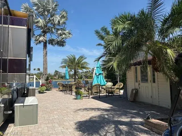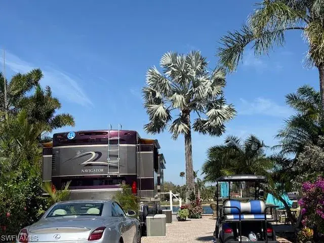 Pull-in, north facing lake front Class A motorcoach site ideally positioned within the community of Pelican Lake Motorcoach Resort, offering privacy, lush landscaping, and the potential to add a larger custom coachhouse or screenroom. The property is nicely finished with a neutral color paver block pad, extended patio, and raised wall edge.