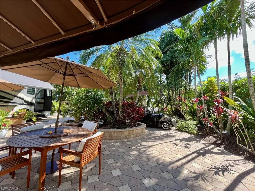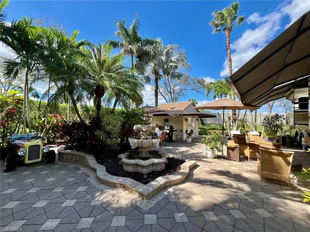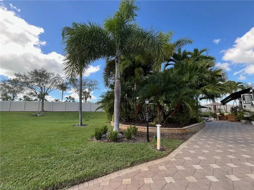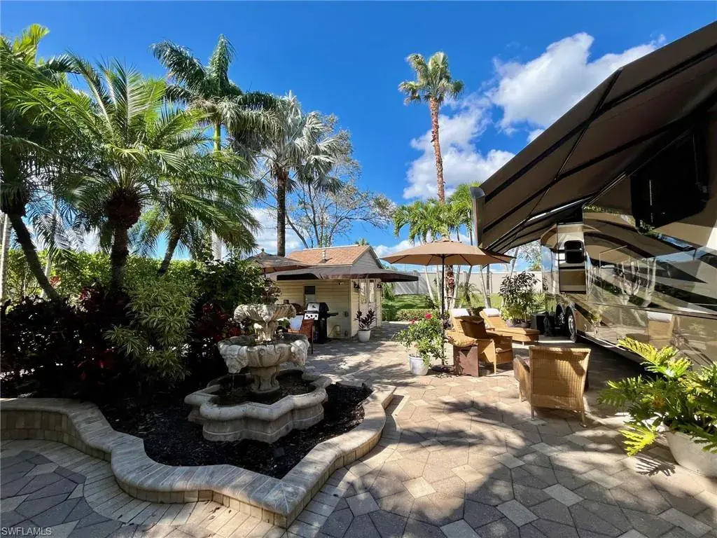 This expansive Class A motorcoach site in the Pelican Lake Motorcoach Resort, located off-lake. The property boasts top-tier upgrades, including an extended decorative paver pad and patio, a water fountain feature, and tropical landscaping with raised paver edges. There are multiple areas for private relaxation or entertaining, and a large open green space to the rear and west. Unique in its layout, this site has only one neighboring property, creating a spacious and open ambiance. When backing in, you’ll enjoy a Southeast exposure. The 100-square-foot coachhouse on this property is well-appointed with a washer and dryer, dishwasher, sink, cabinetry, shower, toilet, laminate flooring, overhead storage, and a futon.