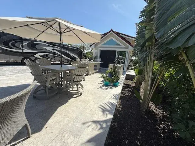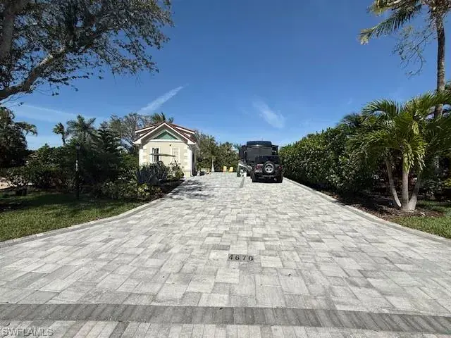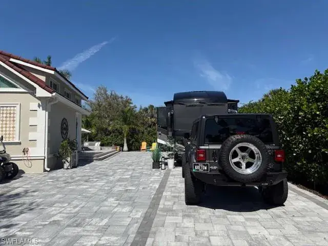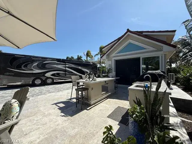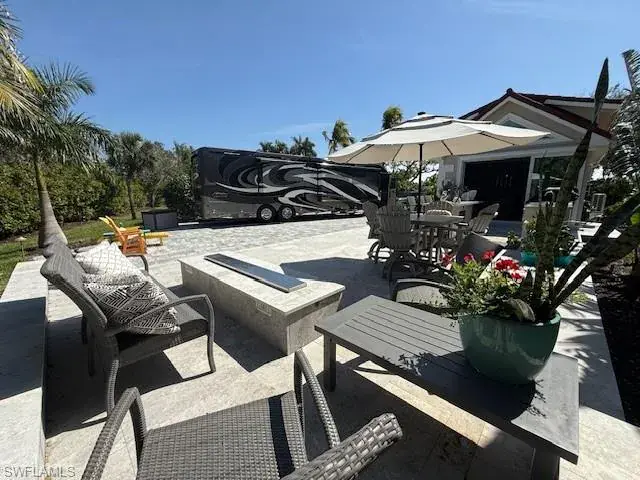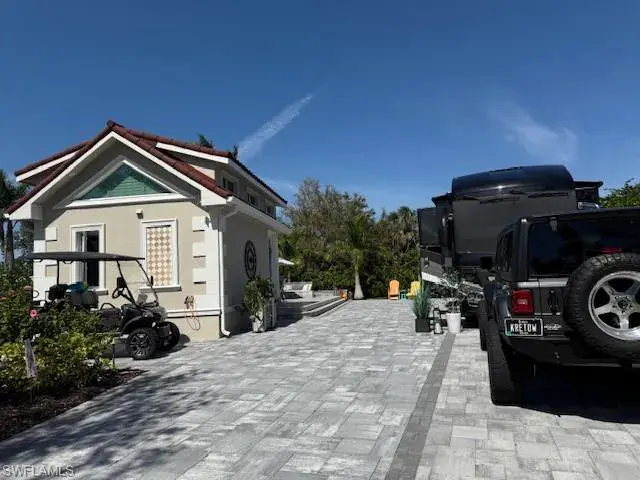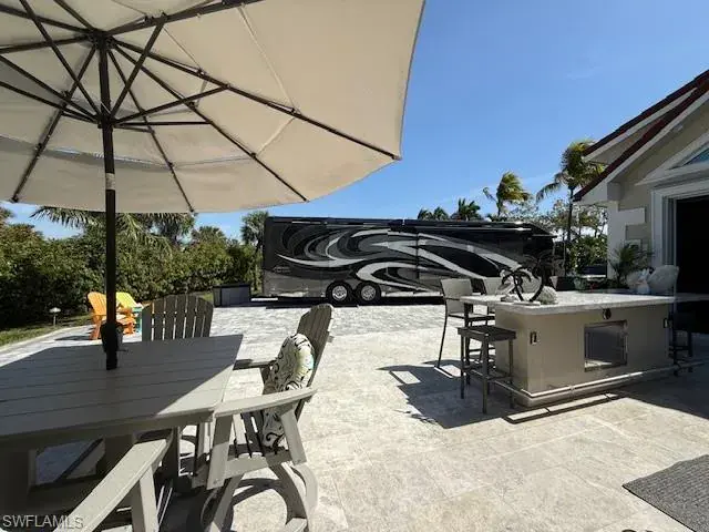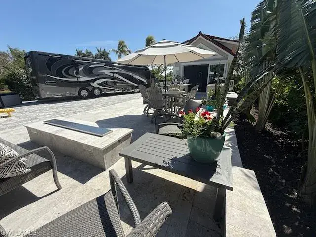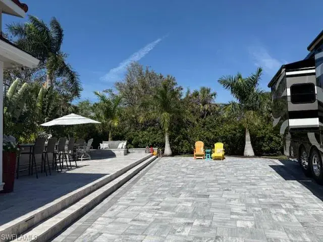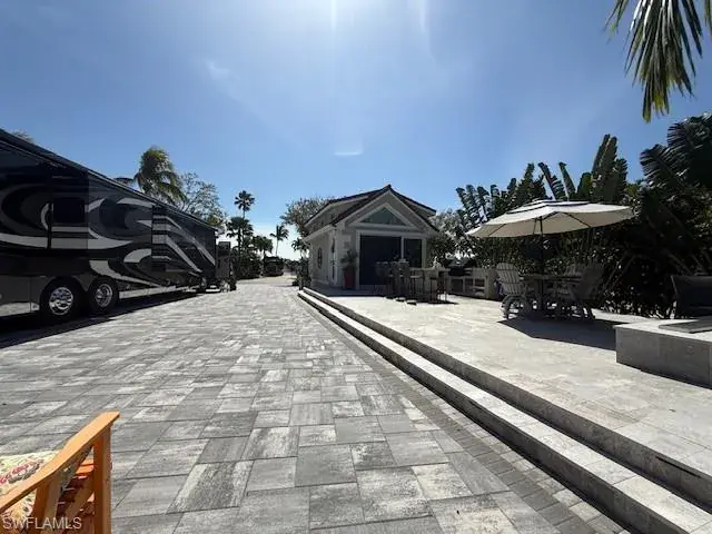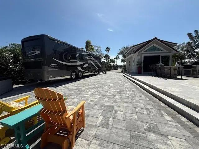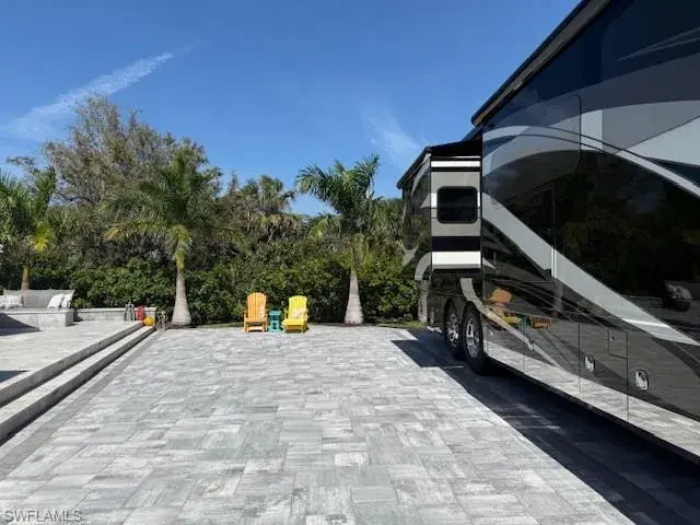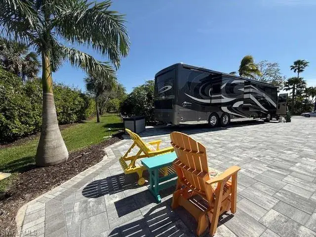 Like new upgraded Class A Motorcoach site in Pelican Lake Motorcoach Resort. This property is oversized and spans across 6534 square feet that is completely finished with neurtral pavers and a darker border. The site has a very clean and modern feel with the newly constructed coachhouse towards the front of the property opening up to the raised patio to the rear. Very large outdoor space with plenty of room to enjoy the privacy created by the lush tropical landscaping or to entertain around the built in fire feature. The front of the coach and site face south.