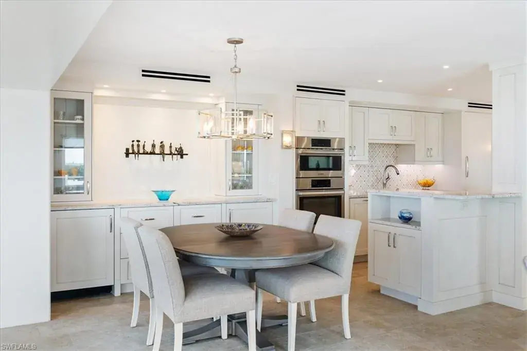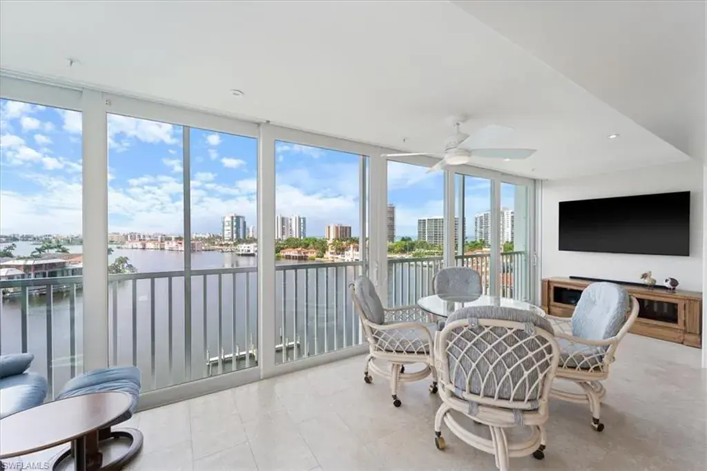 Sparkling wide water views of Venetian Bay, Park Shore Skyline and the Gulf of Mexico capture you from the moment you set foot in this beautiful, fully updated home. Perfectly located next door to the delightful waterside restaurants & boutiques of The Village Shops on Venetian Bay. Mere steps away are the sugar white sands of Park Shore Beach with eligible membership access to a private 3-acre beachfront park. Pelican Point West is an intimate, stylishly updated community with 24 homes, only three residences per floor which are efficiently serviced with 2 new elevators. Unit 701 is the ideal height to capture mesmerizing Gulf sunsets & dolphins playing in the Bay just below, and the nighttime views of the Park Shore skyline are dazzling. Thoughtfully updated included opening the floor plan to make entertaining a pleasure. The serene palate of the lovely interiors are elegant yet comfortable. Home chefs will appreciate the fully renovated kitchen with a large island, abundant storage, beautiful countertops and backsplash, and stainless appliances. The primary bedroom has a private balcony with lovely Park Shore views. The flexible 3rd bedroom is currently being used as a spacious den and home office. Practical & welcomed features include an in-unit laundry room with abundant storage & sink; brand new air conditioning; impact resistant doors and windows. Pelican Point West’s public spaces have just been beautifully renovated — and not to be overlooked, a valuable and coveted deeded boat dock (the premier, outside, easy access slip) is included with the purchase of this truly extraordinary home.