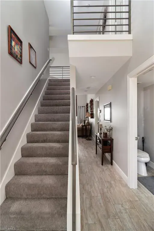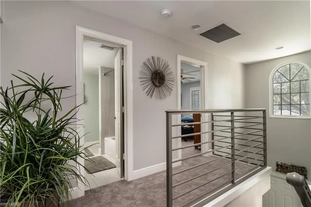 The “gladdening” kitchen was redesigned and boasts upgraded cabinets with soft close drawers pullouts appliances and quartz counter tops, double convection oven with induction cook-top. Also, hurricane impact windows, sliders & garage door, custom metal stair railing, plantation shutters. All the baseboards, doors and hardware have been replaced. A large one-car attached garage, plus, separate on-site guest parking space.