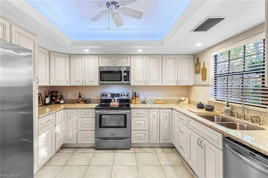 Rarely available first-floor villa in Pelican Ridge! This two-bedroom, two-bathroom home is ideally located just 50 steps from the heated community pool. Enjoy a screened rear patio perfect for relaxing or entertaining and a front entry patio with pergola offering additional outdoor living space. The home also features tile flooring throughout, remodeled bathrooms & kitchen, stainless steel kitchen appliances, 2022 roof, 2025 AC, and 2024 tankless water heater, plus an attached oversized single-car garage. Just over 1 mile to Vanderbilt Beach and less than a mile to Publix, Mercato, Paragon Theaters, Whole Foods, Seasons 52, J. Alexander’s, Alamo Drafthouse, Tacos & Tequila and more!