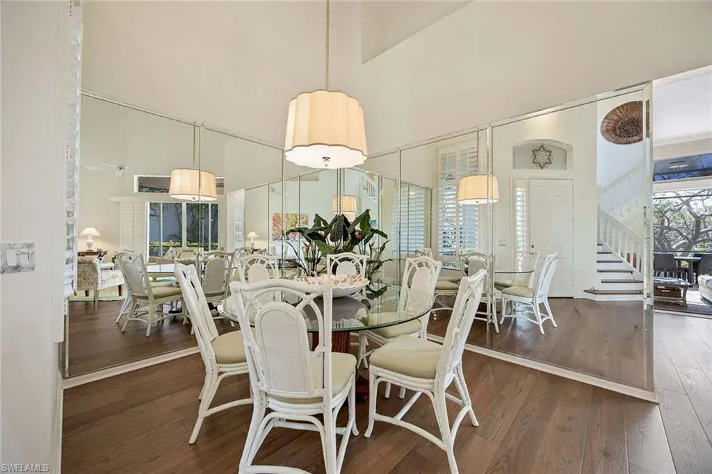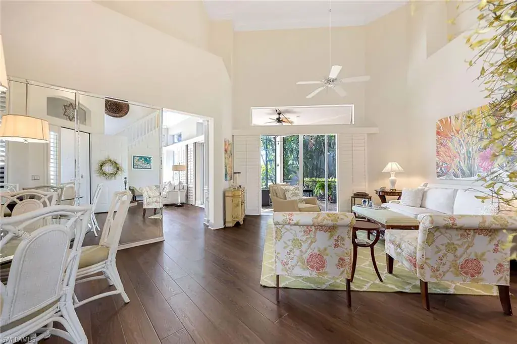 Great location in Fiddler’s Creek, this charming single-family home in Pepper Tree is minutes from the main entrance as well as the world-class club, spa and fitness center. Ideally with a stunning lake view, this exceptional two-story home includes four bedrooms, three baths and the warm feeling that embraces the essence of South Florida living. The expansive combination living and dining area is roomy and open, drawing you into the open vaulted ceilings and the additional Jack and Jill guest bedrooms of the second floor. A spacious family room and an open kitchen create a bright environment that rivals only the sun-drenched patio of the back lanai. Two-story high ceilings with crown moldings enhance this newly painted, delightful home. The recently remodeled kitchen and lighting throughout are also special features. The extra-large outdoor space is fully screened with room for a full-sized pool and spa. The fourth bedroom, on the main level with a full bath, can efficiently serve as an office or den. Across the hall, the primary bedroom suite opens to the rear lanai and includes two walk-in closets. The master bath with dual sink, separate shower, and garden bath is roomy and bright. Stunning new wood flooring adds to the home’s comfortable and sophisticated feel. Additional features of this exceptional home include a remodeled laundry room, central vacuum system and a 10-year transferable warranty for the air conditioner. The refinished garage floor, overhead enclosed cabinetry, extra-wide driveway and plantation shutter window treatments show attention to detail. Fiddler’s Creek is an amenity-rich country club environment with a full-service spa, fitness and wellness center with pickleball, bocce ball, tennis and more. A full-time recreation director and two exceptional restaurants complete the picture of luxurious living, close to everything South Florida has to offer.