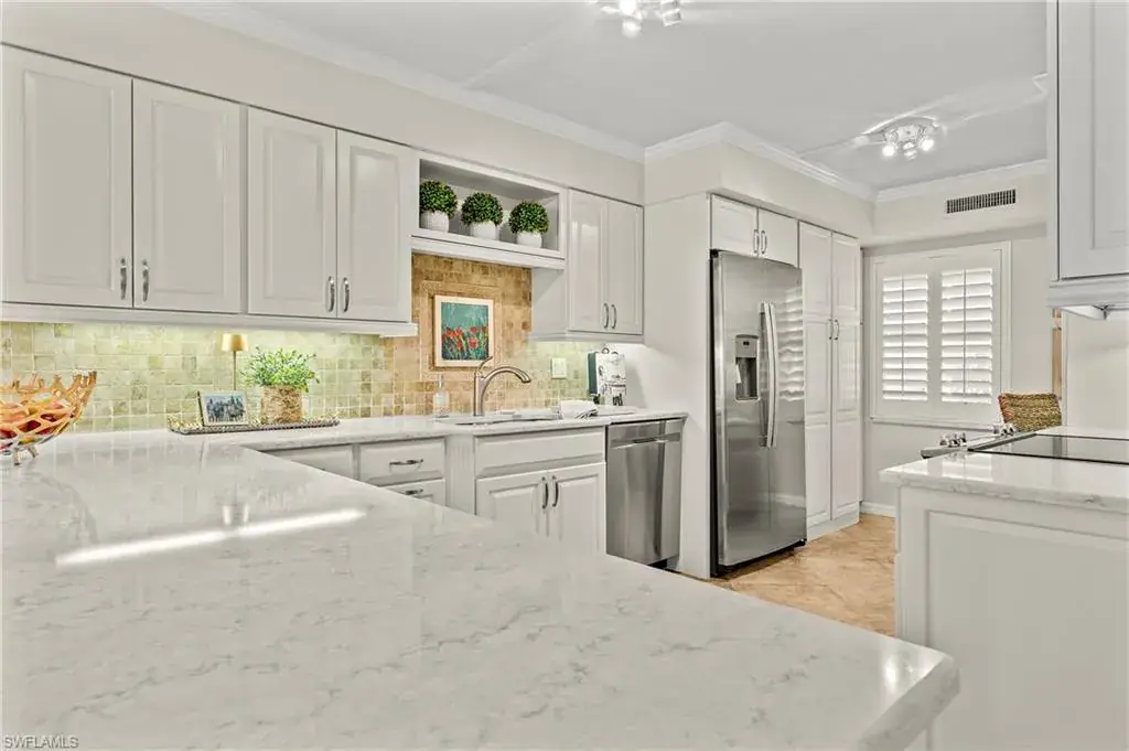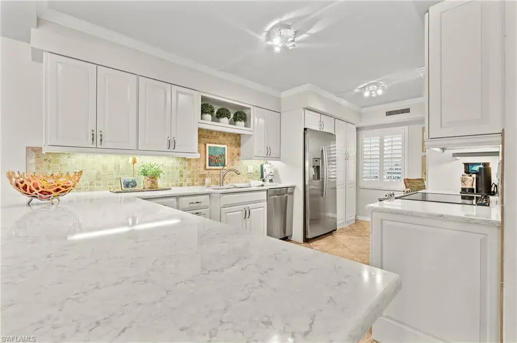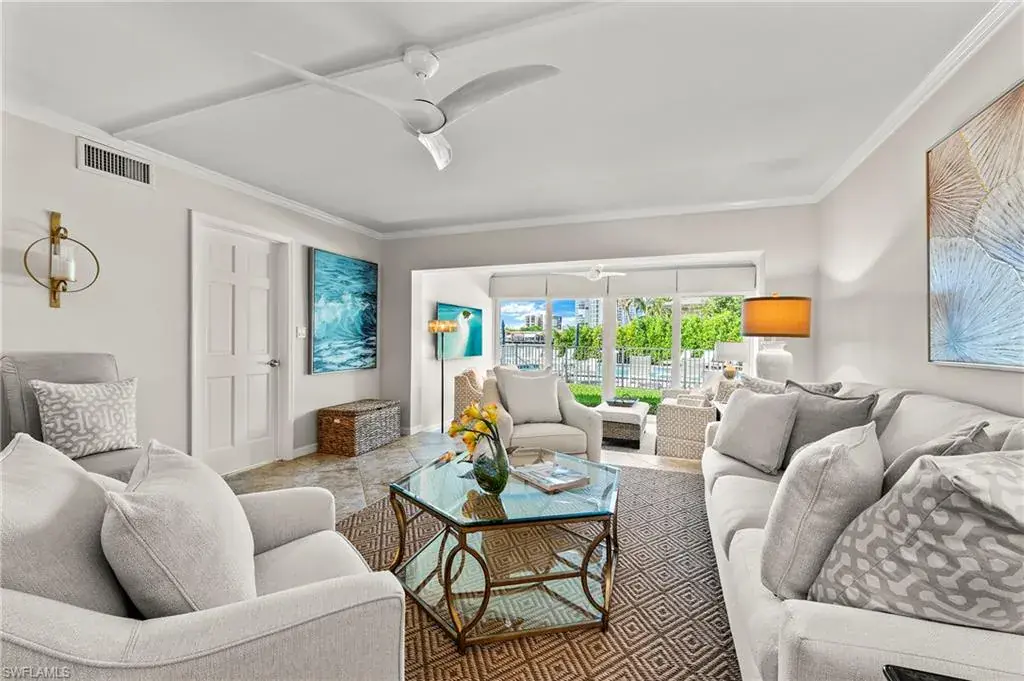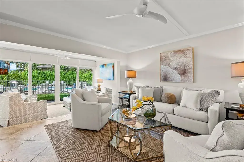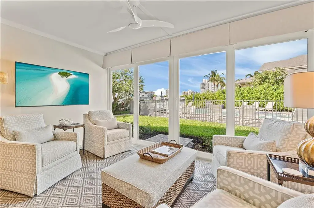 Significant Price Drop On the Bay. Move in Ready for season. Totally redone. Furnished. Lowest priced 3 bedroom, 3 Bath, on the Bay in Park Shore. Sit at the pool and watch the sunsets over Venetian Village, in the heart of Park Shore. This is the best priced 3 Bedroom, 3 Bath condo in Park Shore that is on the Bay. This bright, end unit has been totally renovated and is move-in ready with recent appliances, HVAC, impact windows and sliders with plantation shutters. It can be bought with the almost new furniture. The condo is located where you can walk out to the community pool and grassy area. Only 19 condos in this friendly community. Walk to Venetian Village and the private 1.3-mile Park Shore beach. Renovated Guest suite available for overflow. Piedmont Club properties do not come up for sale often.