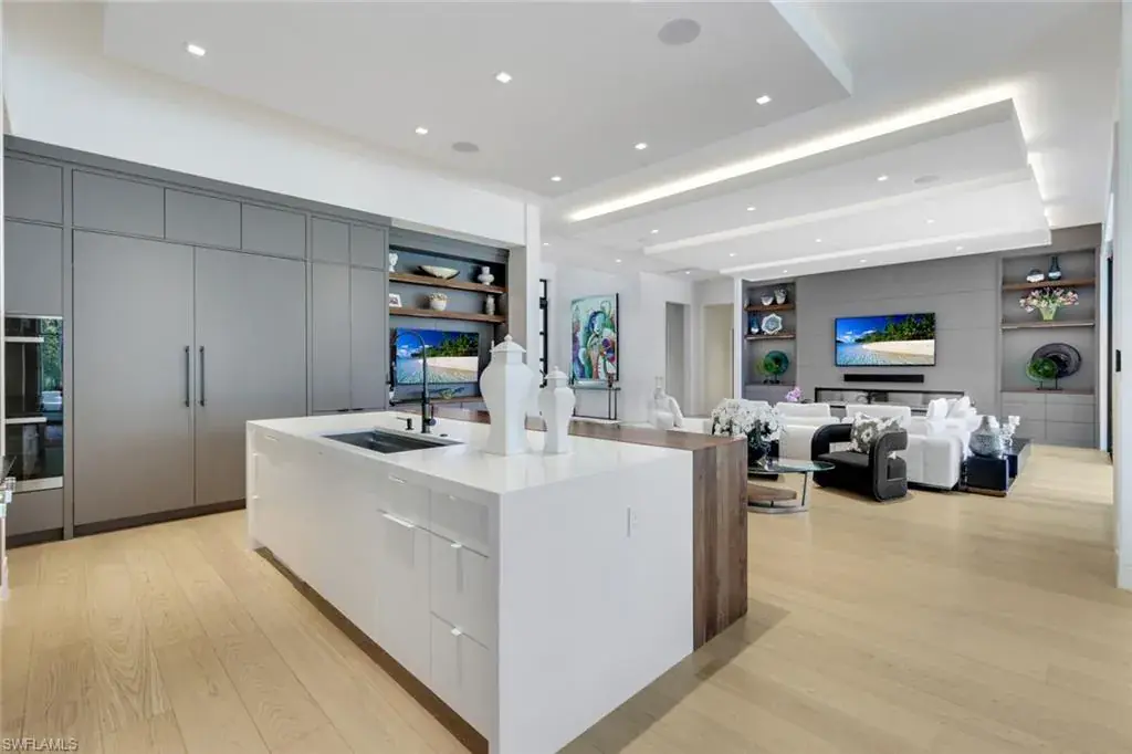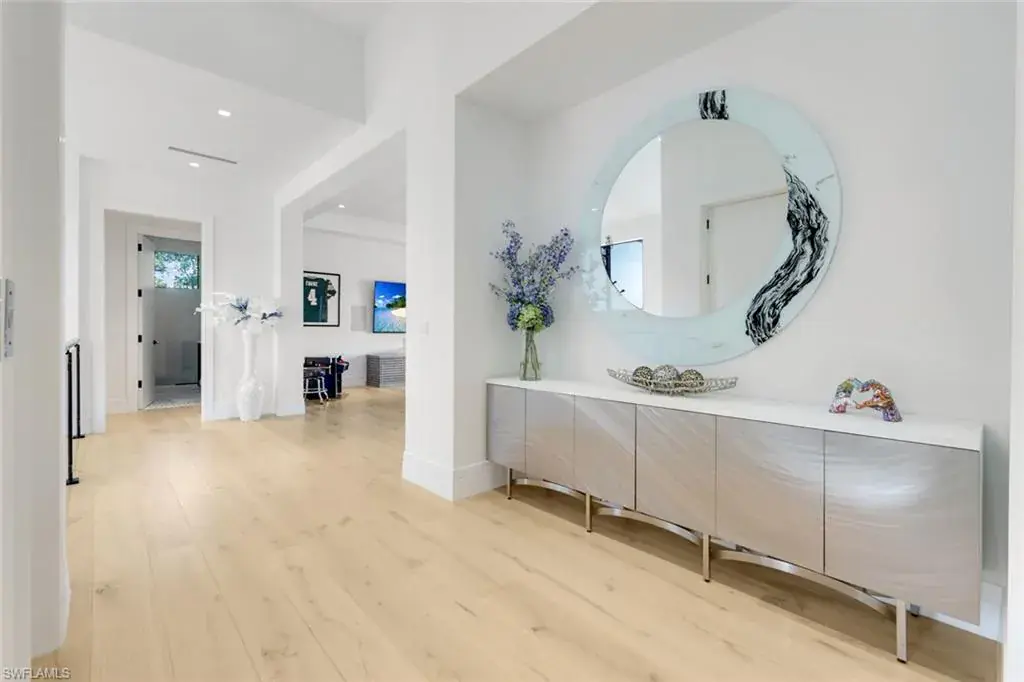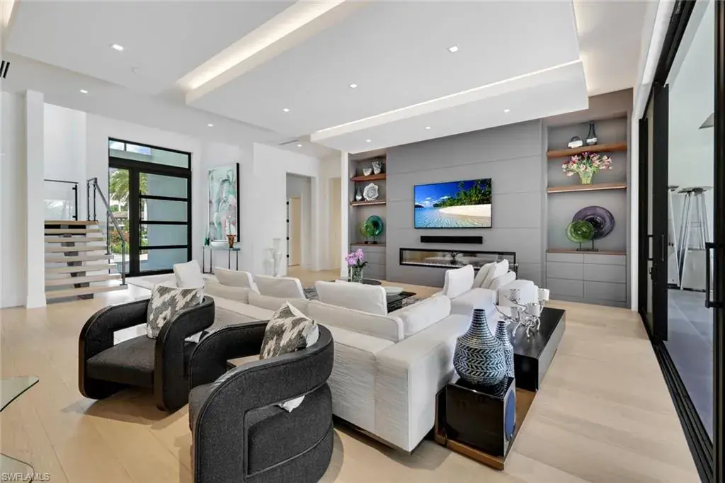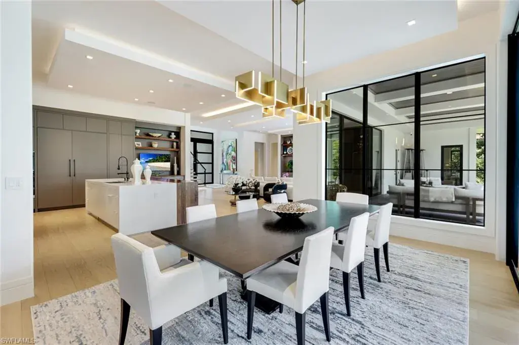 The home is managed by a Control4 Home Automation System for lighting, security, music, window shades and audio/visual. Additional features include hurricane impact-resistant doors & windows by ES Windows. You’ll enjoy superior protection and sound attenuation. Soaring 12-foot sliding doors seamlessly connect indoor and outdoor spaces, while wide plank wood flooring flows beautifully throughout main living areas. Specially designed drop celings to cover air vents. Enjoy the convenience of an elevator, a whole-home reverse osmosis water system, and a robust whole-home generator for uninterrupted power. Even the garage is a haven with full air-conditioning and custom storage solutions. For enhanced peace of mind, this property offers a comprehensive security solution including outdoor surveillance cameras, a fully fenced perimeter, and secure Viking entry gates. This beautiful Pine Ridge Estates property is close to beaches, fine dining, upscale shopping, and the renowned Artis—Naples. This one-of-a-kind estate offers luxury living at its finest.