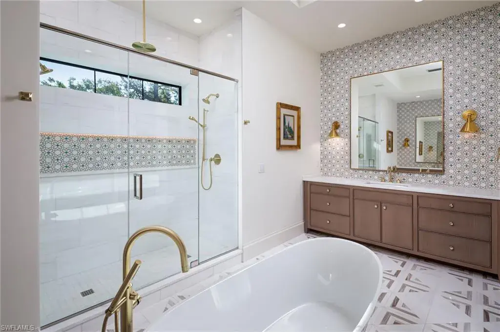 One is seldom afforded the opportunity of possessing such an exquisite private sanctuary, where Mediterranean artistry and modern opulence intertwine. Concealed behind stately gates and set amidst 1.35 acres of immaculately curated landscape within Naples’ most exclusive enclave, this distinguished estate stands as a testament to enduring elegance, grandeur and architectural distinction. The journey begins as bespoke Mahogany arched doors open to a sunlit courtyard retreat where a resort-caliber pool glistens in the southern light. Soothing fountains, twin sun terraces, and an ethereal floating spa invite serene mornings and exuberant gatherings alike, all punctuated by the drama of a double-sided gas fireplace at its heart. The fully appointed outdoor culinary suite features a 36” Alfresco grill and professional flat-top making every meal an event, elevating entertaining to an art form. Step inside to discover over 6,700 square feet of finely appointed interiors (over 11,400 total), designed for effortless enjoyment and refined entertaining. Five lavish bedroom suites promise restful privacy, while a dedicated office and separate guest quarters with a game lounge ensure comfort for both work and play. Car collectors will envy the 6-car garage which was engineered to accommodate ten vehicles with pre-wiring for dual charging stations and lifts. Every detail speaks of uncompromising quality: three signature fireplaces, an enviable wet bar and wine cellar, full Thermador chef’s suite, intelligent Elan system, whole-home reverse osmosis, PGT impact-rated windows, and comprehensive prewired tech for total security and simplicity. Thoughtful utility touches—a 1,000-gallon propane tank, two gas tankless water heaters, five state-of-the-art HVAC systems—are seamlessly integrated for understated efficiency. This is more than a home; it is a resort-inspired haven, where every moment unfolds in luxury, privacy, and enduring style—designed for those who demand the extraordinary from Naples’ premier lifestyle.