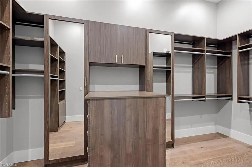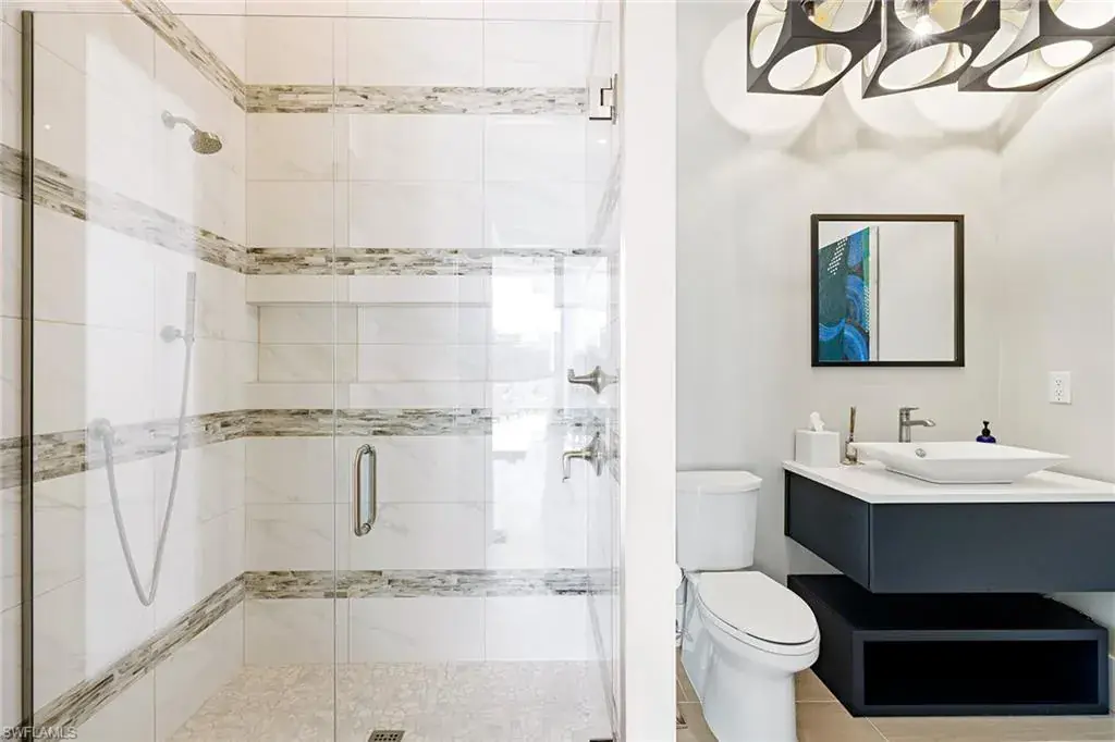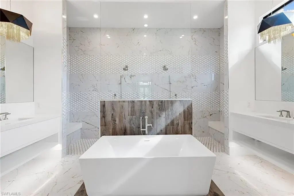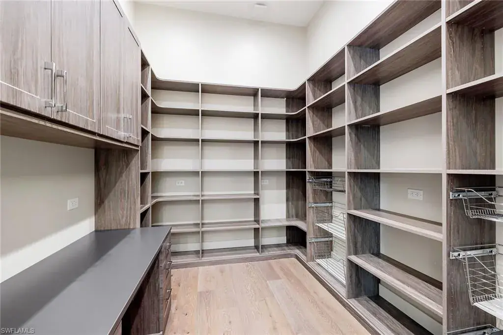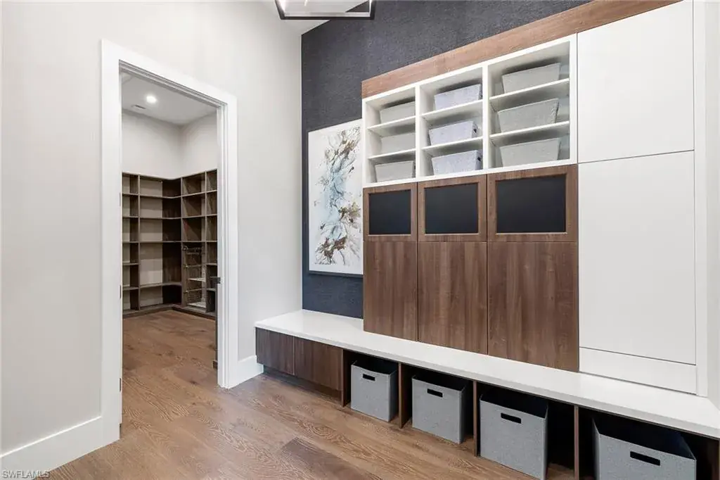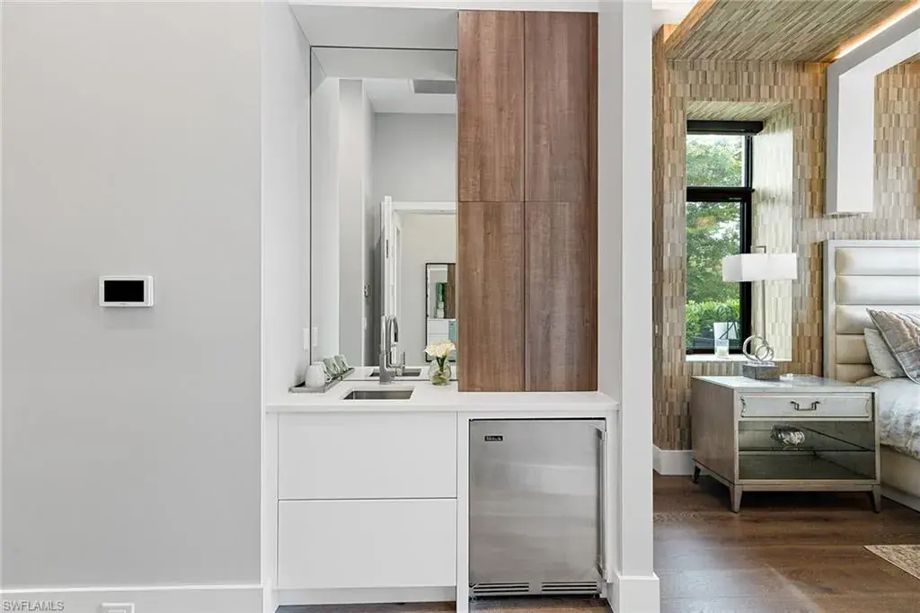 This beautiful contemporary, open-concept home was built in 2021 and sits on a quiet street in Pine Ridge Estate on 1.19 acres. The Stock Custom, single-story home, is just under 5,000 square feet and features four bedrooms with en suites plus a bonus room and study, as well as a chef’s kitchen, butler’s pantry and an enclosed glass wine room. The expansive outdoor area faces southwest and is ideal for entertaining with additional summer kitchen and bar, and multiple lounge areas that overlook the pool and spa. The residence is complete with a double two-car garage and is conveniently just a short distance to Waterside Shops, Mercato and white-sand beaches.