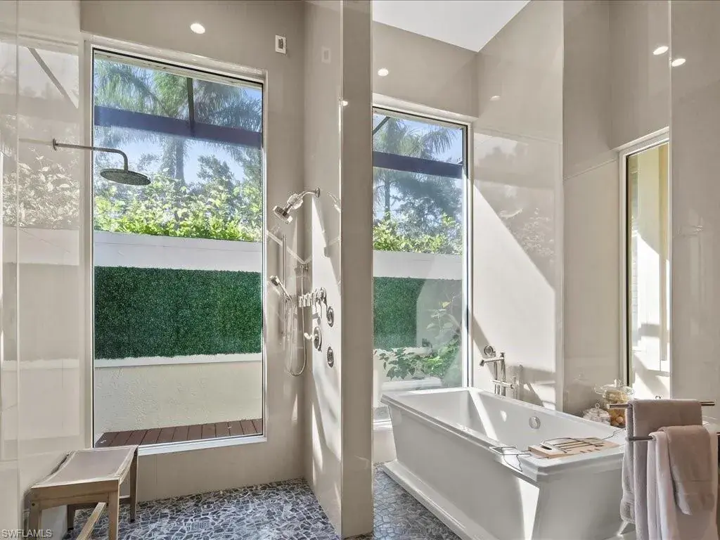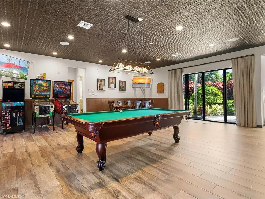 Through stately glass doors, a dramatic foyer introduces interiors defined by natural light and understated elegance. The open dining room, complete with a wood-burning fireplace and seating for twelve, flows seamlessly into the great room and chef’s kitchen—a culinary showcase featuring Wolf and Viking appliances, bespoke cabinetry, a breakfast room, and a fully equipped bar. The primary wing is a private sanctuary unto itself, opening through pocketing glass doors to the courtyard pool. Dual closets, a spa-inspired bath with soaking tub and outdoor shower, a tranquil garden area, and a dedicated office complete this luxurious retreat. Six additional en suite bedrooms are thoughtfully arranged around the resort-style pool—complete with lap lanes, sunning shelves, and spa. The screened lanai offers an outdoor kitchen with gas grill, generous lounge seating, retractable projection screens, and a sunken fire-lit conversation pit designed for evenings under the stars. The two-story guest house extends the lifestyle experience with a home theater, billiards room, red-light sauna, HD golf simulator, and upper-level accommodations including a bunk suite and private guest quarters with balconies. Beyond, the rear grounds offer a pickleball and basketball court, Moroccan-inspired tiki pavilion, swim spa, fire pit, and pergola—creating an unparalleled setting for recreation and relaxation. Fully automated through a Control4 system, this property includes a full-house generator, dual wells, water filtration, home gym, and electric vehicle charging. 656 Hickory Road is a rare opportunity to own a true private resort in the heart of Naples’ most distinguished estate enclave.