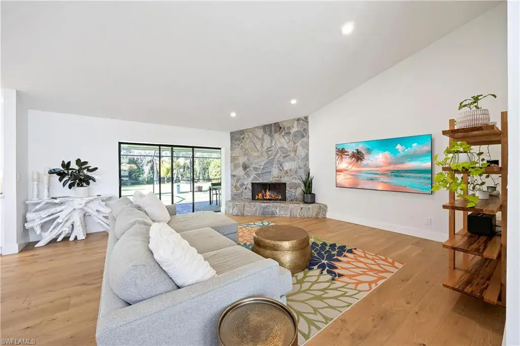 Priced significantly below appraised value for a quick sale. Situated on one of the most desirable oversized lots in the area, this home offers the perfect blend of modern style and seamless indoor-outdoor living. The expansive backyard is a private retreat, ideal for sun-soaked afternoons or cozy evenings by the fire. A spacious resort-style lanai and a secluded outdoor shower enhance the sense of luxury. Inside, tasteful design is complemented by high-quality finishes. The stunning kitchen serves as the heart of the home, featuring a striking island, premium stainless steel appliances, and a thoughtfully designed dining area—ideal for both everyday meals and entertaining. An adjacent wine cooler adds convenience and style. The open-concept layout creates a bright, inviting atmosphere, effortlessly connecting the living spaces and making it easy to entertain or relax in comfort. This home offers convenient access to pristine beaches, top-rated schools, and a variety of shopping and dining options in the surrounding areas, including Mercato and downtown Naples.