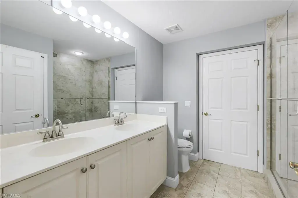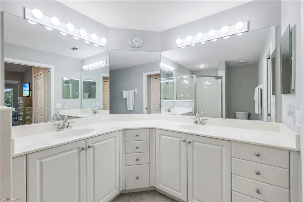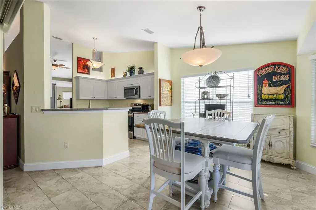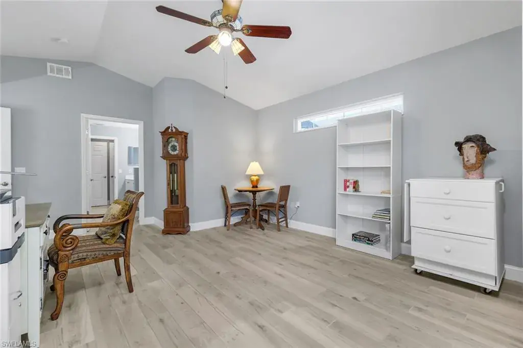Experience effortless resort-style living in this beautifully updated second-floor Pinnacle coach home at The Strand. A private elevator (2016) welcomes you into a bright, airy 2,150 sq. ft. residence featuring vaulted ceilings, porcelain tile flooring throughout, and a thoughtfully designed 3+den, 2 bath floor plan. The enclosed lanai, enhanced with temperature-insulated, noise-reducing Solara sliders and no-see-um screening, is the perfect spot to sip your morning coffee or unwind with a glass of wine while taking in the expansive tropical golf course view. The kitchen is both stylish and functional with newer stainless-steel appliances including an induction range, a pantry with pull-out shelving, and updated fixtures. The open living and dining spaces make entertaining easy, while the den provides flexible use for a home office or reading retreat. The primary suite features two walk-in closets, linen closet and a bath with dual vanities. The guest bath has been tastefully updated with a walk-in shower and frameless glass doors. A well-equipped laundry room includes cabinetry, washer, and dryer—keeping everyday tasks convenient and organized. Every detail has been addressed for comfort and peace of mind—complete replacement of sub-flooring for sound and moisture insulation, newer impact glass windows, tall baseboards, professional interior paint, and a new 2024 Rheem A/C with UV light. Additional upgrades include a new electrical panel with generator transfer switch (supporting both 110 & 220V), new smoke and carbon monoxide detectors, and newer Kohler comfort-height toilets. Enjoy a friendly, active country club lifestyle with access to The Strand’s three impeccably maintained 9-hole golf courses, tennis, pickleball, fitness center, pool with lap lanes, bocce, and croquet. The recently remodeled Strand Clubhouse showcases stunning classic coastal décor, offering residents elegant spaces for dining and socializing. Dine casually at the Island Bar or the all-new Tavern 59, or savor formal dining at the clubhouse. Centrally located in North Naples, The Strand offers easy access to shopping, dining, and the area’s beautiful beaches. This is the perfect blend of comfort, quality, and community—ready for you to move in and enjoy the Naples lifestyle.