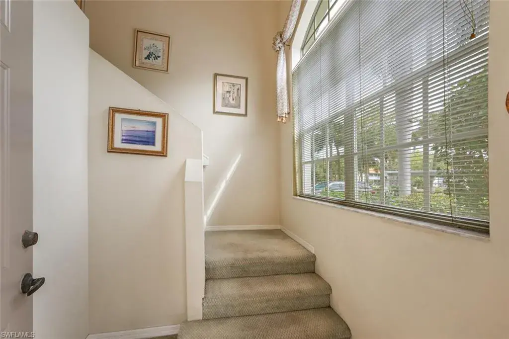 This upper-level condominium in Piper’s Grove offers an excellent opportunity to experience the best of North Naples living. The 2-bedroom, 2-bathroom unit spans approximately 1,357 square feet and features high-volume ceilings. The eat-in kitchen includes counter seating, complemented by a formal dining area ideal for entertaining. The split-bedroom floor plan ensures privacy for both owners and guests, while a combination of carpet and tile flooring enhances the home’s comfort. Natural light fills the space, with morning sun in the kitchen and afternoon sunsets visible from the screened lanai overlooking the lake with western views. The property is sold turnkey but is negotiable.