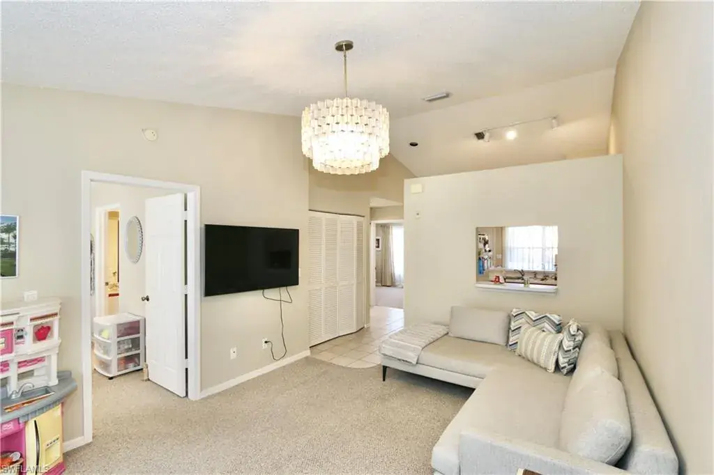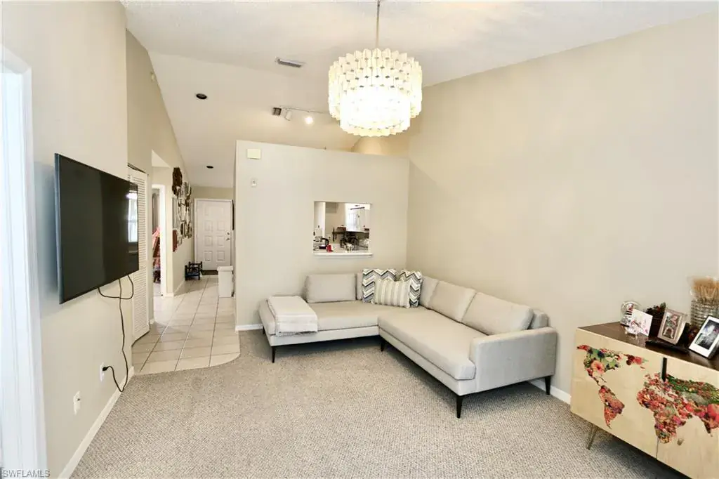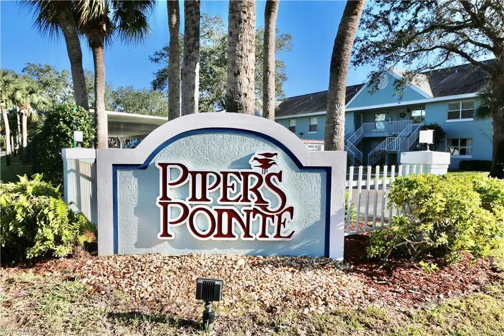 Located in the desirable Piper’s Pointe community of North Naples, is a 2-bedroom, 2-bathroom condominium offering 990 square feet ofcomfortable living space. Built in 1992, this second-floor unit features a great room floor plan with high ceilings, creating an open and airyatmosphere. The split-bedroom layout ensures privacy, making it ideal for both residents and guests. The unit is a move-in-ready. Thefurnishing is negotiable, offering flexibility to tailor the space to your preferences. Residents will appreciate the convenience of a coveredparking space (carport) and access to community amenities, including two swimming pools and a clubhouse. Piper’s Pointe is a pet-friendlycommunity with low condo fees, situated close to shopping, dining, beautiful beaches, and I-75. The well-maintained community features newerroofs, freshly painted buildings, and resurfaced roads, all contributing to its charm and appeal. For those seeking a prime location in NorthNaples with excellent community features and proximity to local attractions.