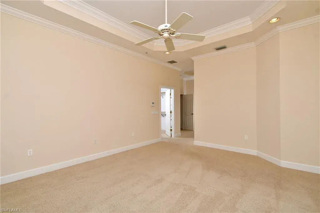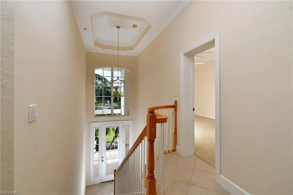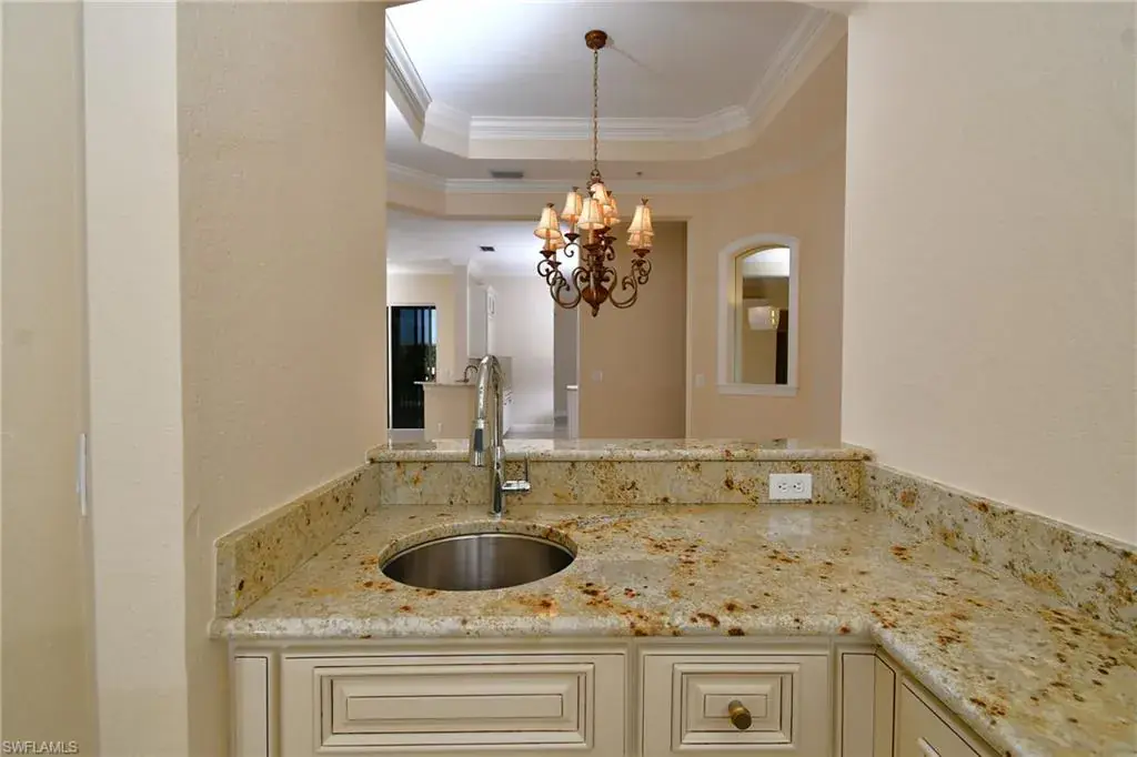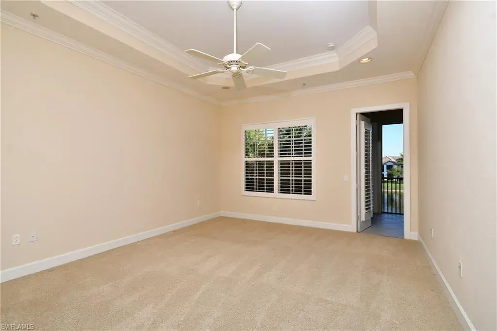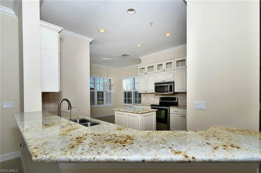 Indulge in resort-style luxury at this stunning top-floor end unit in the exclusive, gated community of Players Cove at Lely Resort. This spacious three-bedroom-plus-den, three-bath residence boasts an impressive array of high-end upgrades, complemented by tranquil water views. The elegant open-concept great room is ideal for entertaining, featuring a stylish seating area, a custom wet bar, and a formal dining room. Large sliding glass doors open to the expansive lanai, creating a seamless indoor-outdoor living and relaxation space. The gourmet kitchen is a chef’s dream, with premium hardwood cabinets, beautiful granite countertops, and stainless steel appliances, making everyday meals and entertaining effortless. Highlights include soaring ceilings with elegant crown molding, impact-resistant glass windows and doors, and plantation shutters. Two spacious guest en-suite bathrooms, a large wet bar, a versatile bonus room perfect for a home office, and an oversized laundry room enhance the home’s convenience and versatility. The two-car garage offers ample storage space, while a private elevator adds an element of exclusivity. As a resident, you gain access to the prestigious Lely Resort Players Club & Spa, featuring dining, social events, resort-style pools, and a state-of-the-art fitness center. Golf enthusiasts will enjoy the community’s three championship 18-hole golf courses. Experience the luxurious lifestyle you deserve at Players Cove, where every detail is crafted for refined living.