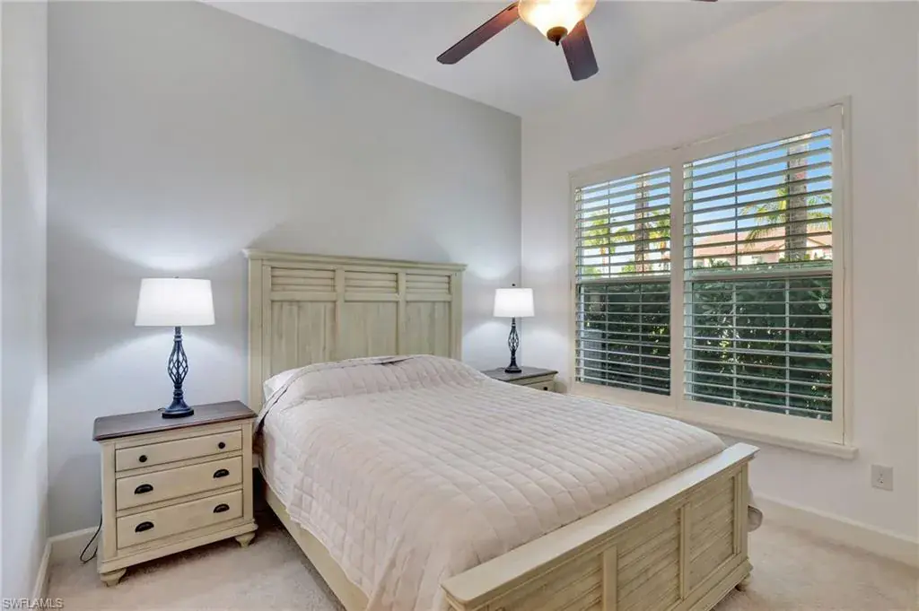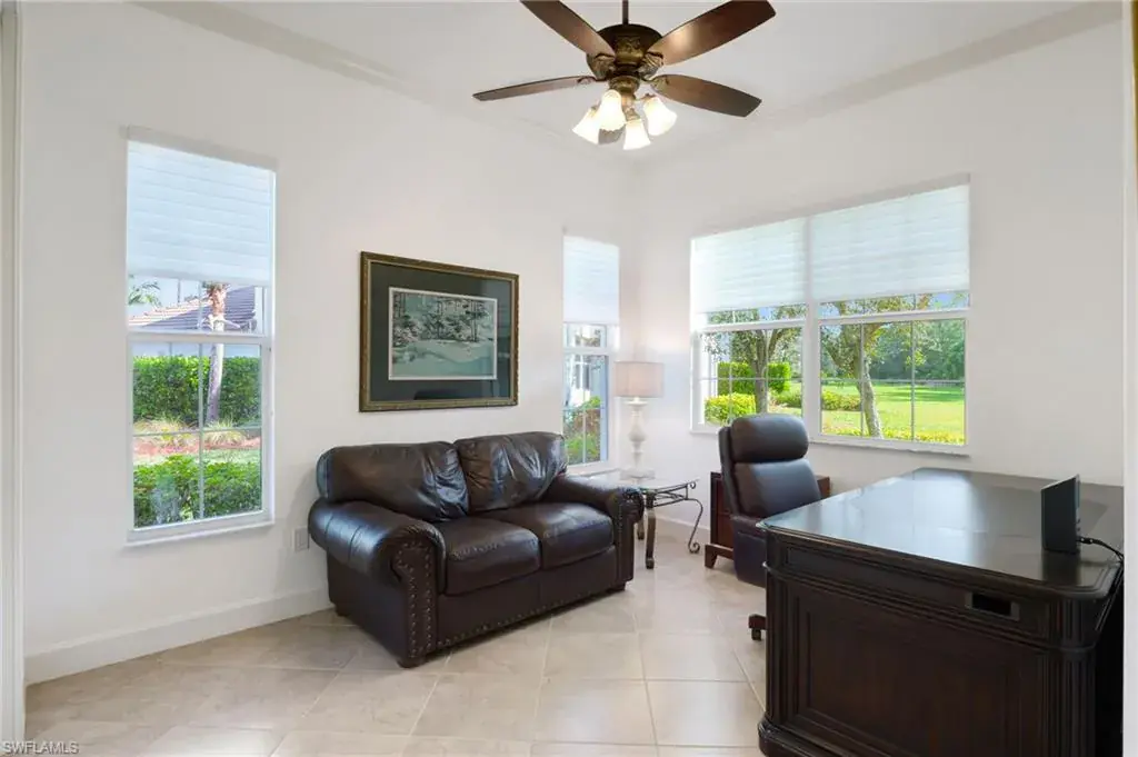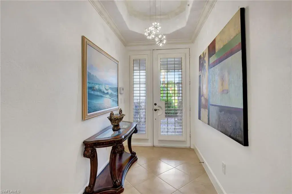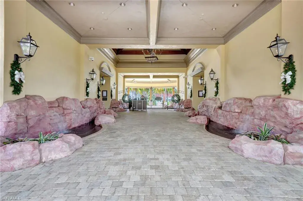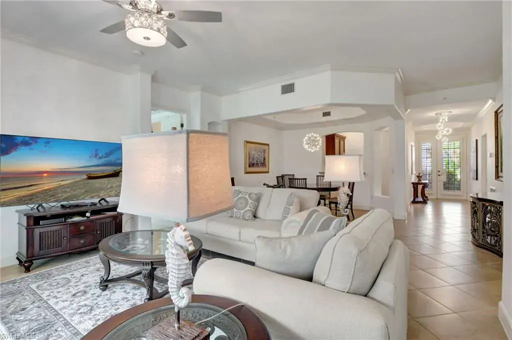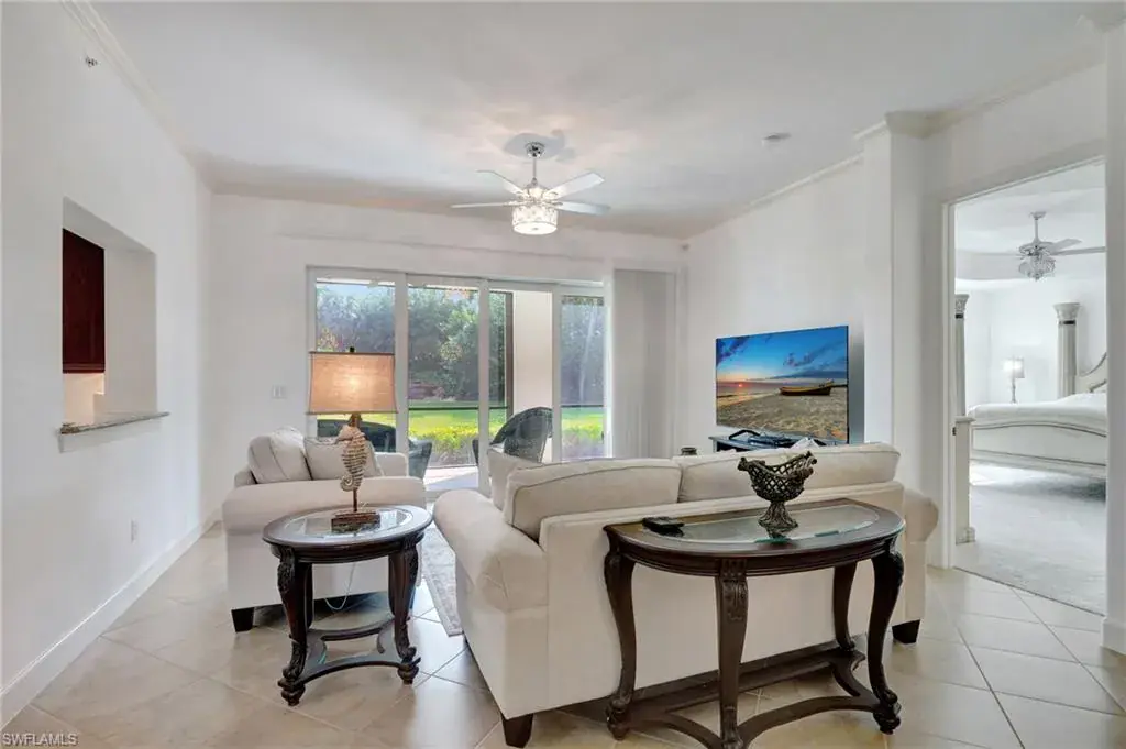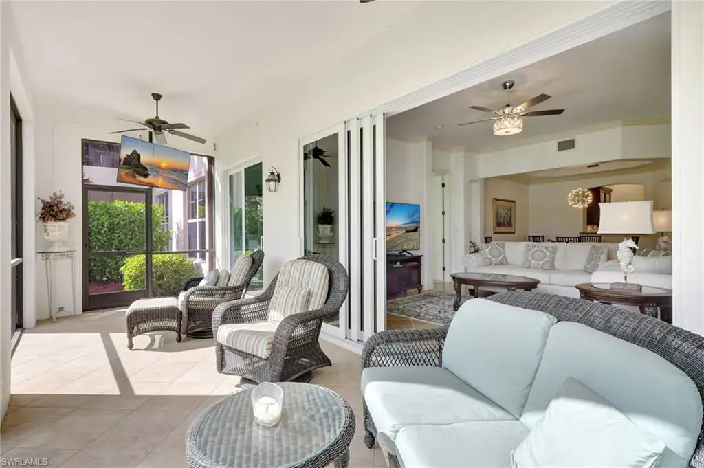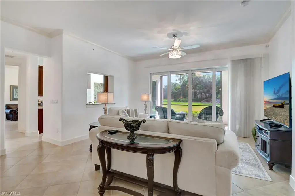 Come step inside this completely remodeled Whitestone floorplan with Southeastern exposure that comes with a IMMEDIATE PLAYERS CLUB & SPA MEMBERSHIP. Conveniently located just inside the gate and steps from the Players Club amenities, this first floor unit boasts just under 2,100 sq feet of under air living space. With three bedrooms and two and a half baths split for ultimate privacy, this condo reads spacious and luxurious. The formal living and dining room as well as the breakfast room all open onto the generous screened lanai that looks onto a lovely greenspace with a water feature. The dedicated foyer, desirable two car garage, and separate laundry room make the condo live more like a single family home. Updates include impact resistant windows and doors along with storm smart roll down shutters on the lanai, fresh paint, new flooring, new stainless steel appliances, new hot water heater, crown molding, custom cabinetry in the primary closet, and wet bar. The Lely community offers the ultimate in lifestyle living with three championship 18 hole golf courses, pickleball, tennis, spa, fitness center, resort style pool, dining options, and a grand selection of social activities. Incredible living at a great value in Lely!
