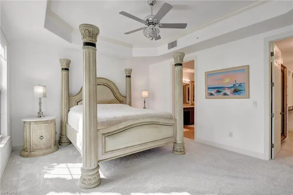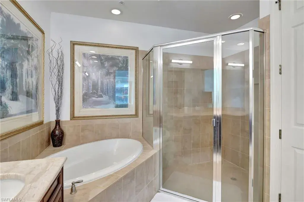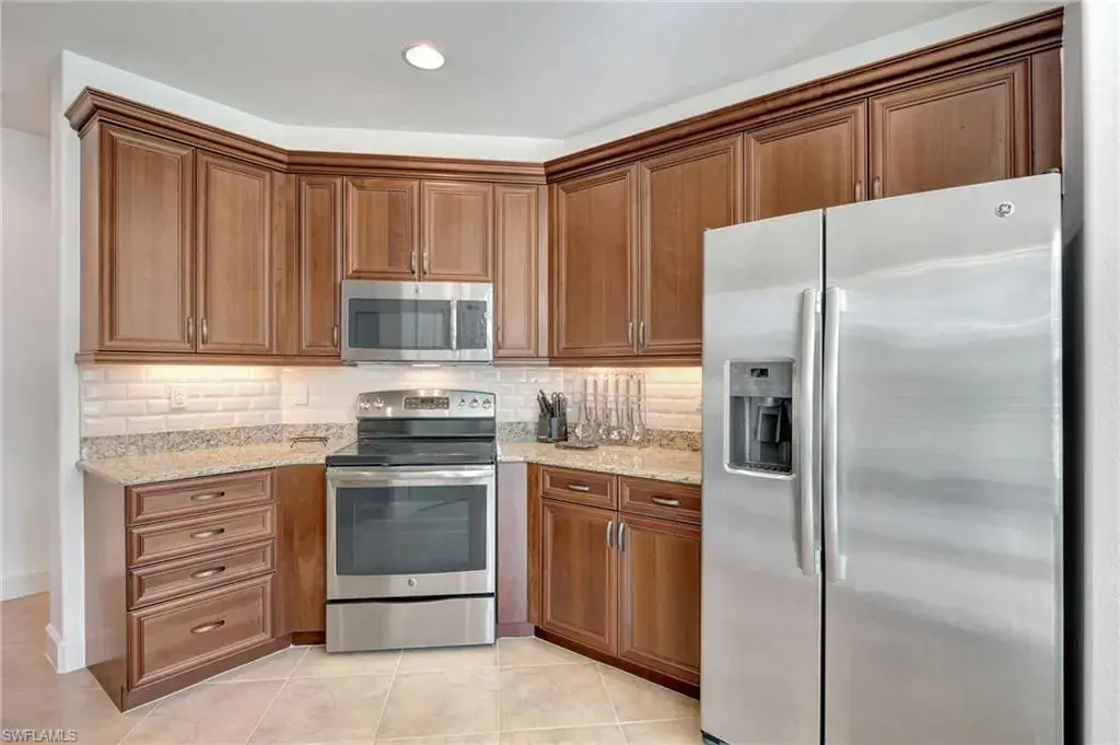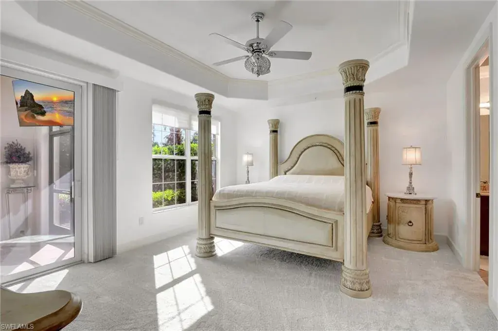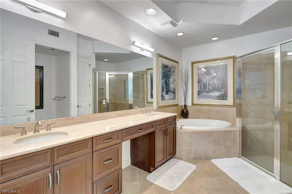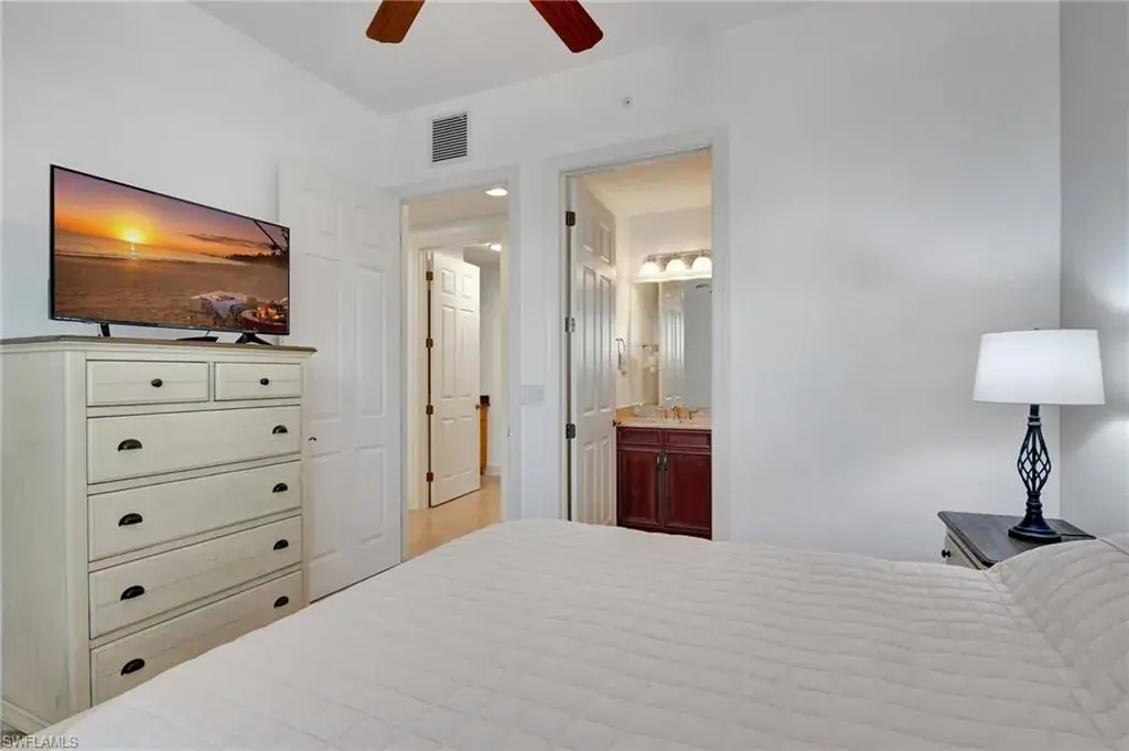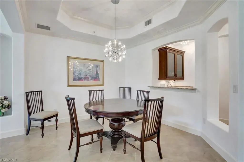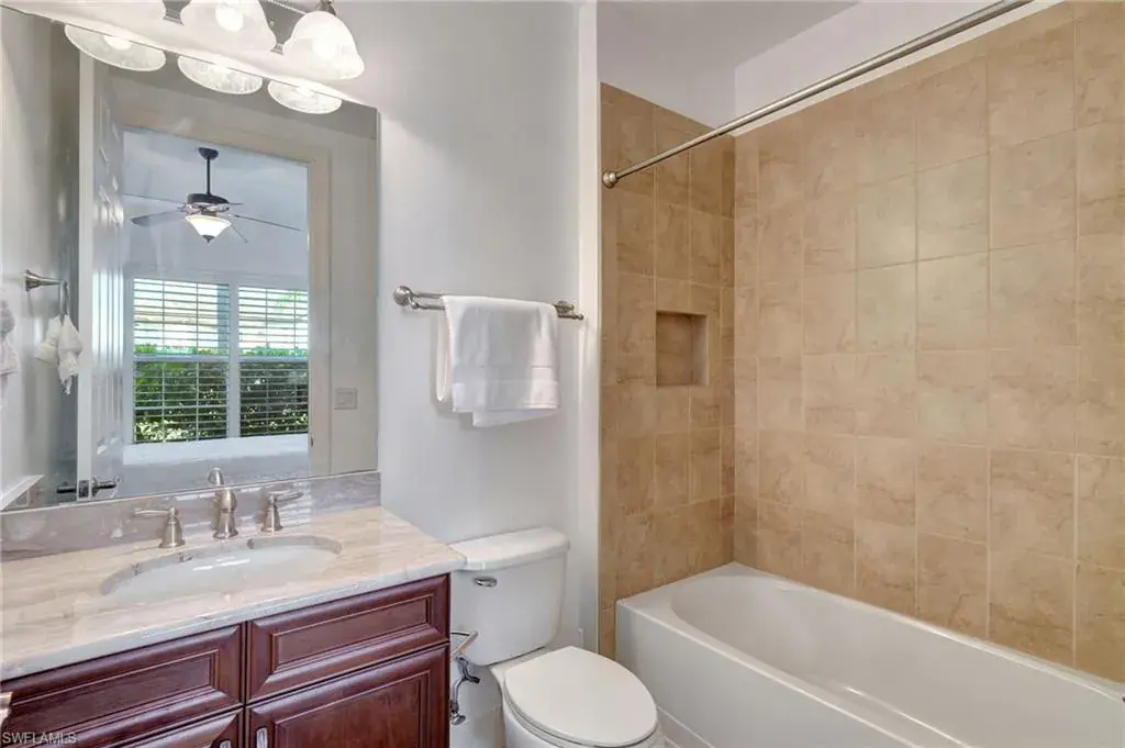 Come step inside this completely remodeled Whitestone floorplan with Southeastern exposure that comes with a IMMEDIATE PLAYERS CLUB & SPA MEMBERSHIP. Conveniently located just inside the gate and steps from the Players Club amenities, this first floor unit boasts just under 2,100 sq feet of under air living space. With three bedrooms and two and a half baths split for ultimate privacy, this condo reads spacious and luxurious. The formal living and dining room as well as the breakfast room all open onto the generous screened lanai that looks onto a lovely greenspace with a water feature. The dedicated foyer, desirable two car garage, and separate laundry room make the condo live more like a single family home. Updates include impact resistant windows and doors along with storm smart roll down shutters on the lanai, fresh paint, new flooring, new stainless steel appliances, new hot water heater, crown molding, custom cabinetry in the primary closet, and wet bar. The Lely community offers the ultimate in lifestyle living with three championship 18 hole golf courses, pickleball, tennis, spa, fitness center, resort style pool, dining options, and a grand selection of social activities. Incredible living at a great value in Lely!