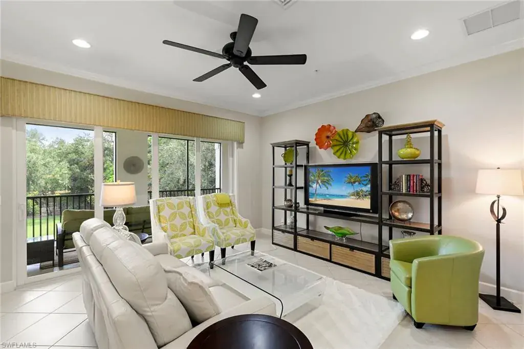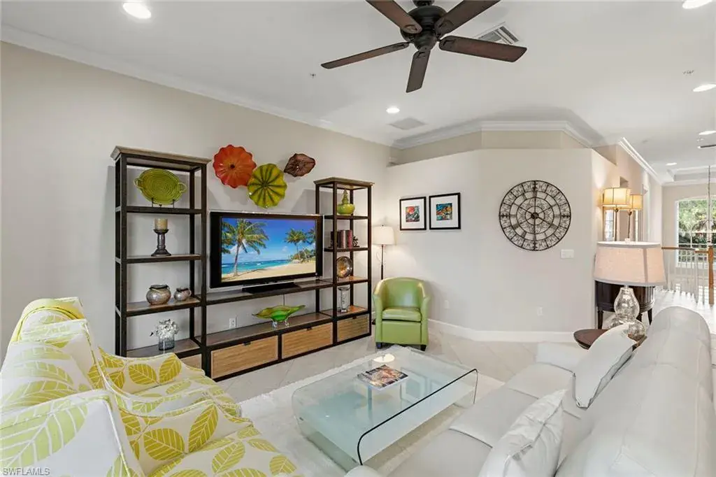 Resort-style luxury awaits in the prestigious gated community of Players Cove at Lely Resort. Spanning 2,743 square feet, this three-bedroom plus den, three-bath residence combines elegant finishes with exceptional functionality. The den can easily be converted into a fourth bedroom, and furnishings are included for a turnkey experience. Flooded with natural light, the open-concept layout features volume ceilings, plantation shutters, and a recently refreshed kitchen with new backsplash and countertops. A full wet bar with refrigerator adds a touch for effortless entertaining. A private elevator and impact-resistant windows provide convenience and peace of mind. The spacious lanai offers a lush landscaped water view, the ideal spot to unwind with tranquility. Primary suite impresses with a large California Closet and a refreshed primary bath including frameless shower and new countertops, while the second en-suite guest bedroom enjoys a private balcony. Notable updates include a new air conditioner in 2022, a new water heater in 2024, a new smart thermostat in 2024, and new bedroom carpeting in 2024. A versatile bonus room adds flexibility for a home office or additional storage. Custom cabinetry has also been added to the laundry and garage for ample storage. On a private cul-de-sac, Players Cove is just across the street from the award-winning Players Club & Spa. Your immediate membership with provide access to resort pools with waterfalls, a tiki bar, indoor/outdoor dining, tennis and pickleball courts, bocce, a luxury spa, fitness center and an incredible social life. Golf enthusiasts can enjoy three championship courses, including two public options and the private Classics course. This is more than a home, it’s a lifestyle. Experience the luxury, convenience and vibrant community that make Players Cove one of Naples sought-after addresses.