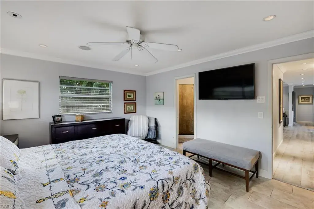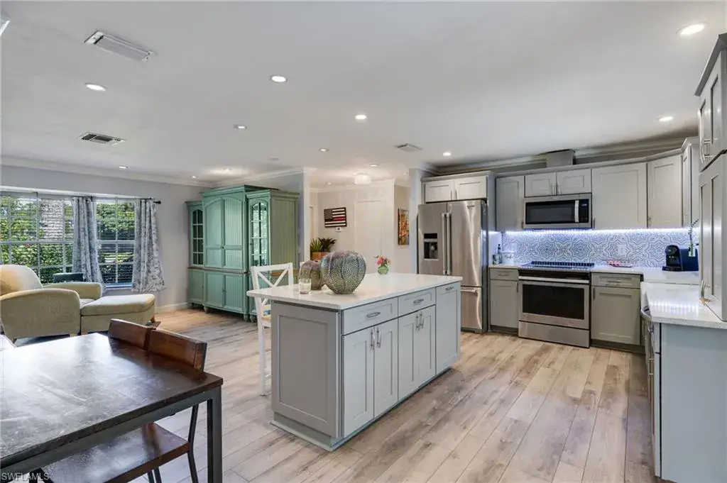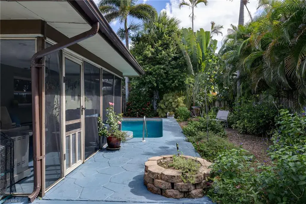Welcome to this beautifully maintained pool home in the desirable Poinciana Village community, a safe neighborhood complete with sidewalks and a welcoming atmosphere. Perfectly situated in Naples, this residence offers convenient access to top-rated schools, shopping, dining, and all the best the area has to offer. Step inside and you’ll find elegant crown molding, a modern updated kitchen with quartz countertops, and stylish cork back vinyl flooring throughout. Outdoors, the property shines with its private pool and an impressive permaculture garden, designed to provide both beauty and sustainability. Enjoy harvesting from your own collection of fruit trees including banana, papaya, lemon, lime, mango, elderberry, wonder berry, peanut butter fruit, ruby red grapefruit, and shampoo ginger, along with a thriving vegetable garden. This unique combination of comfort, convenience, and natural abundance makes this home a rare find in one of Naples’ most sought-after neighborhoods.