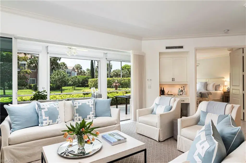 The ultimate in coastal elegance in a picture perfect location! The Pointe is a gated community within popular Pelican Bay, & is located near the North Beach tram station for easy access to the beautiful wide sandy beaches, berm, pavilion, & the Pelican Bay private beachfront restaurants, too. This is a spacious end unit residence w/9′ 6″ ceilings, or higher, offering peaceful views of the fountain; you’ll enjoy its tranquil sounds as you pass to the pool & spa or for grilling. The Pointe fitness center, library, & clubhouse are also close by. In the residence, the master suite has a sitting area, private entry to the lanai, & walk-in closets with built-ins for organization. Plenty of privacy afforded is by the 2 guest suites located apart from the primary BR – there is room for everyone to enjoy this lifestyle & gather, or relax. Also appealing is a gorgeous kitchen with breakfast bar. The Pointe is close to the best dining and shopping Naples has to offer such as Waterside Shoppes, Mercato, the Venetian Village, plus 5th Ave. S. & historic Third St. S. This residence is a stunning must see! Pet friendly too & a larger pet ok. 2 car garage has bike storage & tile floors.