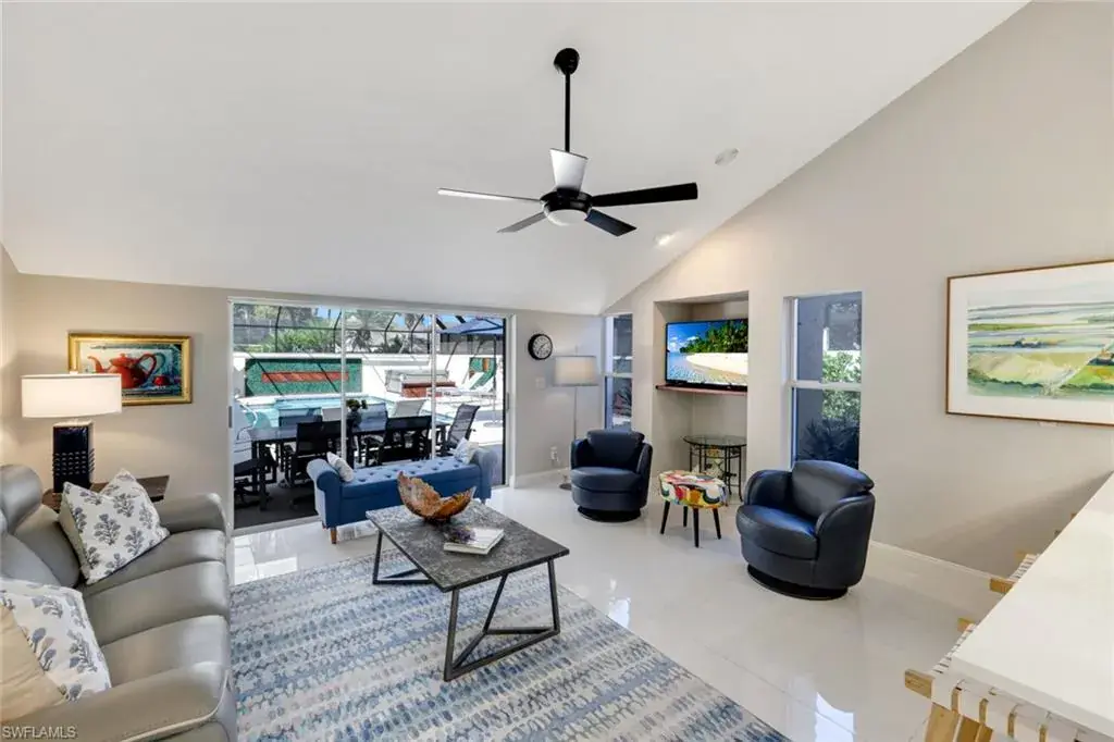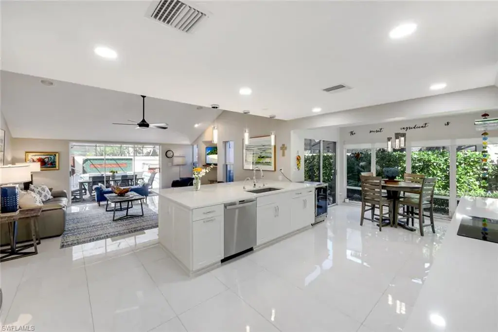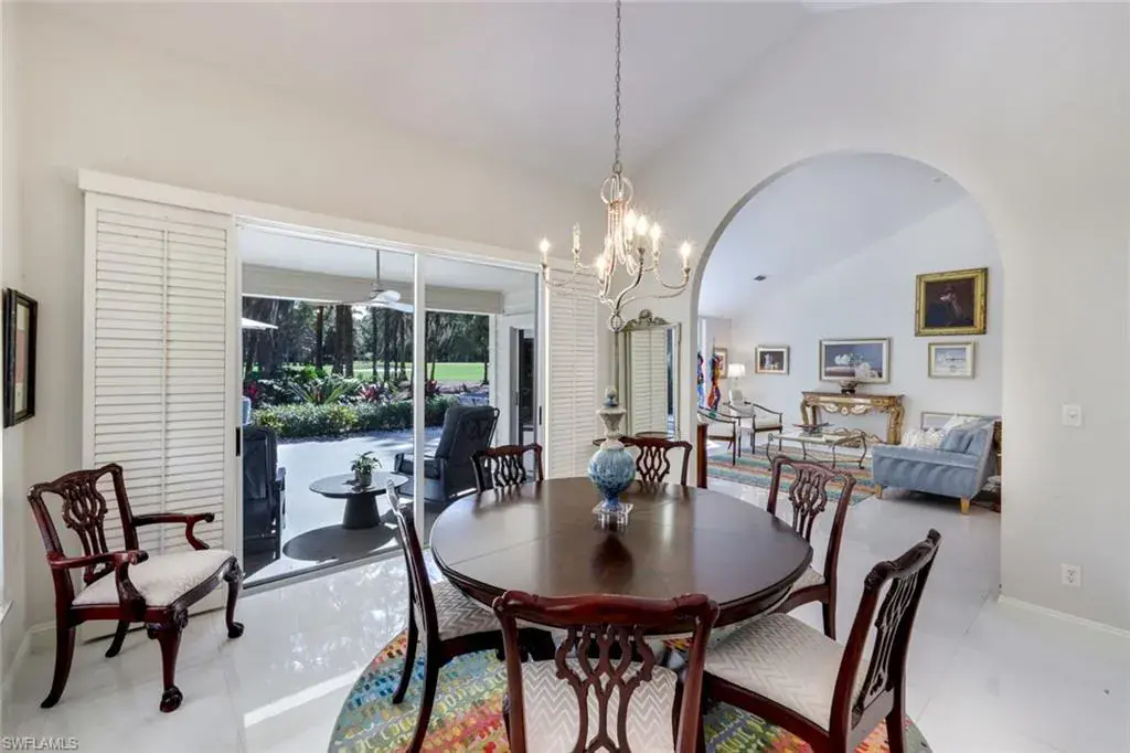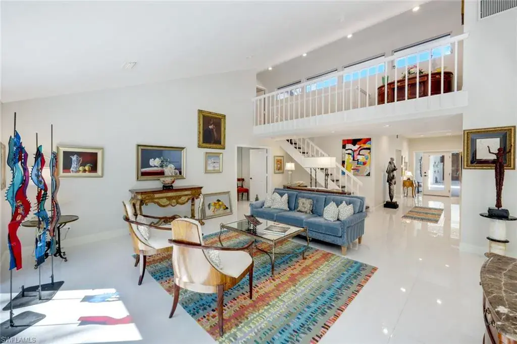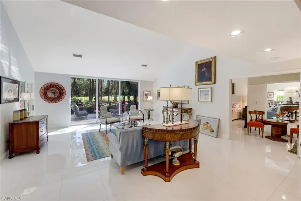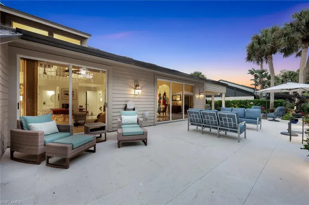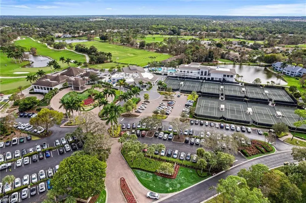 Welcome to your very own private tropical sanctuary! This magnificent property offers 7,500 sq ft of indoor/outdoor living and entertaining spaces. Set back from the golf course with vibrant green grass, mature trees and lush tropical landscaping, the private 16 x 74 sq ft natural stone patio is the perfect place to enjoy a sunset cocktail or entertain a large party. This attached villa truly lives like a single-family home. Tastefully renovated with glossy ceramic tile flooring throughout, the inside of the home is perfect for casual Florida living. This property features a beautifully renovated spacious kitchen, equipped with stainless steel appliances, sleek quartz countertops, ample storage with an eat-in kitchen and connected family room. The living room has vaulted ceilings and transom windows that illuminate the interior living space with beautiful natural light. A formal dining room, two guest bedrooms and a primary bedroom complete the main level. The 2nd floor has a private guest room, bathroom and versatile loft that could be used as a home office or den. The impressive teak entrance door welcomes you to a large screened-in courtyard with a private saltwater pool, spa, outdoor shower, pool bath, fire pit and plenty of space for lounging or outdoor dining. Two car garage with epoxy flooring and whole house generator a plus. Wyndemere, an award-winning 2025-2026 Platinum Club of America, offers unmatched amenities, including 27 holes of Arthur Hills golf, 10 HarTru tennis courts, pickleball courts with 165 stadium seating for pickleball pro exhibitions, active bocce teams, full croquet, a resort style zero entry pool, golf simulator, putting greens, driving ranges, 2 pro shops. A full-service spa, salon and state of the art fitness center with a full schedule of group exercise classes and personal training. Enjoy formal dining, as well as indoor/outdoor casual dining at the Tiebreaker, and a lively social schedule of events/parties at the club. Wyndemere, known for its friendly and welcoming membership, is ideally located within minutes to 5th Avenue world class dining, shopping and the spectacular sugar sand Gulf beaches. Live everyday like you are on vacation and come enjoy this amazing lifestyle!