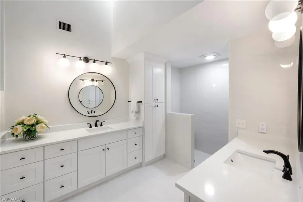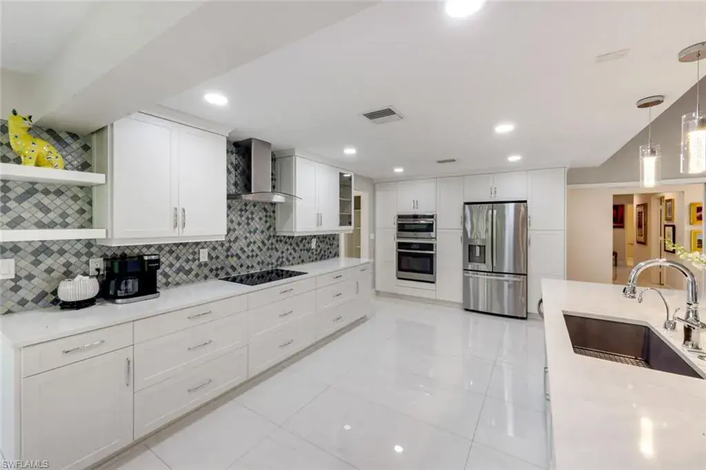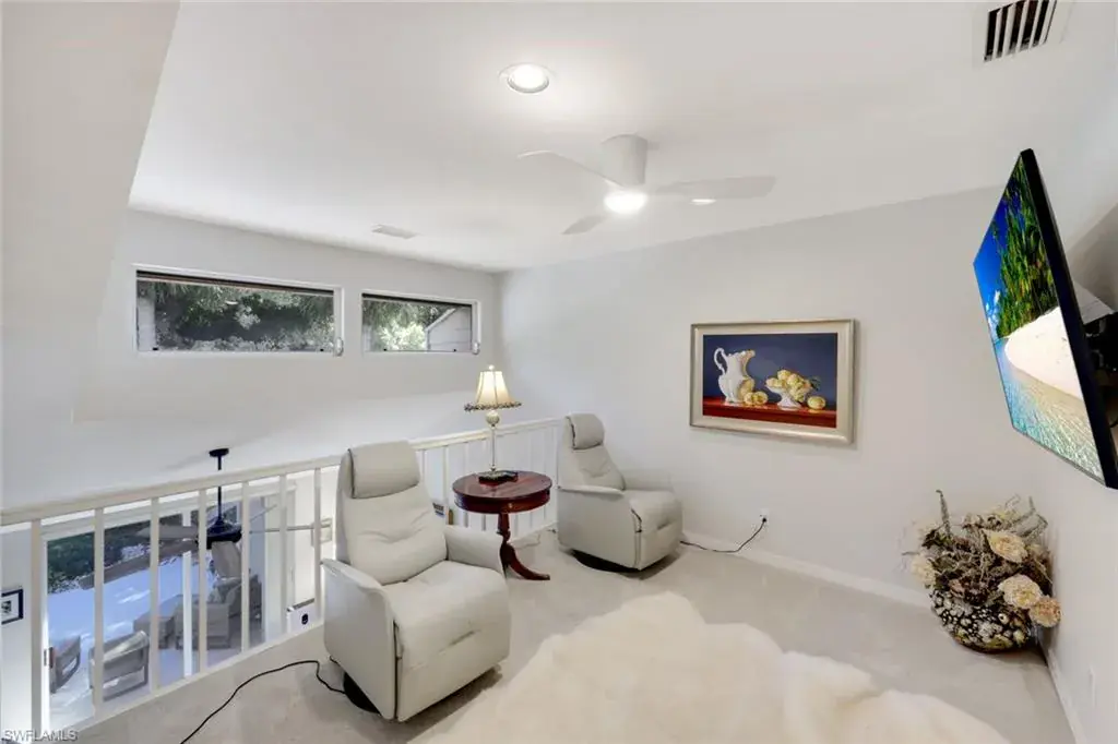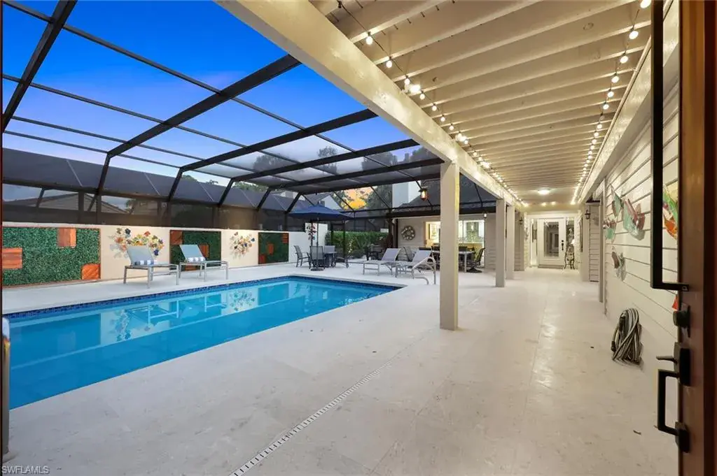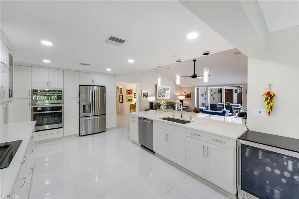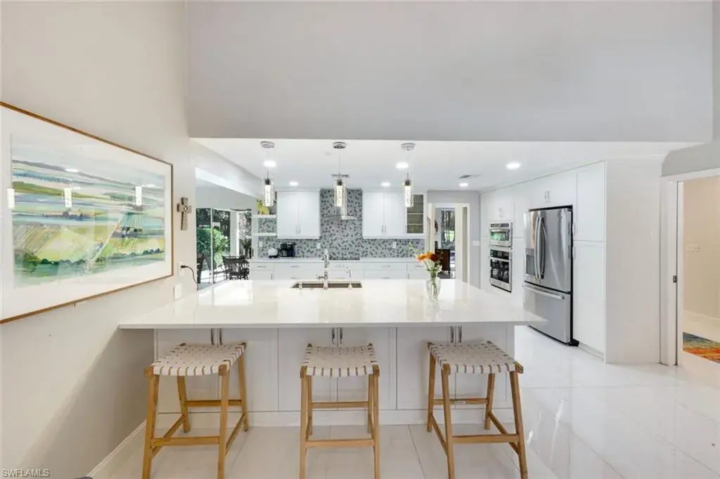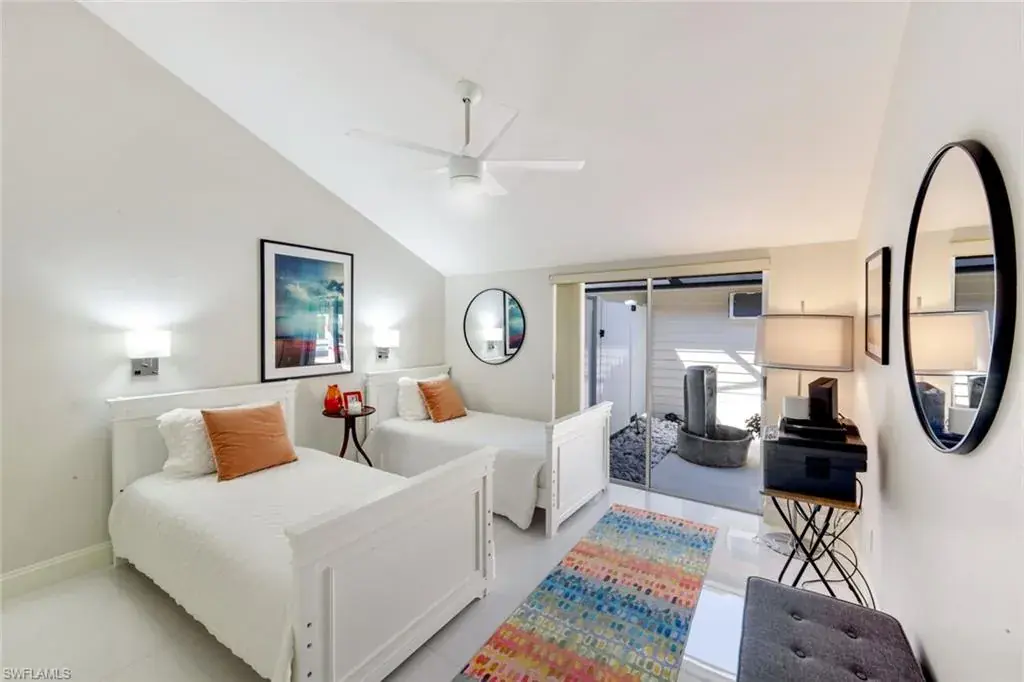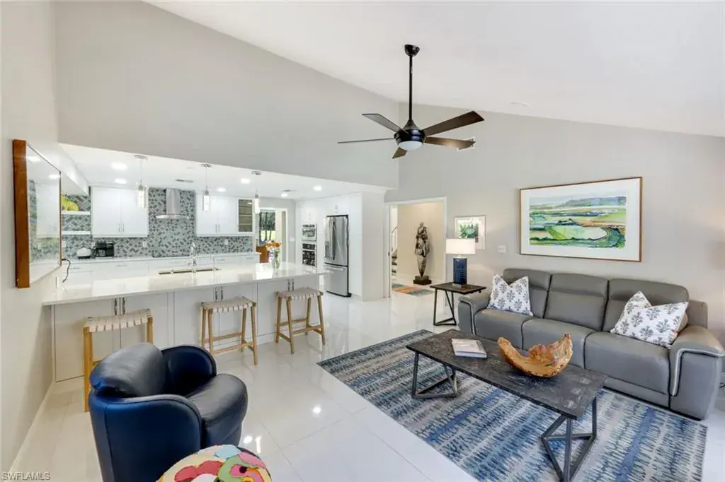 Welcome to your very own private tropical sanctuary! This magnificent property offers 7,500 sq ft of indoor/outdoor living and entertaining spaces. Set back from the golf course with vibrant green grass, mature trees and lush tropical landscaping, the private 16 x 74 sq ft natural stone patio is the perfect place to enjoy a sunset cocktail or entertain a large party. This attached villa truly lives like a single-family home. Tastefully renovated with glossy ceramic tile flooring throughout, the inside of the home is perfect for casual Florida living. This property features a beautifully renovated spacious kitchen, equipped with stainless steel appliances, sleek quartz countertops, ample storage with an eat-in kitchen and connected family room. The living room has vaulted ceilings and transom windows that illuminate the interior living space with beautiful natural light. A formal dining room, two guest bedrooms and a primary bedroom complete the main level. The 2nd floor has a private guest room, bathroom and versatile loft that could be used as a home office or den. The impressive teak entrance door welcomes you to a large screened-in courtyard with a private saltwater pool, spa, outdoor shower, pool bath, fire pit and plenty of space for lounging or outdoor dining. Two car garage with epoxy flooring and whole house generator a plus. Wyndemere, an award-winning 2025-2026 Platinum Club of America, offers unmatched amenities, including 27 holes of Arthur Hills golf, 10 HarTru tennis courts, pickleball courts with 165 stadium seating for pickleball pro exhibitions, active bocce teams, full croquet, a resort style zero entry pool, golf simulator, putting greens, driving ranges, 2 pro shops. A full-service spa, salon and state of the art fitness center with a full schedule of group exercise classes and personal training. Enjoy formal dining, as well as indoor/outdoor casual dining at the Tiebreaker, and a lively social schedule of events/parties at the club. Wyndemere, known for its friendly and welcoming membership, is ideally located within minutes to 5th Avenue world class dining, shopping and the spectacular sugar sand Gulf beaches. Live everyday like you are on vacation and come enjoy this amazing lifestyle!