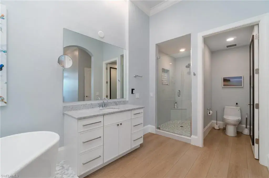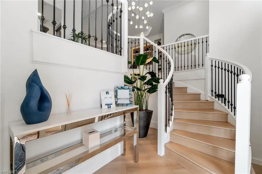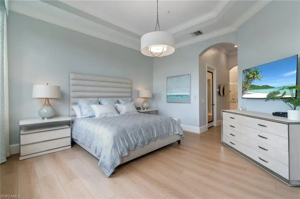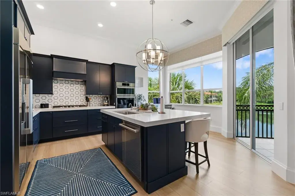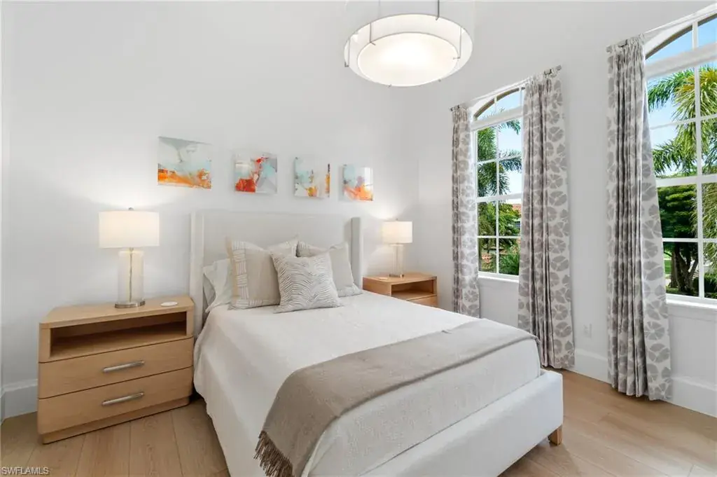 INCREDIBLE VALUE! MOVE IN READY BEAUTIFULLY RENOVATED AND FURNISHED MEDITERRA HOME! This recently fully renovated and furnished second-floor coach home in Mediterra showcases a fresh modern coastal design with soothing tones of blue, white, and tan. The light-filled interior features an open floor plan, elevated finishes, and stylish furnishings that create a relaxed yet sophisticated atmosphere. Enjoy long lake views from the spacious screened lanai, and the added convenience of a private driveway—rarely offered in coach homes. Located in the heart of Mediterra, one of Naples’ most prestigious gated communities, residents enjoy access to the exclusive Mediterra Golf & Beach Club, featuring two Tom Fazio championship golf courses, a private newly renovated beach club along the Gulf of Mexico, state-of-the-art fitness, tennis, pickle-ball, and exceptional dining. New 38 million dollar sports club facility just approved!