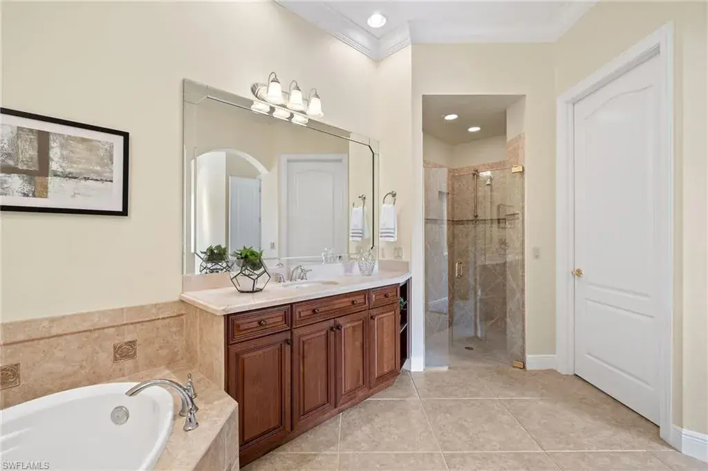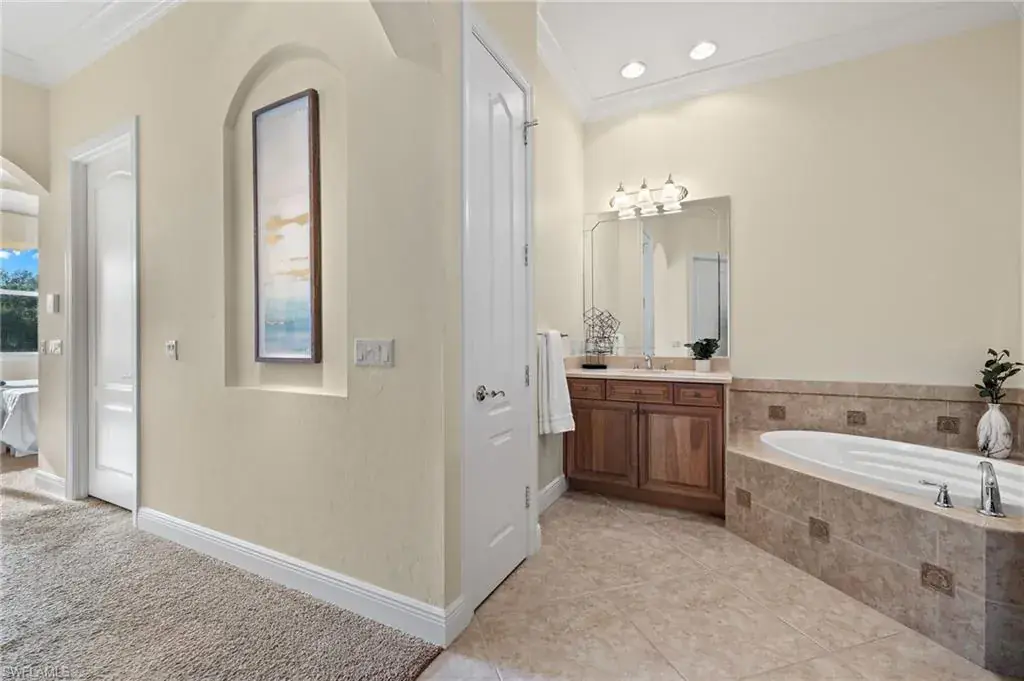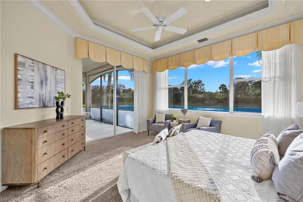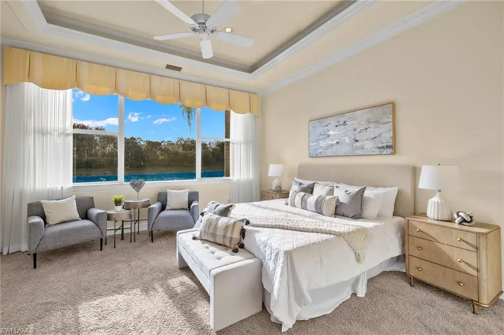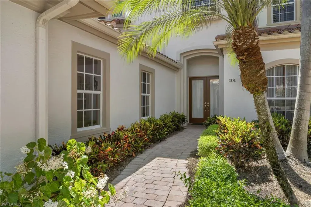BEST value in ALL of Mediterra! Welcome to paradise! Located in the heart of Mediterra, a golf community that offers unparalleled access to the finest amenities and lifestyle opportunities, this coach home is the one to redefine style and sophistication! A spacious living area with breathtaking views of the surrounding lake and green scenery is the perfect place to relax and unwind. The ample space for cooking and entertaining as well as the newly remodeled kitchen with custom cabinetry and quartz countertops are sure to impress whether you’re hosting a formal dinner party or an intimate gathering. Maximizing on that eastern morning sun and glistening lake views, the sizable master suite features a spa-like bathroom, complete with a soaking tub, walk-in shower, and dual vanities. Two additional guest bedrooms, one en-suite, in addition to the office/den area compliment the floorplan to a very comfortable living space. The community speaks for itself, whether you are an avid golfer or not, you will be enamored with a variety of other amenities that Mediterra affords its residents. The newly renovated and much anticipated Beach Club is now open!