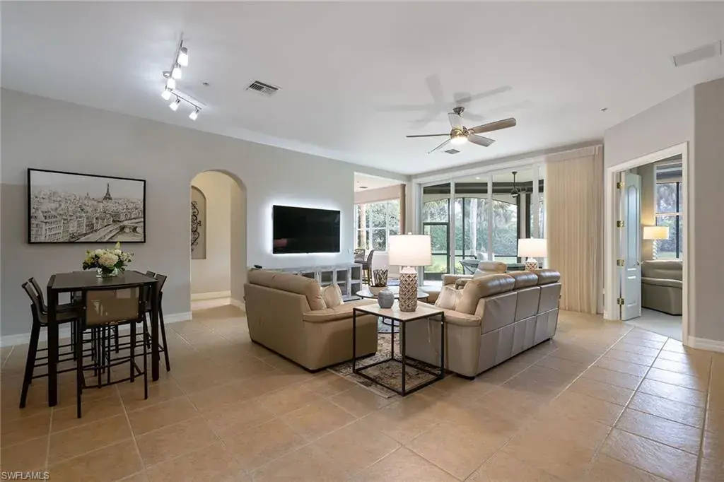 IMMEDIATE GOLF MEMBERSHIP AVAILABLE! Set in a private cul-de-sac in Porta Vecchio at Mediterra, this residence blends effortless modern living with thoughtful upgrades and refined comfort. The three-bedroom plus den, three-bath floor plan features a two-car garage with epoxy flooring. A new Control4 system automates interior lighting throughout the home. Impact-rated sliders in the great room and remote-controlled hurricane screens at the outdoor living area enhances safety and ease of use. The kitchen has been updated with refinished cabinetry and reverse-osmosis water filtration, while Hunter Douglas motorized window treatments offer both elegance and convenience throughout the home. Natural light and a desirable southeast exposure enrich the living and dining areas, which are designed for both everyday living and entertaining. A spacious screened-in lanai provides a tranquil setting for morning coffee or sunset gatherings. The private primary suite is complemented by two guest bedrooms and a flexible den, ideal for remote work or additional guests. Residents of Mediterra enjoy access to 36 holes of Tom Fazio-designed championship golf, Har-Tru tennis, pickleball, bocce, and a vibrant social calendar. Enjoy your toes in the sand and golden sunsets at Mediterra’s private Beach Club along the Gulf. Valet parking, reserved lounge chairs, 10,000 square feet of beachfront space, indoor and alfresco dining, a full bar, pool, lockers, and dressing areas elevate the experience. A brand-new Sports and Lifestyle Center is also coming soon, designed to enhance wellness and connection within this award-winning community. This move-in-ready residence offers a rare opportunity to enjoy the best of the Mediterra lifestyle immediately.