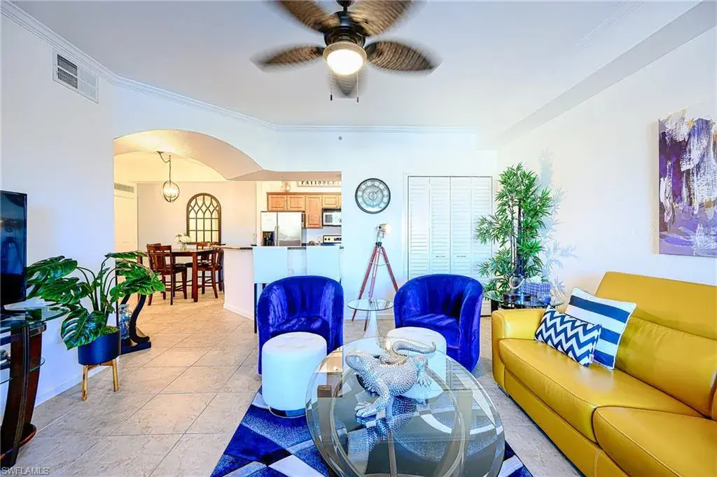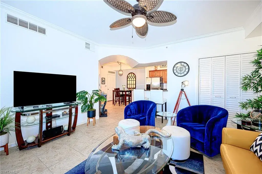 Move-in ready, great opportunity to own your slice of Paradise in central Naples nestled along the desirable Livingston Rd corridor. From the pool-side, lake and fountain view, enjoy Naples’ breath taking sunsets on your tastefully decorated screened lanai. Recently painted, with updates, this well appointed/furnished Verona 1bedroom/1bath floor plan offers built-in decorative features, granite countertops and raised panel cabinetry throughout, stainless steel appliances, garden tub/shower, generous walk-in closet, in-residence full washer & dryer, newer HVAC/2022, plus newer water heater/2022. (Note: Sellers prefer to sell furnished, but will consider negotiating furnishings.) This fiscally sound, well managed, gated and patrolled community, offers resort-style amenities, and on-site property management. This location with proximity to many local amenities, is less than 5 miles to Clam Pass beach, and is sure to please!
