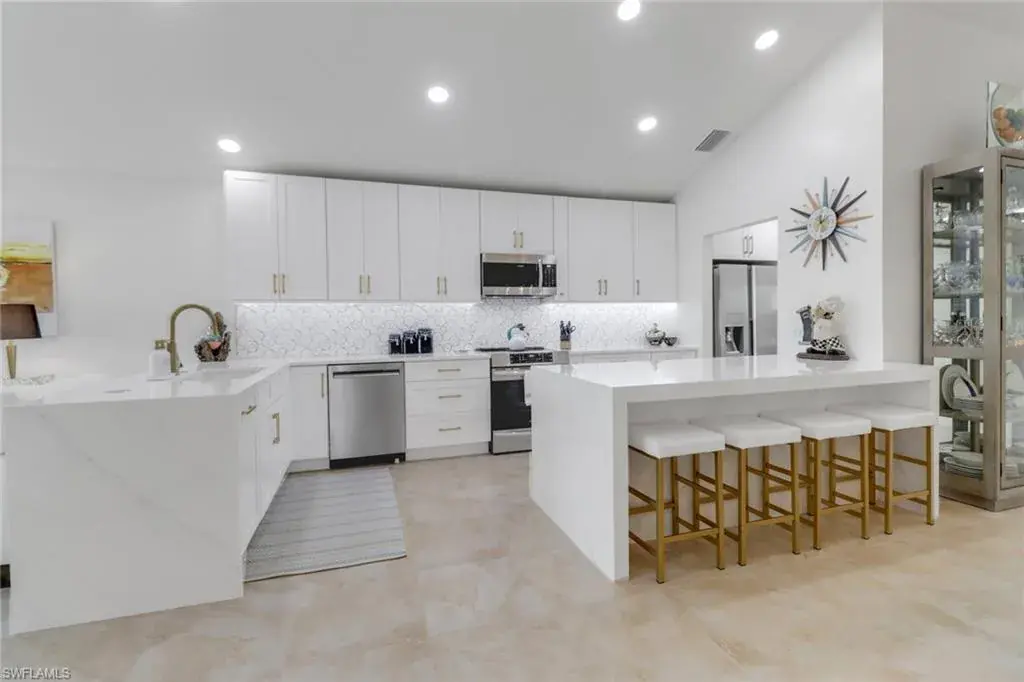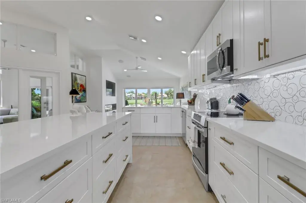 Renovated, refined, and ready for you! This stunning Quail Nest home boasts panoramic views of a wide lake and golf course, soaring ceilings, and an abundance of natural light. The gourmet kitchen offers a wine cooler, large pantry, induction cooktop, and breakfast counter, while the living room’s oversized picture window and electric fireplace create an inviting gathering space.