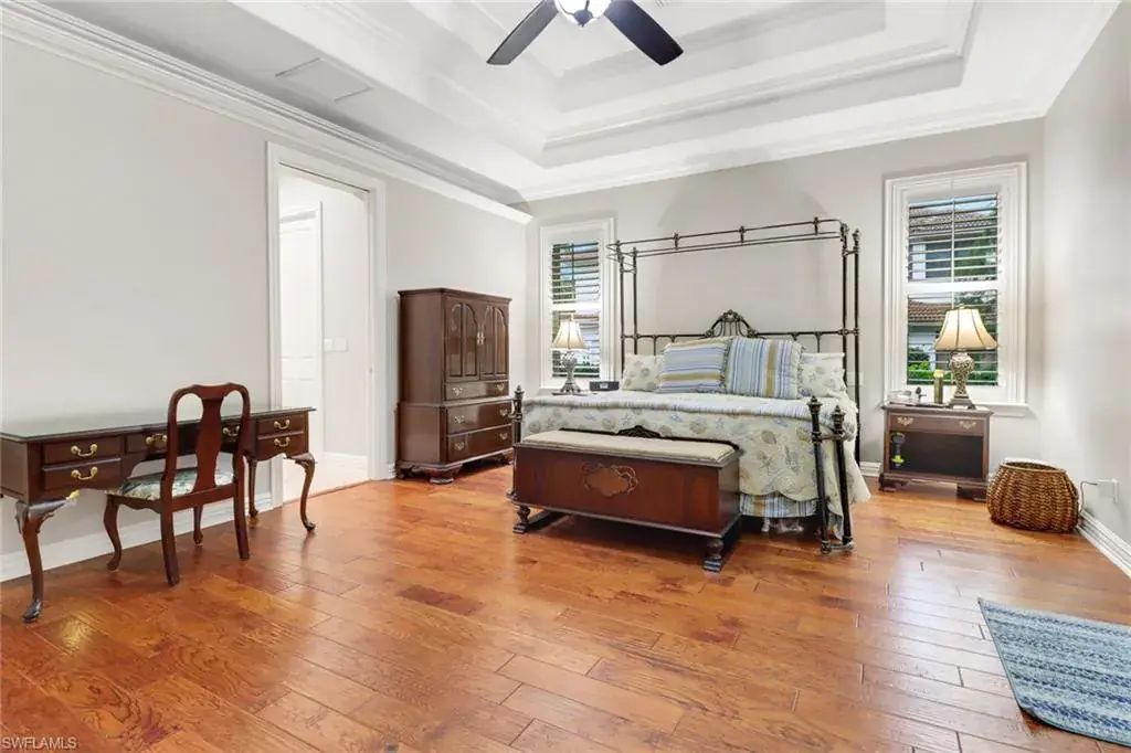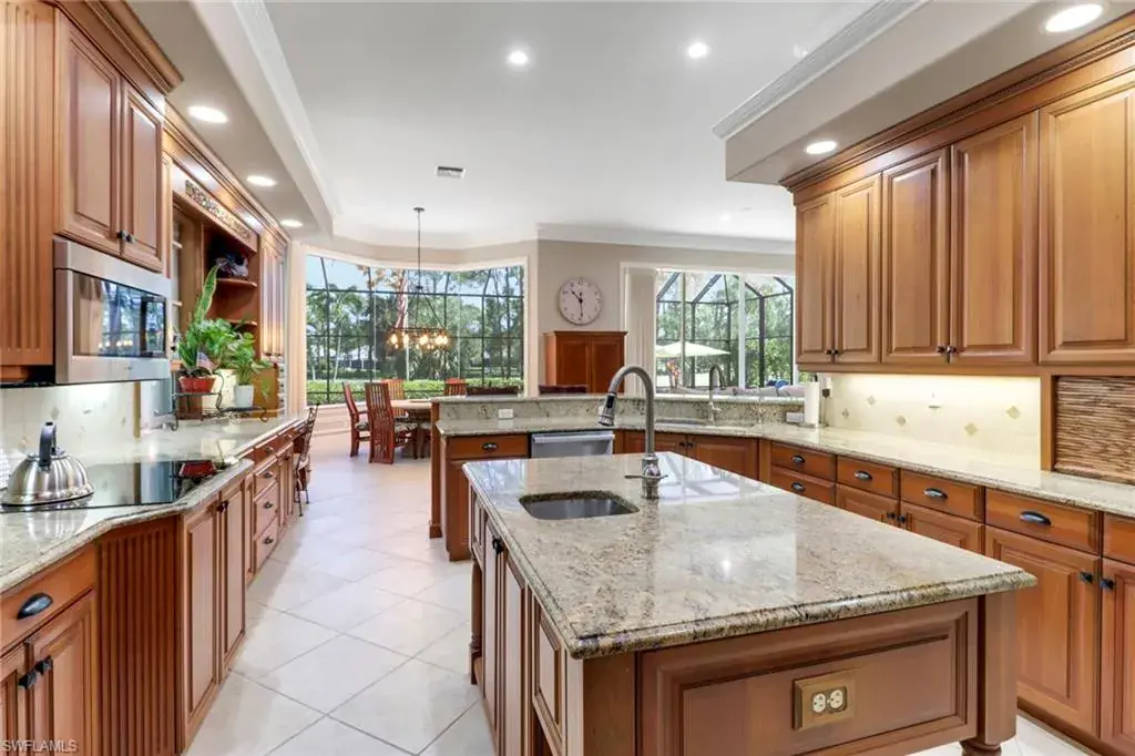 Sophisticated Style Meets Smart Two-Level Design!  Welcome to your next chapter in luxury living, this spectacular two-story residence offers a rare blend of flexibility, comfort, and opportunity positioned directly on the lush fairways of one of Naples’ most sought-after golf communities.  Step inside and immediately feel the volume and grace of the main level anchored by a sprawling primary suite that delivers serenity and privacy. The heart of the home opens into an extra-large family room, beautifully enhanced by an entertainer’s bar and seamless connection to the kitchen, ideal for hosting gatherings or simply enjoying the ease of everyday elegance.  But the true crown jewel?  The second floor features two spacious bedrooms, two full baths, a complete kitchen, and a generous living space or bonus room.  Perfect for a growing family or extended guests, this upstairs suite offers unmatched versatility in today’s market.  All of this, in a guard-gated, amenity-rich golf community, surrounded by lush landscaping and the prestige of Quail Creek.