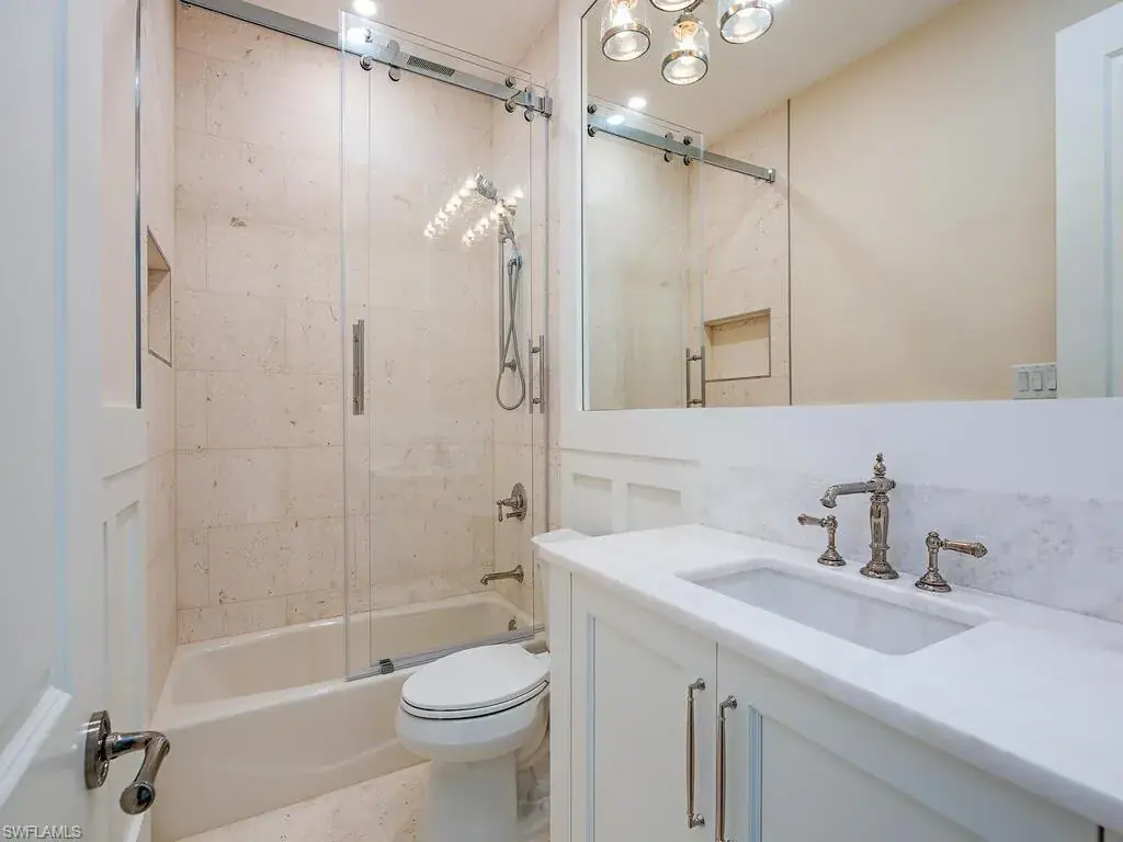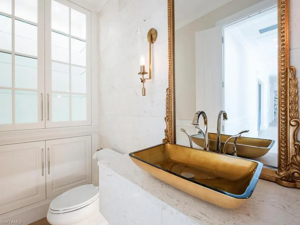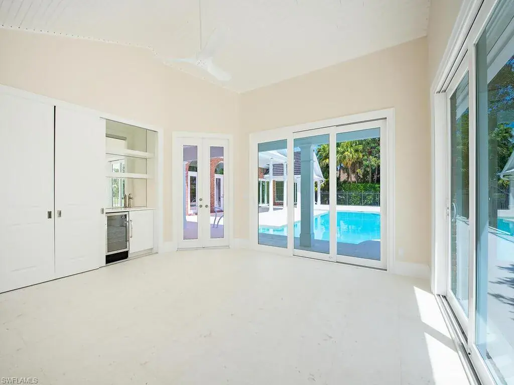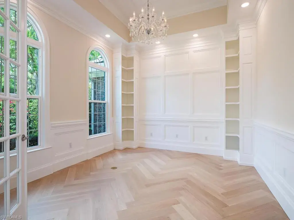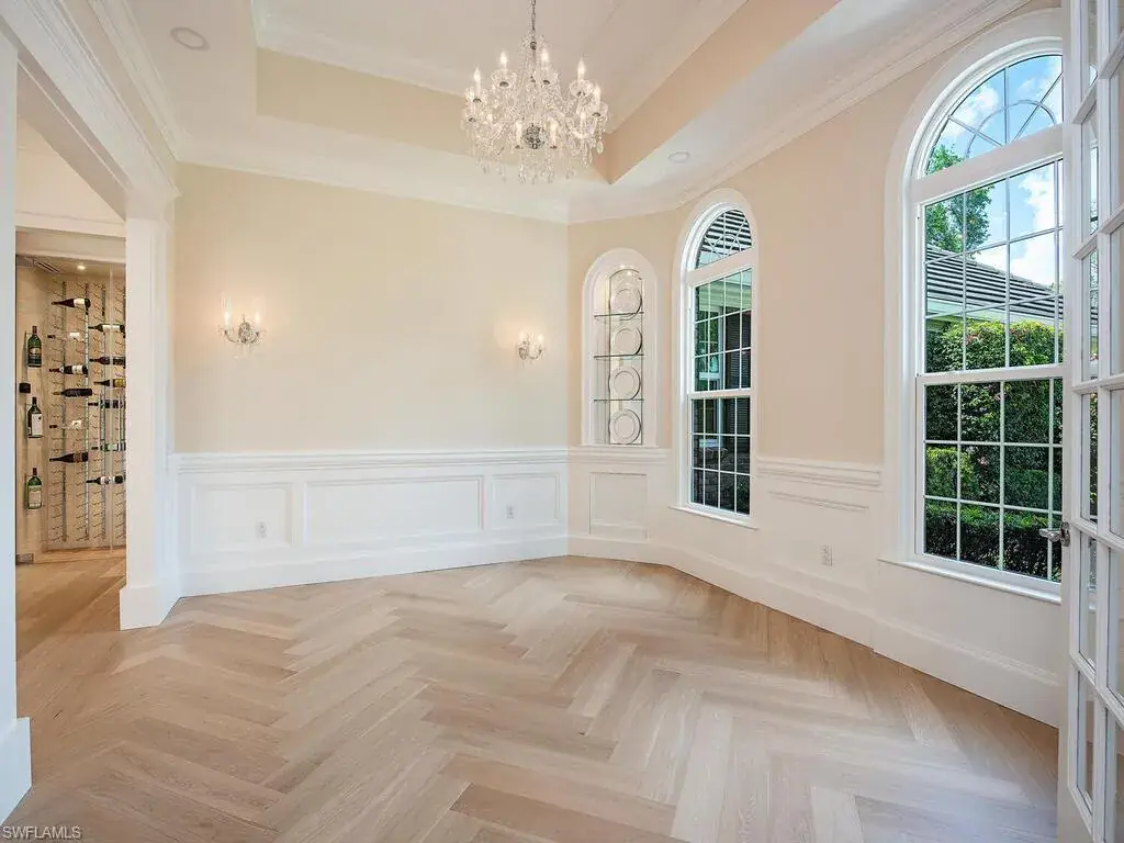 NO WAITLIST FOR GOLF! Perched along Quail Creek’s meticulously maintained greens and behind its private gates, this sprawling, recently renovated residence offers timeless appeal and modern luxury while offering an unmatched level of amenities and world-renowned golf. The transitional residence spans across almost 5,000 sq. ft. of living space and offers a total of four-bedroom suites, one of which is a luxurious master suite complete with sitting room, fireplace, and sauna; four full bathrooms and one-half bathroom, library / study, as well as a truly gourmet kitchen and adjacent bar equipped with top-of-the-line appliances. A circular brick pavered driveway leads the way to a quaint private garden that envelopes the home’s double door entry. Step inside to soaring ceilings, rich millwork, herringbone floors, and walls of French doors overlooking a resort-style pool and spa. Considered the heart of the home, a truly gourmet kitchen featuring a custom-built, expansive burled wood island with dual dishwashers, sinks, and disposals, make it an ideal space for cooking, baking, and entertaining. The well-designed kitchen also includes ample countertop and storage space, with a built-in pantry, and top-of-the-line Thermador appliances, including a 48-inch gas range, two side-by-side refrigerators and freezers, built-in oven, warming drawer, and a microwave/convection oven. Directly adjacent, a custom bar/coffee station is equipped with an ice maker, beverage cooler, wine fridge, and Miele coffee system. The master suite serves as a true sanctuary, with a spa-inspired bathroom that includes a large sauna, dual vanities, a standalone tub, an oversized, zero-entry glass shower with body jets, multiple adjustable shower heads, and a hand-held body spray. The suite’s dressing room, a true masterpiece, offers a large center island surrounded by mirrored cabinetry, providing ample space for both him and her. The expansive 2,800 sq. ft. exterior living terrace was crafted out of shell stone decking and creates the perfect space for entertaining around the stunning saltwater pool and spa – all while enjoying panoramic golf-course views. Additional features that make this an incredible value include new impact-resistant doors, windows, and garage doors, as well as a stand-out, climate-controlled 288-bottle wine display, and much more. Quail Creek is known for its two Arthur Hills designed 18-hole golf courses, as well as its recently renovated club house that offers multiple options for members to enjoy not only golf, but tennis, pickle-ball, and bocce ball programs, as well as spa services, a Blue Zone fitness center, additional social groups, clubs, activities, and two fabulous dining options.
