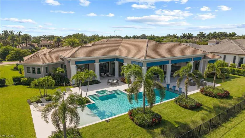 Inside, a spacious split-floor plan ensures privacy for all. The primary suite, located in its own wing, is a true oasis featuring a morning coffee bar, spa-inspired bathroom, two enviable custom walk-in closets and two water closets, spacious shower and more. Additional highlights include a 4-car garage plus golf cart bay, retractable screens and storm shutters, tons of storage throughout including an over-sized laundry room with loads of cabinetry and much more.