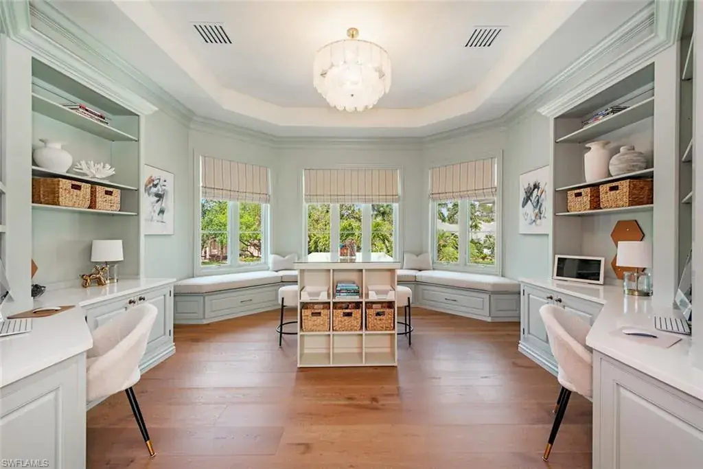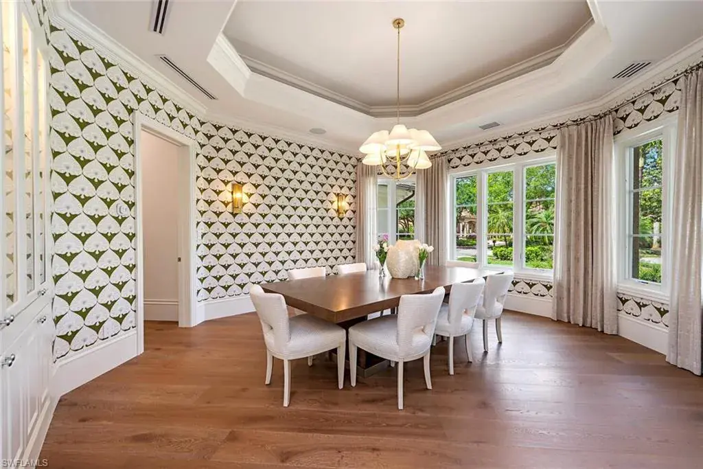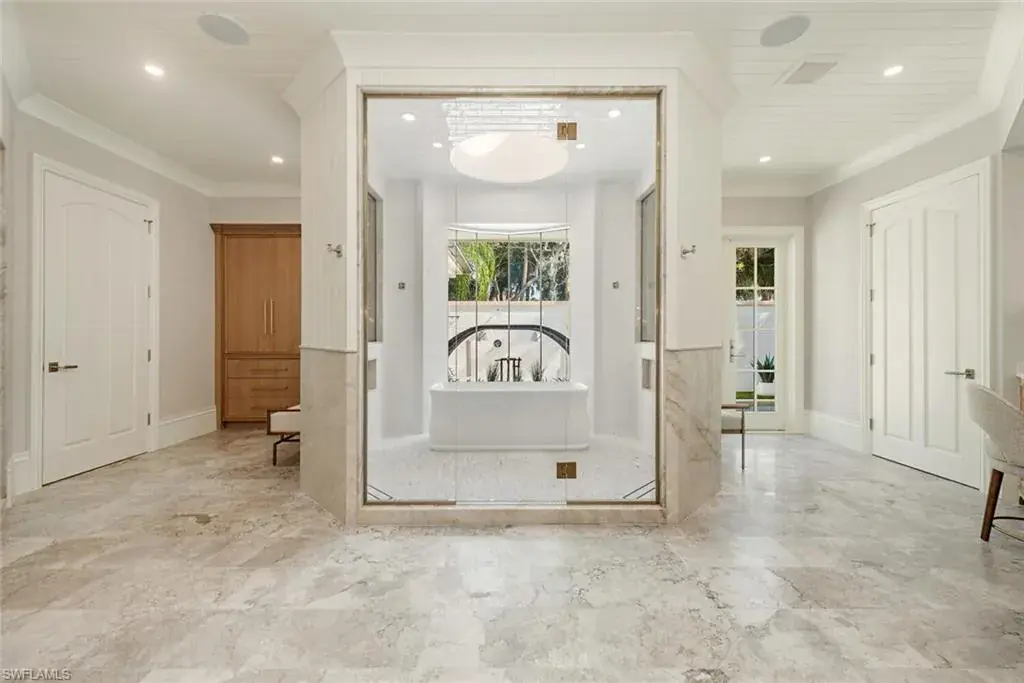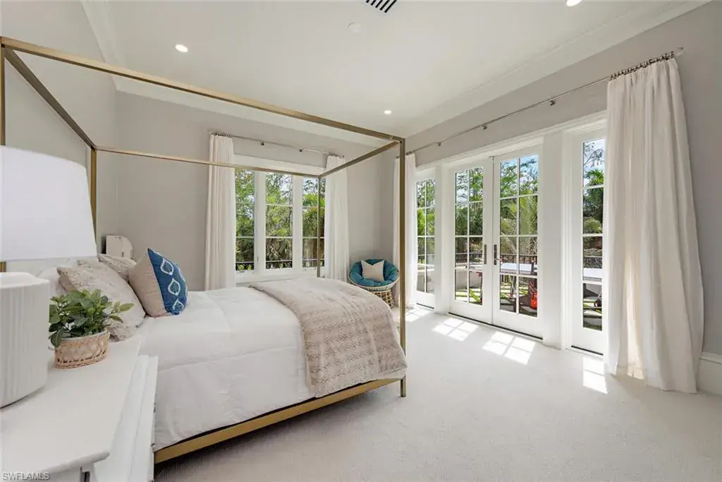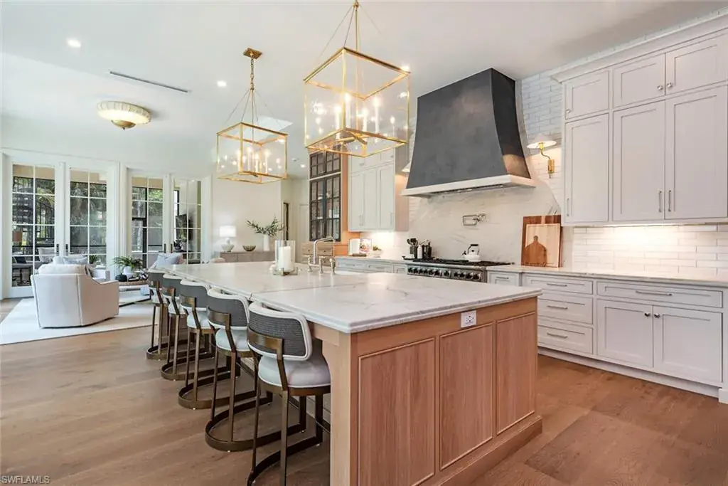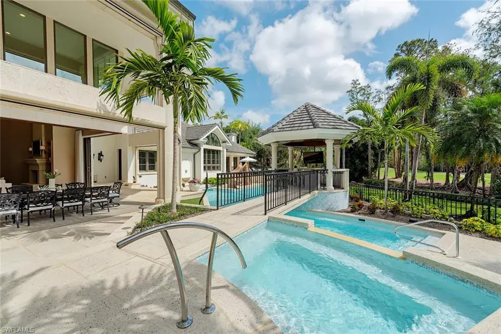 Magnificent completely renovated estate home in Quail West offering the ultimate in privacy and luxury living including immediate golf access with a transferrable golf membership included. Situated on a rare double lot that spans 2.2 acres, this residence offers golf course views and an incredible volume of living space with 11,160 SF including 6 bedrooms, 7.5 baths, office, study, exercise room, media room, bonus living room and 5 garage spaces plus a golf cart garage. Upon entering the home, the main living room is sure to impress with soaring 24’ ceilings, a curved stone staircase, a gas fireplace and zero-corner sliders that lead to the extraordinary outdoor area. Enjoy Naples’ glorious weather with 1,062 SF of covered outdoor living, a full bar with folding windows, a resort style pool with a waterslide, large spa and a gazebo centerpiece with an outdoor kitchen. Completely remastered in 2024, this home showcases the finest in custom craftsmanship and the latest technology, including wide plank oak flooring with decorative brass inlay, handcrafted custom rift-sawn white oak cabinetry, Andersen A-Series impact windows/doors, extensive moldings, exquisite light fixtures and a Control-4 smart home system. The spectacular chef’s kitchen is centered around a large island with honed Mont Blanc quartzite countertops and beautifully combines rift-sawn oak, white and black custom cabinetry accented with brass fixtures and includes a Viking gas range with dual ovens, a Sub-Zero refrigerator, custom coffee bar and a full butler’s pantry. Retreat to the sprawling primary suite with a spacious bedroom boasting a lofted 17’ ceiling, a secluded living area with a wet bar, an exercise room with a sauna and a brilliant custom closet. The elegant his-and-hers primary bathroom is adorned with natural stone and fine cabinetry, includes a steam room, a luxurious glass enclosed wet area with a vessel soaking tub and a double shower plus access to a private courtyard with a water feature, an outdoor shower and a cold plunge spa. The spectacular main office has dual oak and glass entry doors, built-in cabinetry and a custom ceiling that reaches over 27’. Also on the main level; a media room, 2 spacious guest suites, a formal dining room and a family room. The 2nd level of the home is constructed with solid concrete, accessible via stairs or elevator, offers high 11’ ceilings and features a second office plus 3 spacious bedrooms including a bunk room and large bonus living room with ceilings over 16’, a kitchenette and access to a large terrace. Quail West offers a captivating lifestyle in an exquisite community with 36-holes of pristine Arthur Hills-designed golf, a 100k SF clubhouse that’s the hub of social activities with multiple dining options, an indoor lagoon-style Junior Olympic-sized pool and a full-service spa. The sports center offers 8 clay hydro tennis, 4 pickleball, 4 bocce courts and a 2-story fitness/wellness building.