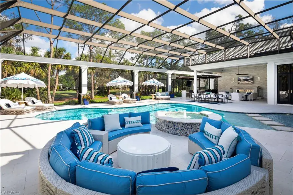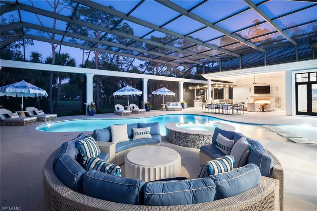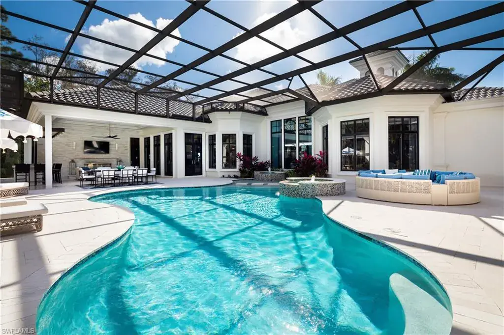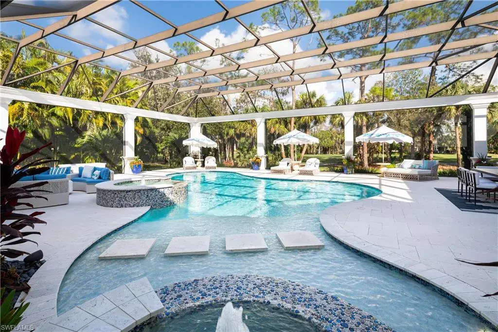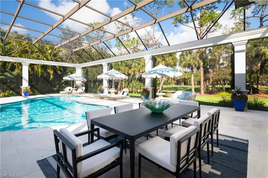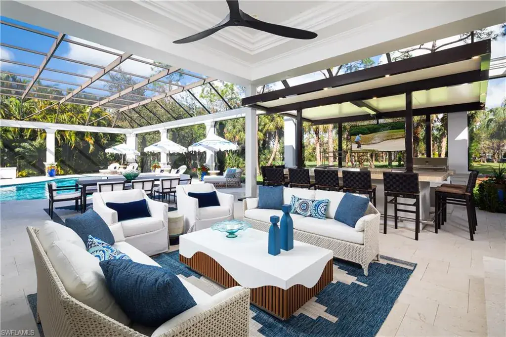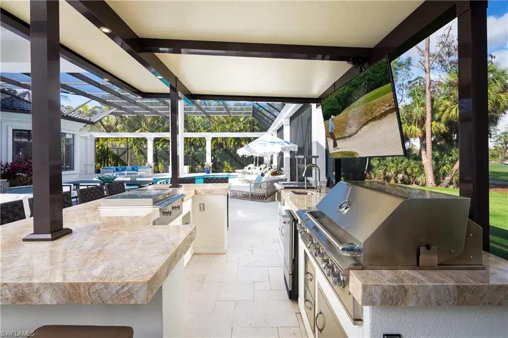 IMMEDIATE GOLF MEMBERSHIP AVAILABLE WITH THIS SALE (SKIP THE WAITLIST)! BUYER SAVES $225K ON GOLF INITIATION FEE BY TRANSFERRING SELLER’S GOLF MEMBERSHIP! Fully renovated, state-of-the-art estate situated in the highly sought-after Quail West community in Naples. This masterpiece sits on a nearly 1-acre lot with beautiful golf course views, a park-like setting & one of SWFL’s finest outdoor entertainment areas with resort-style pool/spa, water features, state-of-the-art outdoor kitchen/bar & super screen picture window enclosure. Designed for ultimate enjoyment, the outdoor kitchen and bar offer seating for nine, featuring exquisite Taj Mahal granite, a grill, cooktop, burners, dishwasher, fridge, and a cocktail station. Inside, no detail has been overlooked, with European oak hardwood floors, & brand newly redesigned high-end furnishings & decor, custom designer wall coverings throughout, impressive distinctive light fixtures & luxurious custom draperies. Boasting 4,972 sq ft of living space, this home offers 4 spacious bedrooms, a spacious bar room with a 650 bottle wine wall (could also be converted back to a den), stunning formal dining room, a large laundry room with plenty of storage, and two 2.5-car garages with a motorized gate. Immaculately maintained, the property features hurricane impact windows, new hot water heaters, 3 new HVAC units (2022), 2 generators, a water filtration system, smart home automation with Lutron lighting, and a Sonos sound system. The chef’s kitchen is a true culinary masterpiece, with pristine white cabinetry, high-end granite countertops, an oversized island, expansive walk-in pantry, and top-tier appliances, including a Thermador double oven, dual Viking dishwashers, Sub-Zero refrigerator drawers, Dacor microwave, and a Wolf gas cooktop with a hood. The primary suite serves as the perfect retreat, offering stunning views of the pool area and golf course. Its spa-like bathroom features dual vanities, a makeup vanity, a standalone soaking tub, and a luxurious frameless glass shower with a bench. Quail West is known for its world-class amenities, including two championship golf courses, a newly renovated 100,000 sq ft clubhouse, a Racquet Sports complex, an indoor lagoon-style Junior Olympic pool, a variety of dining options, a state-of-the-art fitness center, and a full-service salon and spa with a sauna. Just minutes from Barefoot Beach, Mercato, Waterside Shops, and Naples’ iconic 5th Avenue, this prestigious community offers easy access to RSW and Naples airports.
