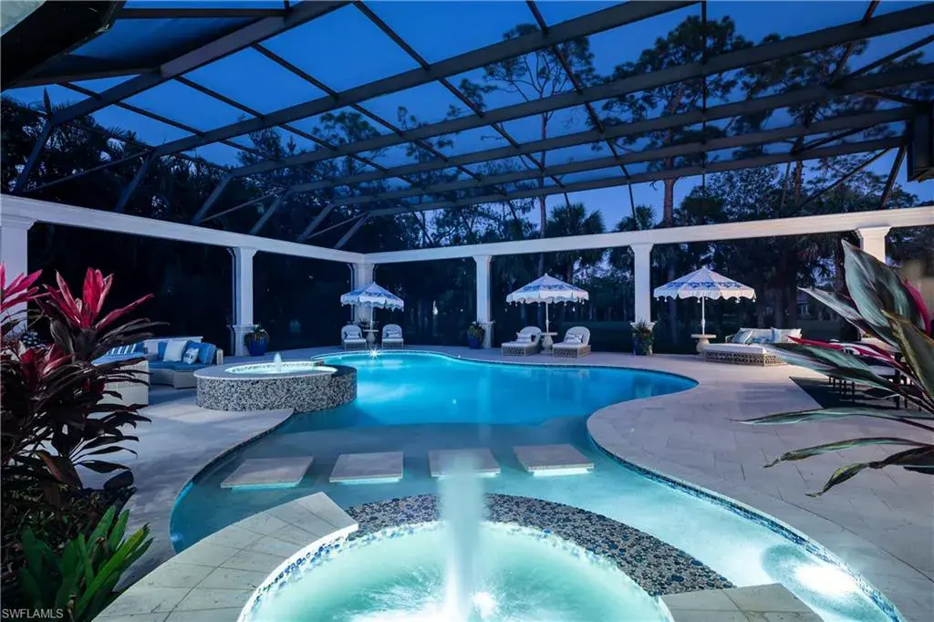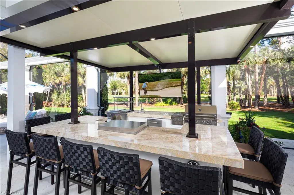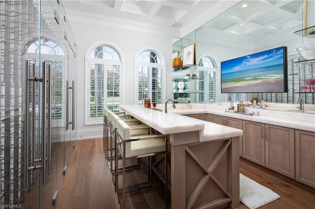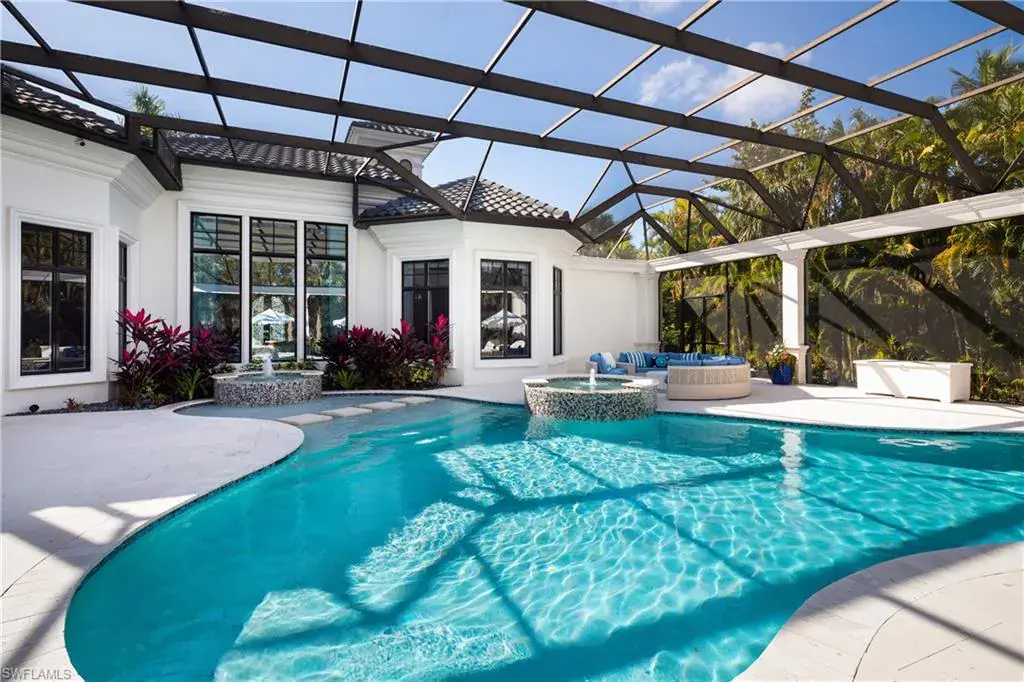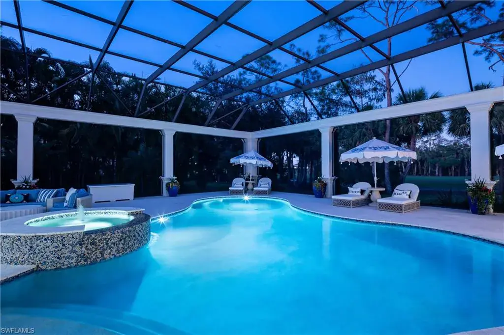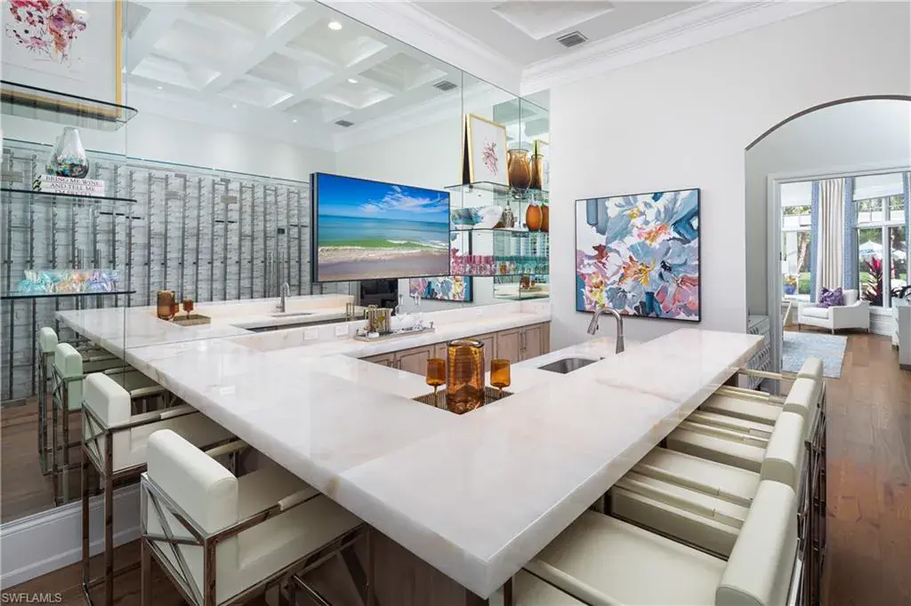 IMMEDIATE GOLF MEMBERSHIP AVAILABLE WITH THIS SALE (SKIP THE WAITLIST)! BUYER SAVES $225K ON GOLF INITIATION FEE BY TRANSFERRING SELLER’S GOLF MEMBERSHIP! Fully renovated, state-of-the-art estate situated in the highly sought-after Quail West community in Naples. This masterpiece sits on a nearly 1-acre lot with beautiful golf course views, a park-like setting & one of SWFL’s finest outdoor entertainment areas with resort-style pool/spa, water features, state-of-the-art outdoor kitchen/bar & super screen picture window enclosure. Designed for ultimate enjoyment, the outdoor kitchen and bar offer seating for nine, featuring exquisite Taj Mahal granite, a grill, cooktop, burners, dishwasher, fridge, and a cocktail station. Inside, no detail has been overlooked, with European oak hardwood floors, & brand newly redesigned high-end furnishings & decor, custom designer wall coverings throughout, impressive distinctive light fixtures & luxurious custom draperies. Boasting 4,972 sq ft of living space, this home offers 4 spacious bedrooms, a spacious bar room with a 650 bottle wine wall (could also be converted back to a den), stunning formal dining room, a large laundry room with plenty of storage, and two 2.5-car garages with a motorized gate. Immaculately maintained, the property features hurricane impact windows, new hot water heaters, 3 new HVAC units (2022), 2 generators, a water filtration system, smart home automation with Lutron lighting, and a Sonos sound system. The chef’s kitchen is a true culinary masterpiece, with pristine white cabinetry, high-end granite countertops, an oversized island, expansive walk-in pantry, and top-tier appliances, including a Thermador double oven, dual Viking dishwashers, Sub-Zero refrigerator drawers, Dacor microwave, and a Wolf gas cooktop with a hood. The primary suite serves as the perfect retreat, offering stunning views of the pool area and golf course. Its spa-like bathroom features dual vanities, a makeup vanity, a standalone soaking tub, and a luxurious frameless glass shower with a bench. Quail West is known for its world-class amenities, including two championship golf courses, a newly renovated 100,000 sq ft clubhouse, a Racquet Sports complex, an indoor lagoon-style Junior Olympic pool, a variety of dining options, a state-of-the-art fitness center, and a full-service salon and spa with a sauna. Just minutes from Barefoot Beach, Mercato, Waterside Shops, and Naples’ iconic 5th Avenue, this prestigious community offers easy access to RSW and Naples airports.