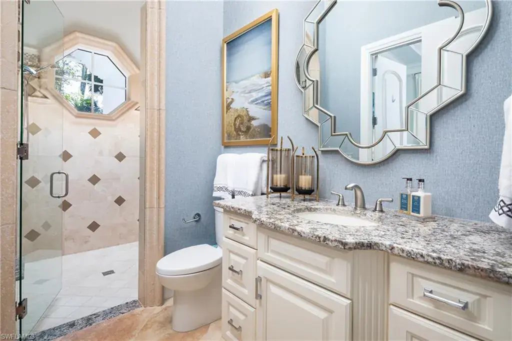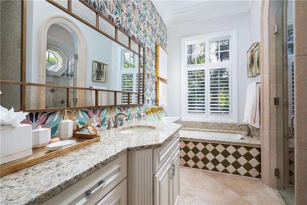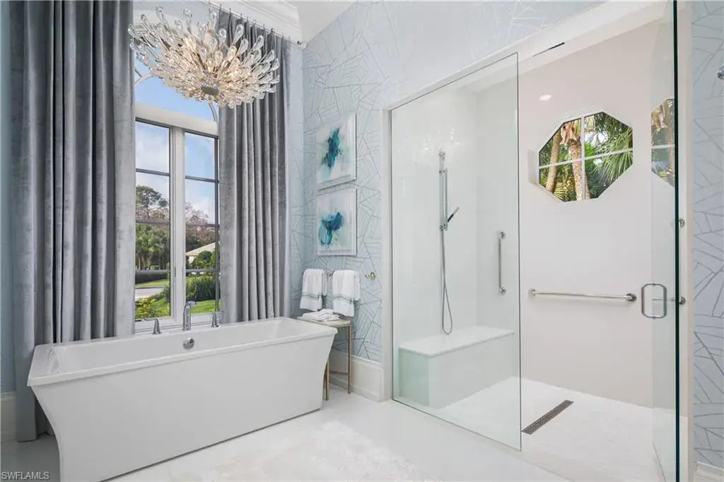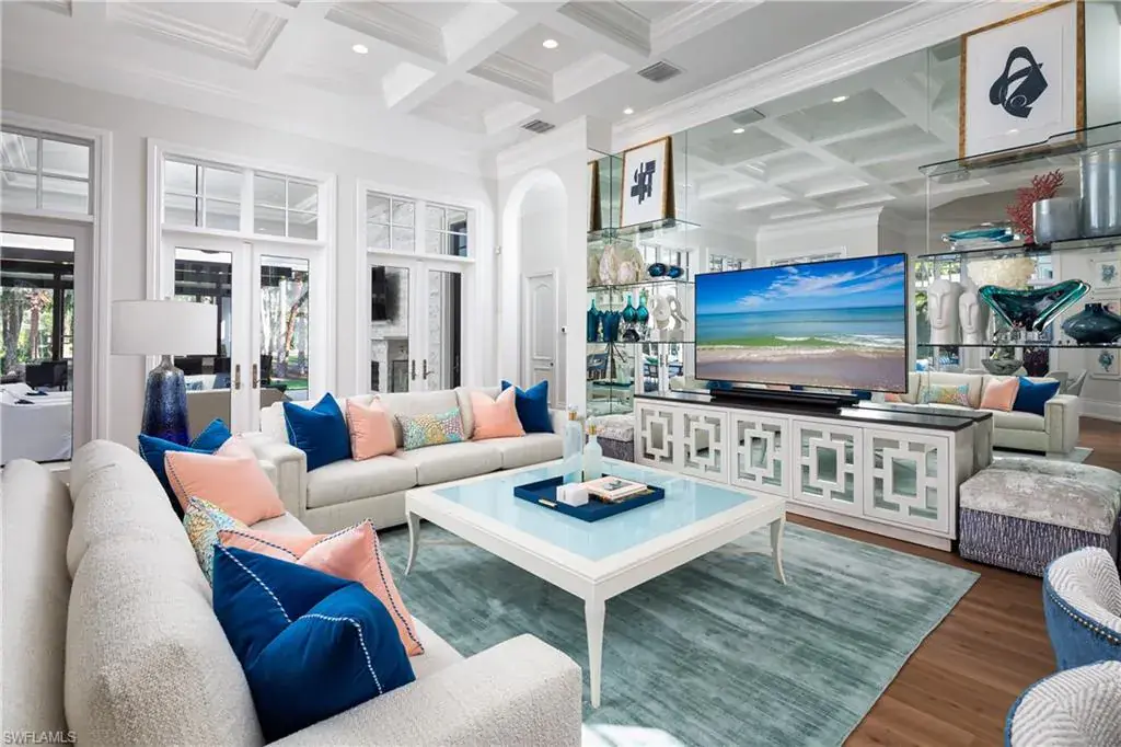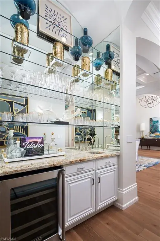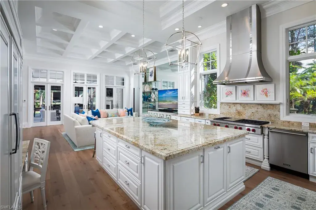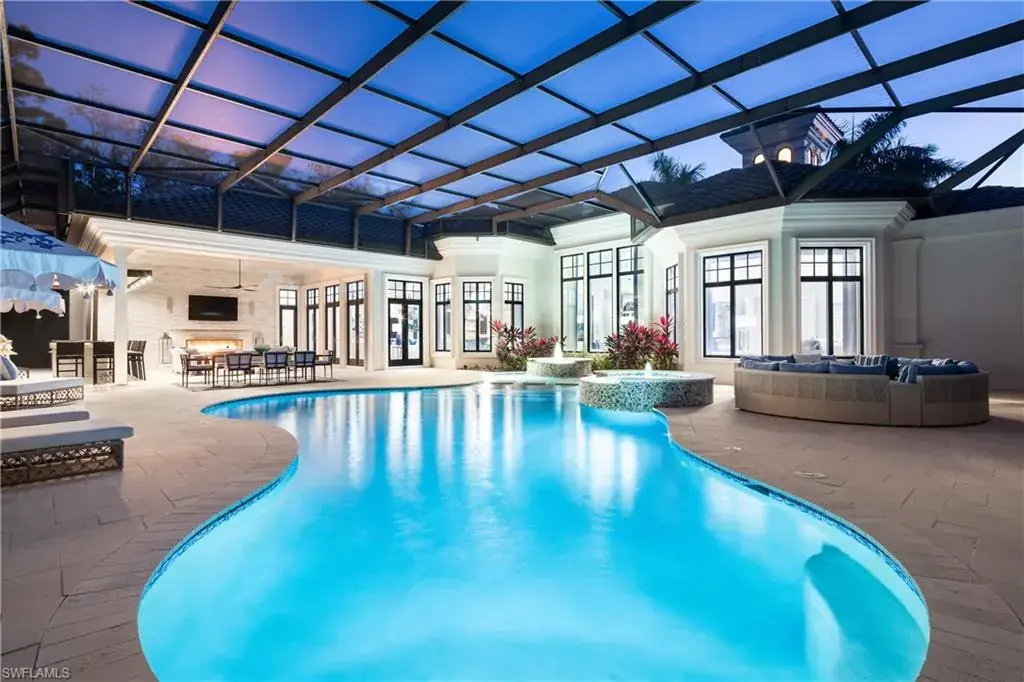 IMMEDIATE GOLF MEMBERSHIP AVAILABLE WITH THIS SALE (SKIP THE WAITLIST)! BUYER SAVES $225K ON GOLF INITIATION FEE BY TRANSFERRING SELLER’S GOLF MEMBERSHIP! Fully renovated, state-of-the-art estate situated in the highly sought-after Quail West community in Naples. This masterpiece sits on a nearly 1-acre lot with beautiful golf course views, a park-like setting & one of SWFL’s finest outdoor entertainment areas with resort-style pool/spa, water features, state-of-the-art outdoor kitchen/bar & super screen picture window enclosure. Designed for ultimate enjoyment, the outdoor kitchen and bar offer seating for nine, featuring exquisite Taj Mahal granite, a grill, cooktop, burners, dishwasher, fridge, and a cocktail station. Inside, no detail has been overlooked, with European oak hardwood floors, & brand newly redesigned high-end furnishings & decor, custom designer wall coverings throughout, impressive distinctive light fixtures & luxurious custom draperies. Boasting 4,972 sq ft of living space, this home offers 4 spacious bedrooms, a spacious bar room with a 650 bottle wine wall (could also be converted back to a den), stunning formal dining room, a large laundry room with plenty of storage, and two 2.5-car garages with a motorized gate. Immaculately maintained, the property features hurricane impact windows, new hot water heaters, 3 new HVAC units (2022), 2 generators, a water filtration system, smart home automation with Lutron lighting, and a Sonos sound system. The chef’s kitchen is a true culinary masterpiece, with pristine white cabinetry, high-end granite countertops, an oversized island, expansive walk-in pantry, and top-tier appliances, including a Thermador double oven, dual Viking dishwashers, Sub-Zero refrigerator drawers, Dacor microwave, and a Wolf gas cooktop with a hood. The primary suite serves as the perfect retreat, offering stunning views of the pool area and golf course. Its spa-like bathroom features dual vanities, a makeup vanity, a standalone soaking tub, and a luxurious frameless glass shower with a bench. Quail West is known for its world-class amenities, including two championship golf courses, a newly renovated 100,000 sq ft clubhouse, a Racquet Sports complex, an indoor lagoon-style Junior Olympic pool, a variety of dining options, a state-of-the-art fitness center, and a full-service salon and spa with a sauna. Just minutes from Barefoot Beach, Mercato, Waterside Shops, and Naples’ iconic 5th Avenue, this prestigious community offers easy access to RSW and Naples airports.