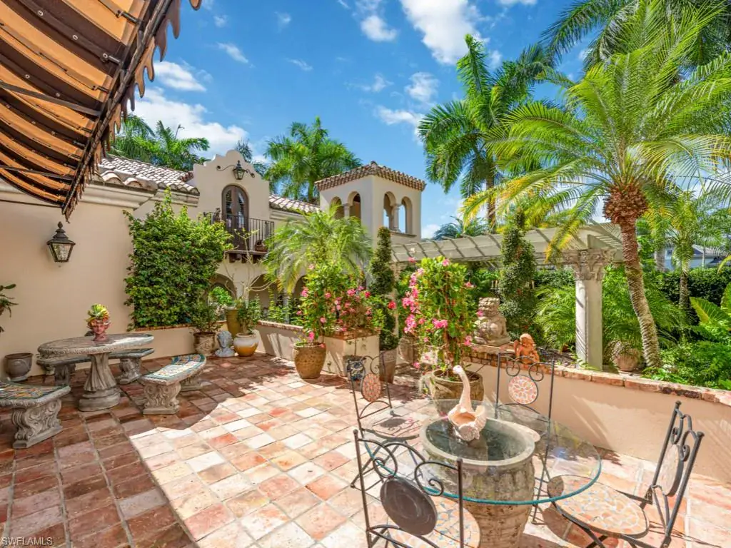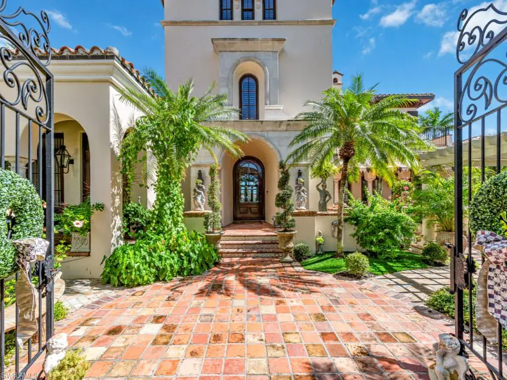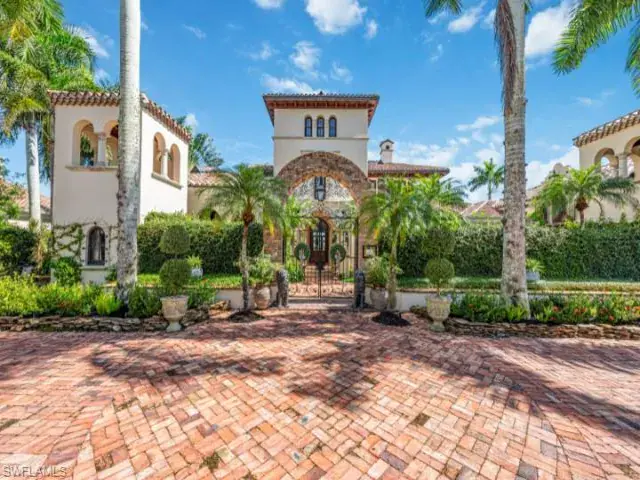 Welcome to Villa Groveland. This exquisite property embodies the timeless elegance and charm of traditional Italian architecture, offering a serene retreat in the beautiful setting of Quail West Golf and Country Club. Once inside, you experience a curated collection of art, history, and beauty that reflects the rich heritage of Italian culture. An Italian villa is not just a home; its a timeless sanctuary that invites you to back to Italy with every moment spent within it’s walls. This home offers over 19,000 square feet of living space on a 180-by-177-foot lot. The property features six bedrooms, eight baths, a private guest house, office, game room, massage room and a four-car garage with golf cart storage. Once inside the villa you are immediately drawn to the dramatic two-story dining room featuring two fireplaces, large dining table for entertainment, with massive wooden beams and Juliet balconies. The restored wood came from a cannonball factory and was hand-planked to create 7,000 square feet of wood floors and massive wooden beams across the ceilings. Every room in the house has French doors, over 30 sets, which open to a veranda, loggia or balconies. The chef’s inspired kitchen is the heart of the home, featuring a large island and top-of-the-line appliances. The family room and breakfast dining area open to the kitchen and just outside you will find a wishing well that cascades into a koi pond. The primary wing of the house includes a private massage room, luxurious primary suite, and outdoor spa and shower. The bocce ball court, swimming pool and numerous vignettes offer endless entertainment opportunities. The primary bedroom is located on the first floor. Quail West offers 36-holes of pristine Arthur Hills-designed championship golf (Preserve and Lakes), a clubhouse with multiple dining options, and a full-service spa. The sports center area offers 8 clay hydro tennis courts, 4 pickleball courts, 4 bocce courts and a 2-story fitness & wellness building. Located on the 15th hole of the Preserve Course.