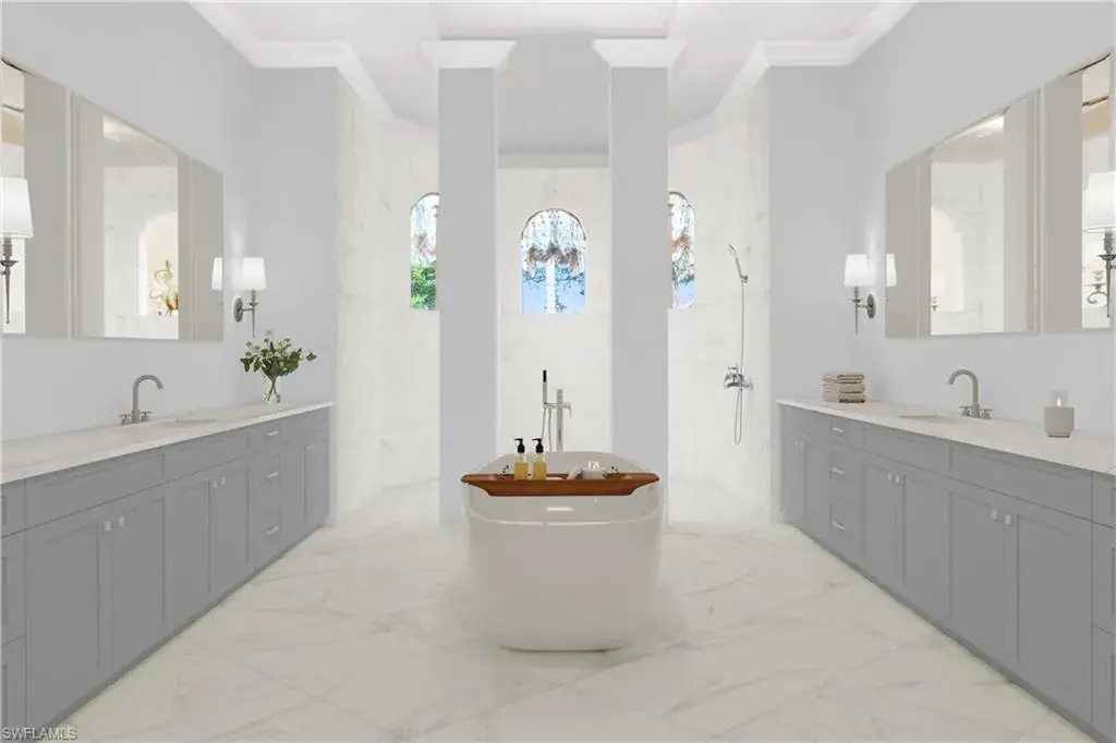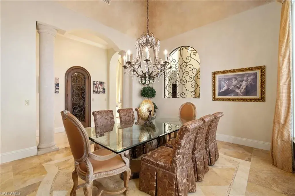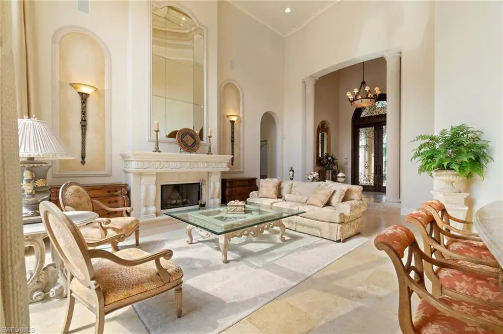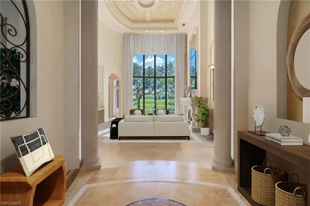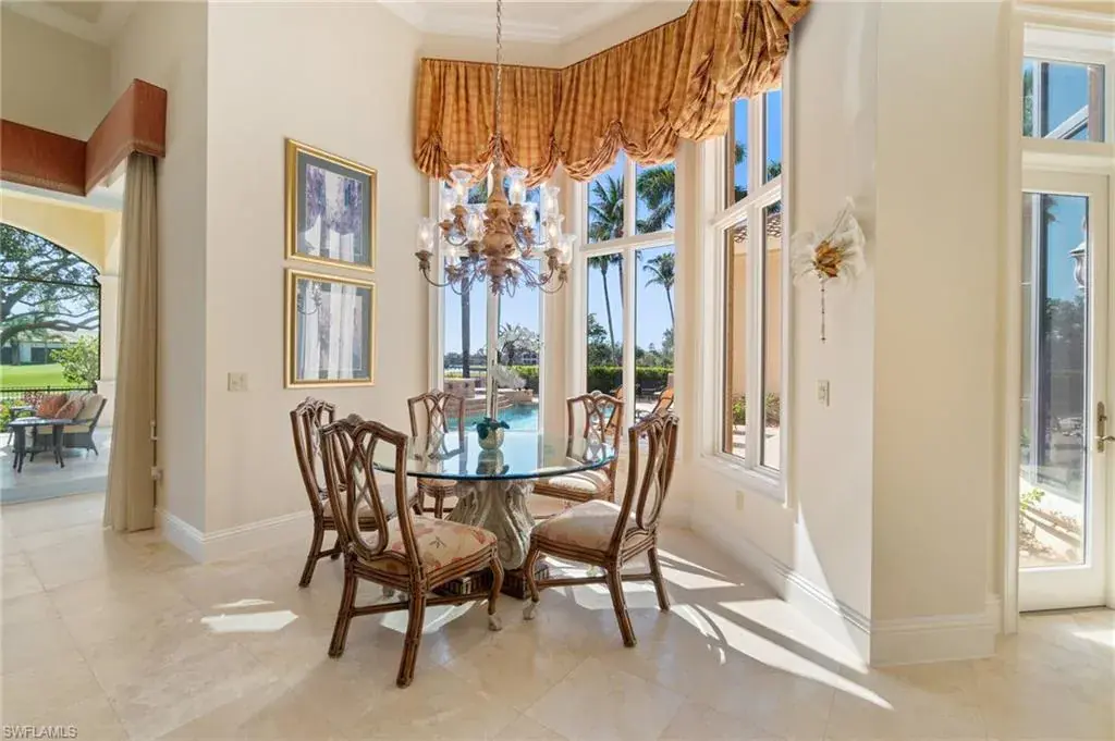 OPTIONAL TRANSFERRABLE GOLF MEMBERSHIP AVAILABLE FOR IMMEDIATE GOLF. Welcome to this stunning home located in the prestigious community of Quail West in Naples, Florida. Quail West is one of the premier golf course communities in Southwest Florida, with 2 golf courses, 8 tennis courts and 4 pickle ball courts, plus much more. As you step onto the property, you are greeted by lush landscaping that enhances the home’s curb appeal. This luxurious 4BR+Den home offers FANTASTIC REAR VIEWS OF THE GOLF COURSE AND LAKE and is the epitome easy living in Florida. Located on the 10th hole of the Lakes course, this southern exposure setting makes for breath taking sunset views over the 42′ pool with spa. Upon entering the home through the 12′ high wood doors you are greeted with an elegant and spacious interior, with high ceilings and large windows that flood the home with natural light, creating a bright and welcoming ambiance, not to mention the amazing views. Everything is top-of-the-line with custom cabinetry and finishings. The master suite is a true sanctuary with a morning coffee bar, luxurious en-suite bathroom with 2 separate commode areas, bidet, double shower, jetted tub and generous closet space. Additional en-suite bedrooms are spacious and thoughtfully designed, accommodating family and guests comfortably. The gourmet kitchen is a chef’s dream, complete with modern appliances, 2 dishwashers, 2 sinks, warming draw, built-in miele coffee maker, ppt-filler, butlers pantry, ample counter space and a breakfast bar which is perfect for entertaining guests and culinary enthusiasts. The wine room is centrally located off the dining room, kitchen and living room with wet bar. Library is tastefully done with Brazilian cherry flooring, wood built-ins and custom ceiling. The living area opens to an expansive patio that is ideal for alfresco dining, lounging, or simply soaking in the beautiful Florida sunsets. Outdoor kitchen/lanai has built-in gas grill, bar refrigerator and sink with screened in area. 3-car attached over-sized garage plus a detached golf cart garage connected by a porte-cochere in the court yard. Underground propane tank for cooking and heating the pool/spa. 5900 Burnham Rd is a rare find that promises to elevate your living experience on one of the most desirable streets within Quail West with both golf and water views and located in Collier county. Close to the club house, golf and all the amenities that Quail West has to offer. This home offers easy access to Naples’ renowned beaches, shopping, dining, and cultural attractions. Whether you’re seeking an active lifestyle or a peaceful retreat, Quail West has it all. This is a home is being sold furnished with designer furniture, so don’t miss this opportunity to own a slice of paradise in Naples! Discover the endless possibilities that await you at this remarkable property.